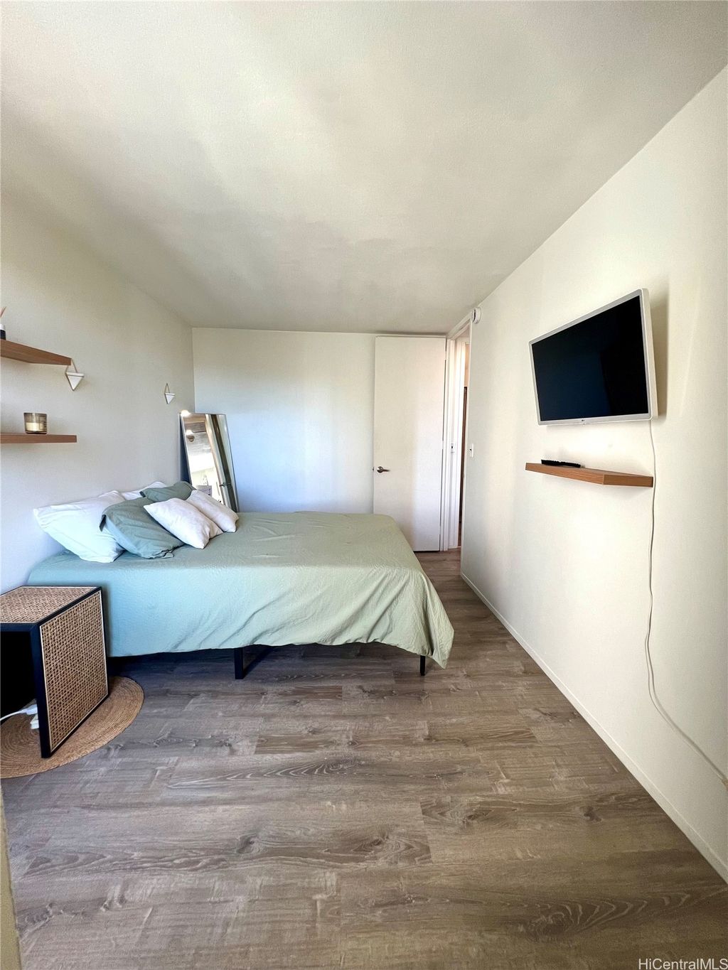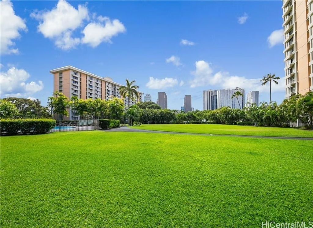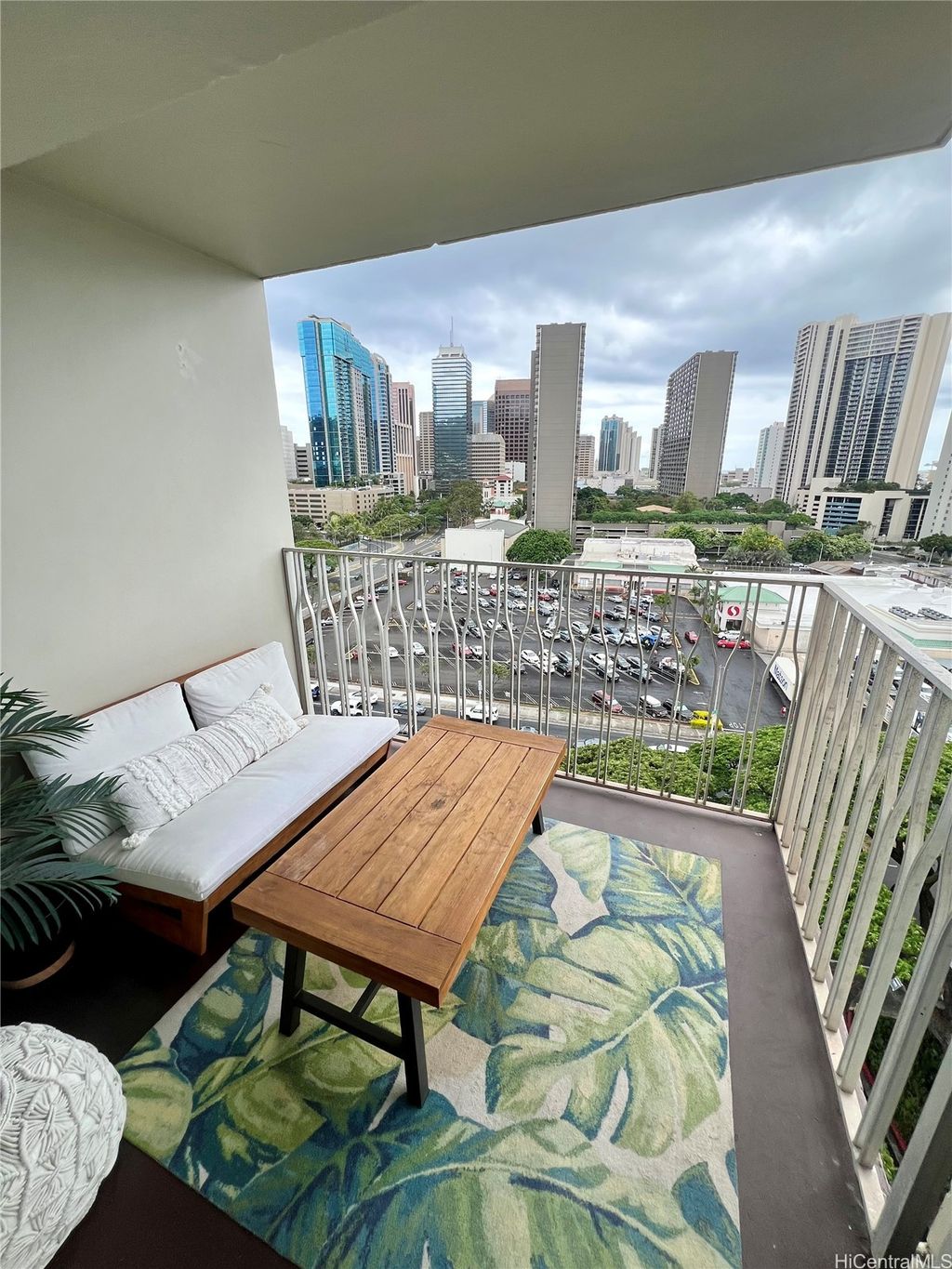 Enjoy breathtaking panoramic views of the mountains, ocean, sunset, and Aloha Tower from this spacious 674 sq. ft. corner unit on the 10th floor. Updated in 2021, the home features two bedrooms with window A/C units, a bright, breezy layout, and plenty of natural light. Experience refreshing trade winds and a comfortable, open living space perfect for relaxing or entertaining. This unit also includes 1 covered parking spot conveniently located right across the elevator, adding ease and security to your daily routine. Plenty of guest parking for your family and friends. Pet friendly for dogs under 45lbs and up to two cats. Located a short walk to Queen's Medical Center, grocery stores and a variety of shops and restaurants, this unit combines city convenience with stunning scenery. Also located directly next to all major highway access. Residents enjoy community amenities including a pool, laundry room, and secured entry, making it a perfect choice for a first home, city retreat, or investment property. Don't miss this rare opportunity to own a corner unit at Queen Emma Gardens! Seller is in no rush to sell, currently has tenants on month to month lease.