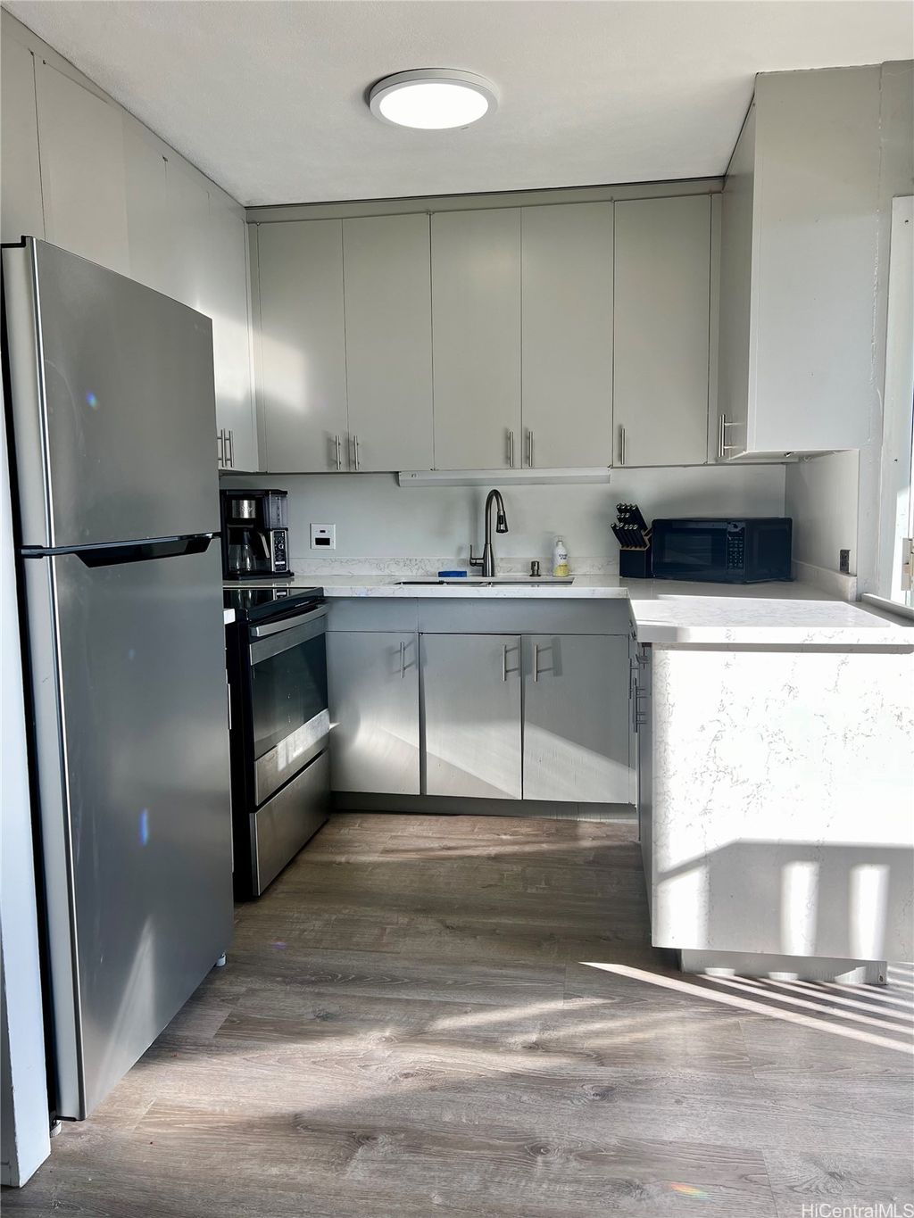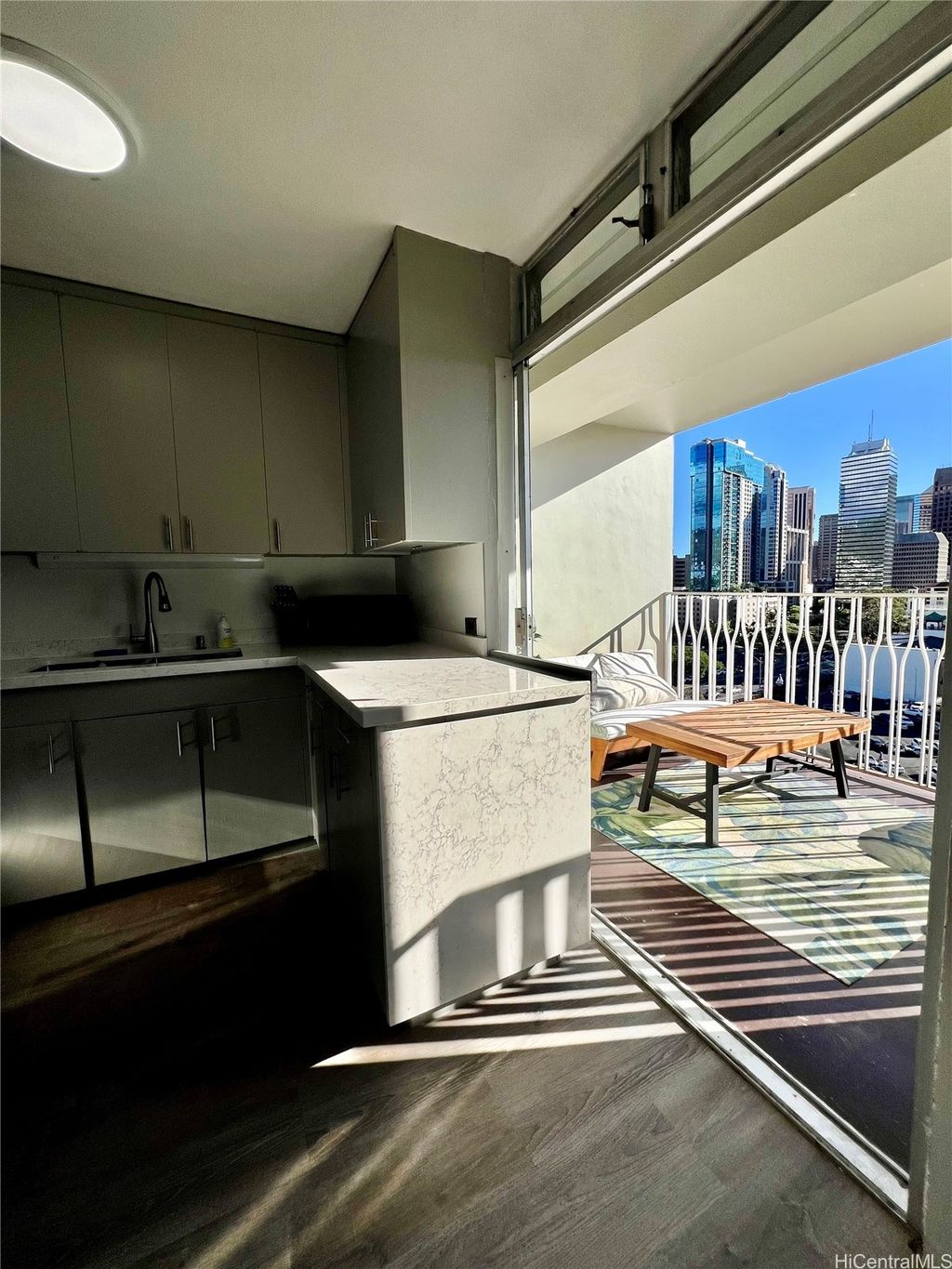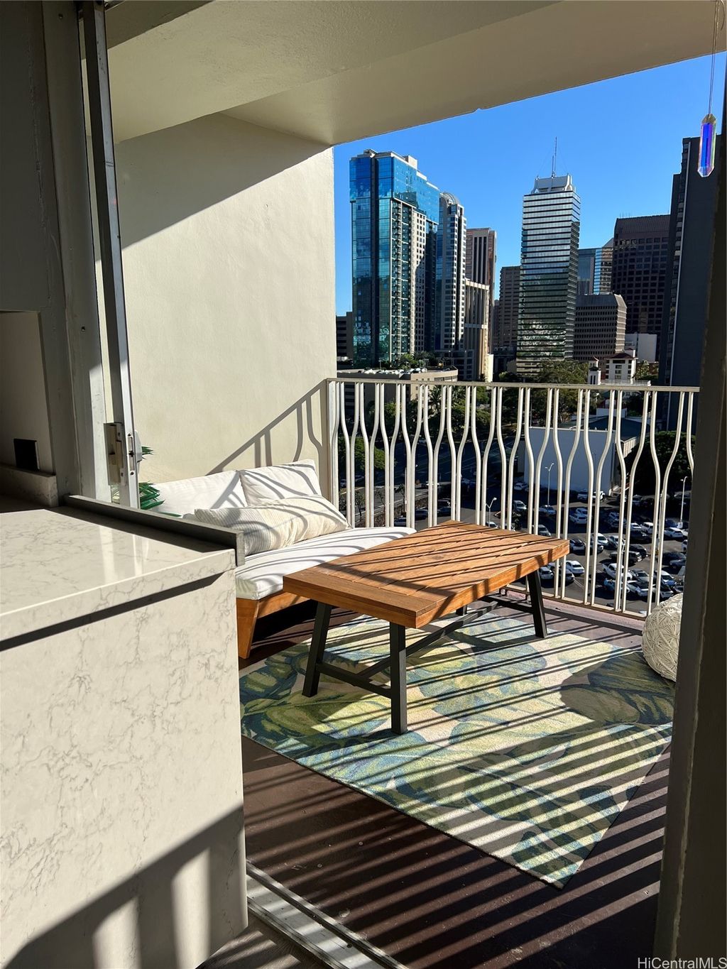 Enjoy breathtaking panoramic views of the mountains, ocean, sunset, and Aloha Tower from this spacious 674 sq. ft. corner unit on the 10th floor. Updated in 2021, the home features two bedrooms with window A/C units, a bright, breezy layout, and plenty of natural light. Experience refreshing trade winds and a comfortable, open living space perfect for relaxing or entertaining. This unit also includes 1 covered parking spot conveniently located right across the elevator, adding ease and security to your daily routine. Plenty of guest parking for your family and friends. Pet friendly for dogs under 45lbs and up to two cats. Located a short walk to Queen's Medical Center, grocery stores and a variety of shops and restaurants, this unit combines city convenience with stunning scenery. Also located directly next to all major highway access. Residents enjoy community amenities including a pool, laundry room, and secured entry, making it a perfect choice for a first home, city retreat, or investment property. Don't miss this rare opportunity to own a corner unit at Queen Emma Gardens! Seller is in no rush to sell, currently has tenants on month to month lease.