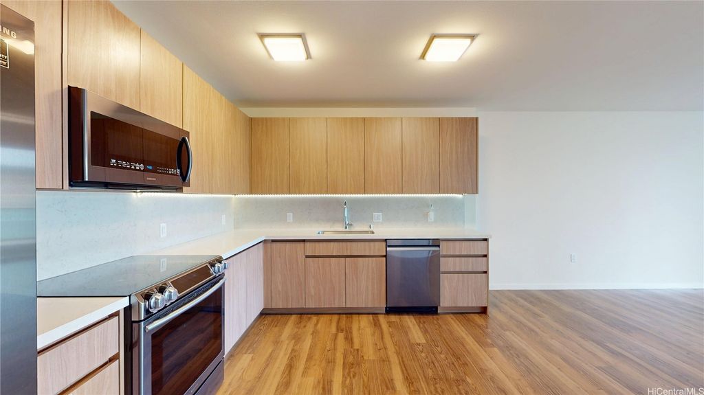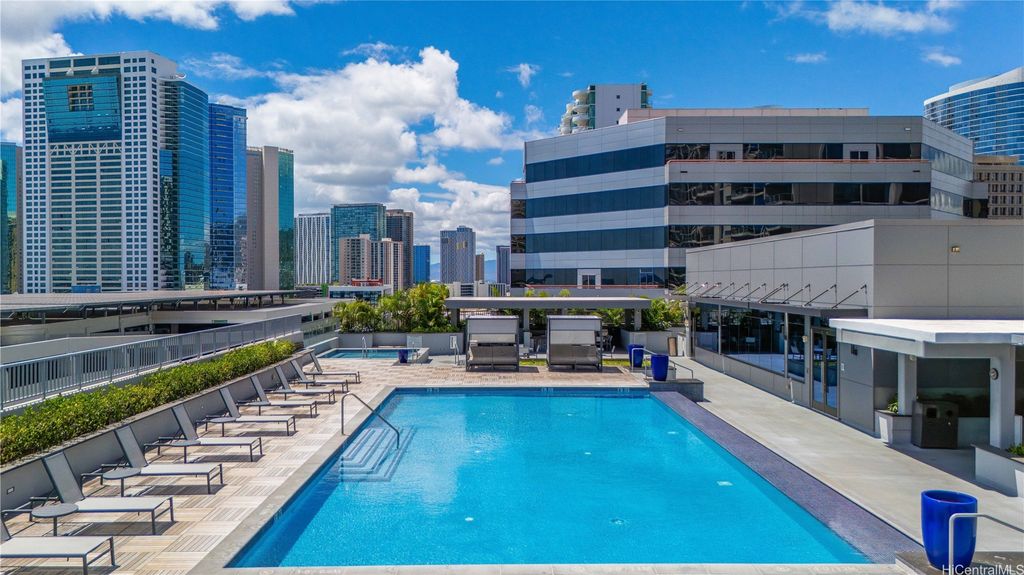 Luxury living awaits this 1 bed/1 bath unit now available at The Central Ala Moana, a modern high rise completed in 2021 in the heart of Honolulu. Enjoy natural lighting and a cool breeze in the open concept living, dining, and kitchen area, featuring a spacious bathroom, your own laundry room, mountain facing lanai, and one covered parking stall. Building amenities include an infinity edge heated pool, kids' pool, children's play area, fitness center, several BBQ cabanas with seating, and a party room with a full kitchen. The pet friendly building also offers a dog park, ample guest parking, EV charging stations, and secure bike/board storage. Conveniently located across from world famous Ala Moana Center and just a block from Ala Moana Beach Park, with easy access to Waikiki, dining, shopping, entertainment, water sports, medical offices, and more. Schedule your showing today and find out what you've been missing!