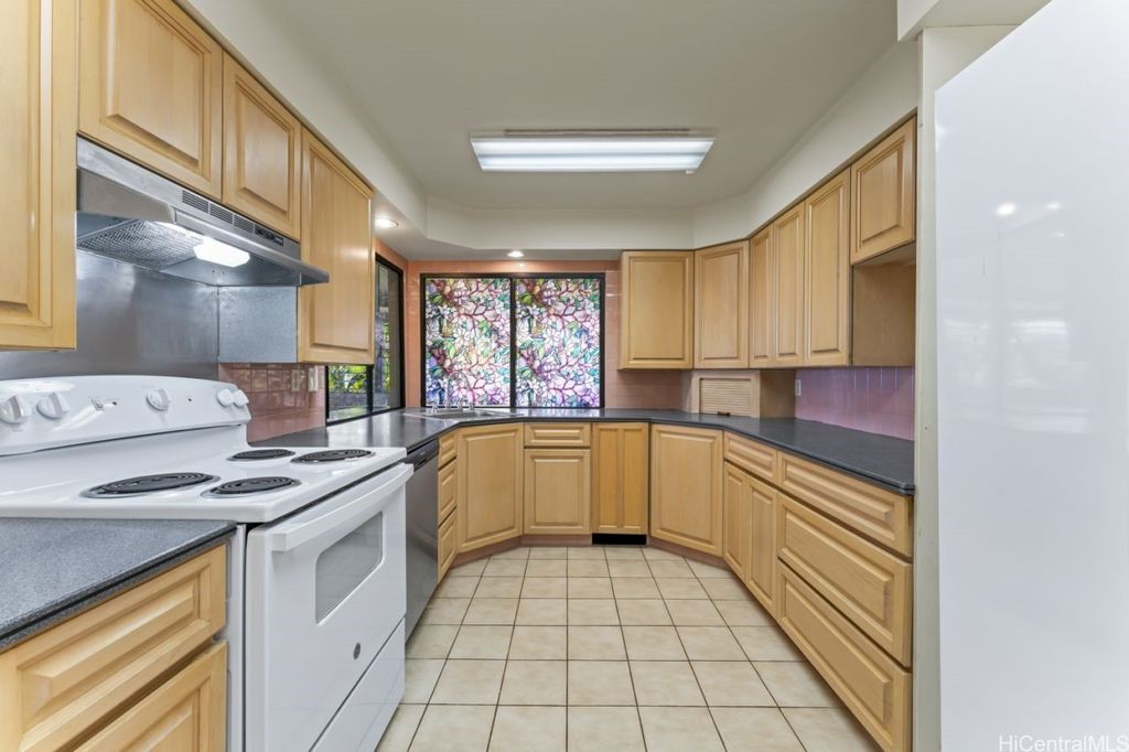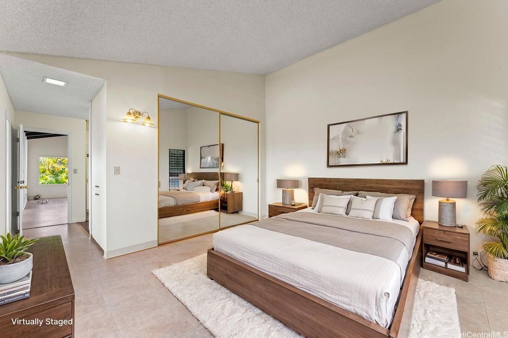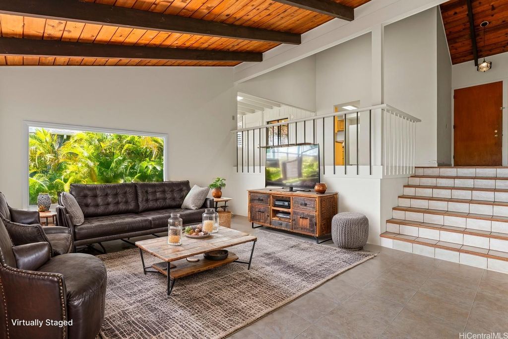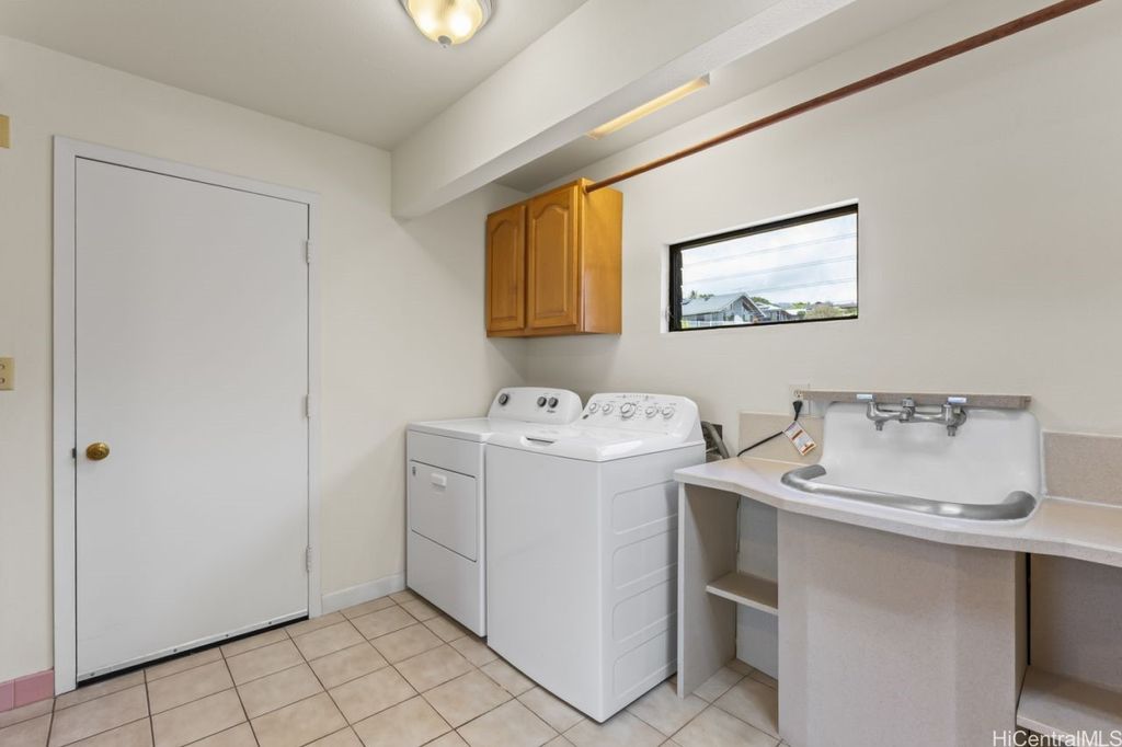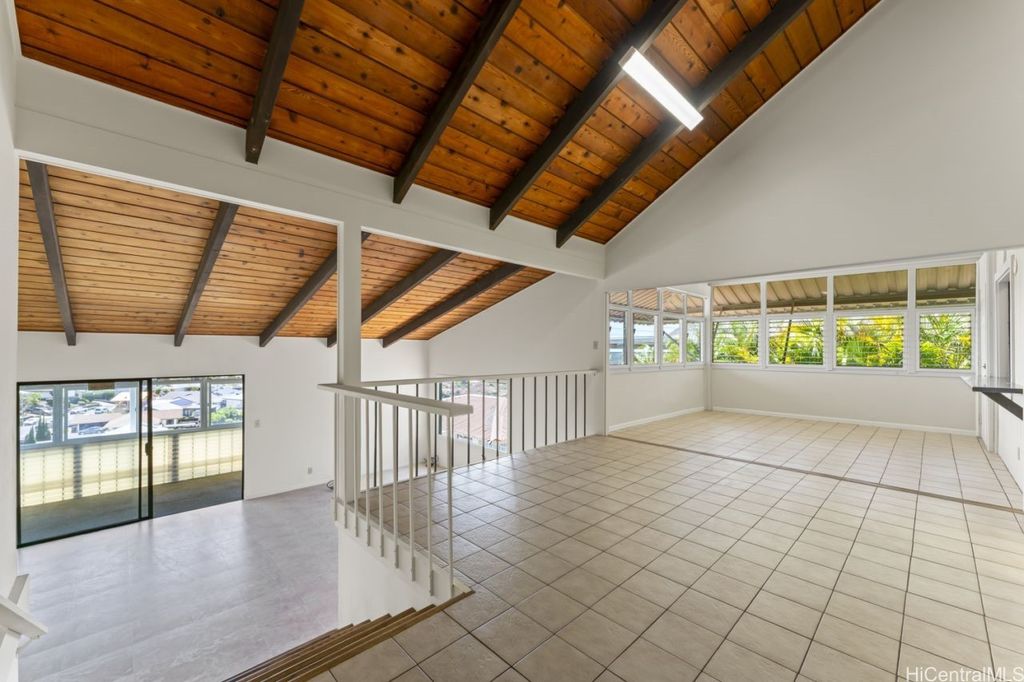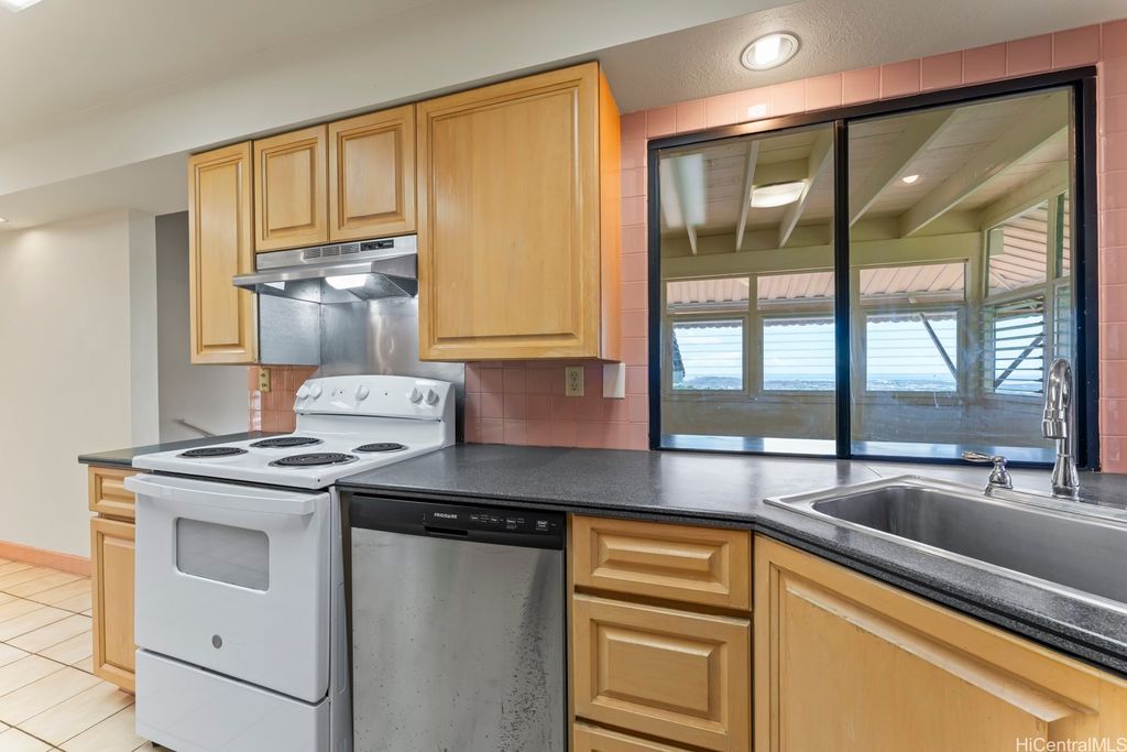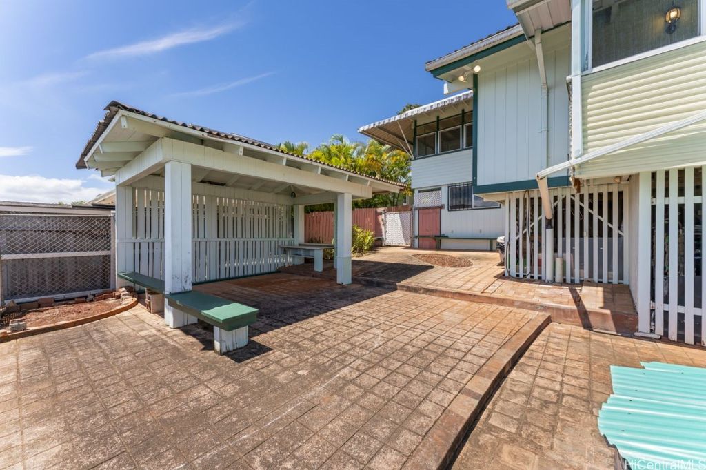 Panoramic Ocean Views with beautiful sunsets. Move in condition home in Pearl City/Aiea with 5 Bedrooms & 3 Baths upstairs with new shower heads & Double sink with new faucets. All Screens and frames replaced with new ones. Downstairs 1 bedroom,1 Bath in Law suite with a Kitchen which has a separate entrance and also can be a rental for income. New electric sub panel added 2005 for downstairs area. Roof is tile. Large, enclosed work area plus under the home large storage area. Pool and hot tub covered up because they had cracks. Newly Painted. 26 PV Panels owned-Halekale & Hawaii Energy Connection.New electric water Heater .Underground electrical.