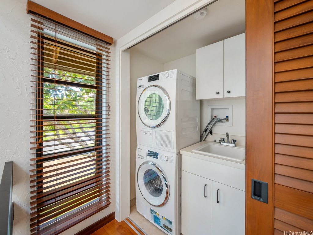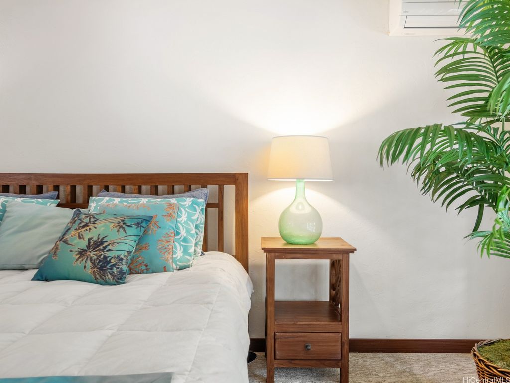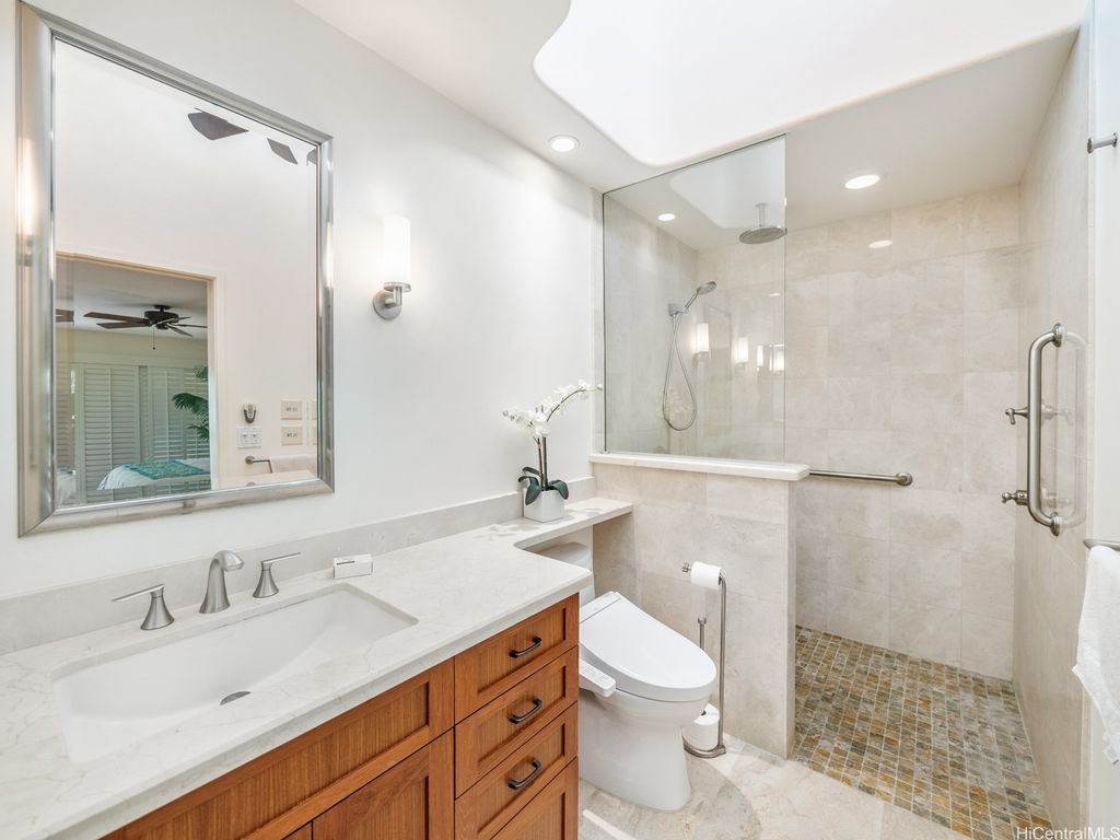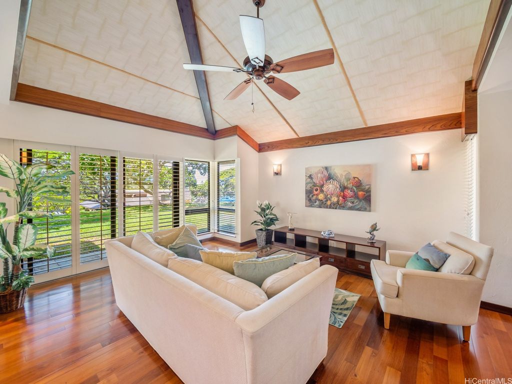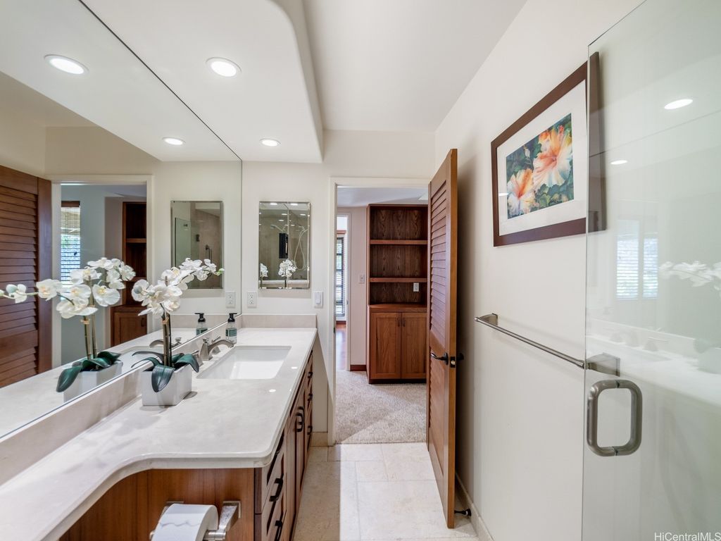 BLUESTONE - 3 bedroom, 3 bath end unit. Exceptional NEW PRICING - Exceptional quality and enduring style is evident in each detail of this huge and totally renovated 3 bedroom, 3 bath end unit designed by local interior architect Wayne Parker. High ceilings finished in bamboo, exotic teak wood floors and cabintry, travertine countertops, tumbled travertine bathroom flooring, custom recessed lighting throughout, custom curved walls finished in textured plaster, and custom kitchen and bathrooms ensure total comfort and care free lifestyle. There is no building in front of this ideally positioned end unit to obstruct the gentle breezes, gorgeous mountain views and the park-like setting under mature shower trees. Bluestone is the only private and gated townhome community in Lanikai ideally situated along the slopes of Mid Pacific Country Club between the mountains and the world famous Lanikai Beach. It is a short walk to the fabulous Lanikai beaches and mountain trails. Kailua town is a short drive with excellent shopping and dining. Honolulu and the airport are 30-40 minutes away making Bluestone one of the most desirable addresses in Hawaii.