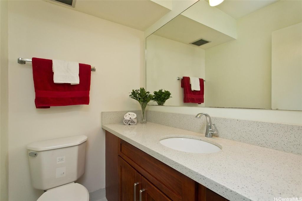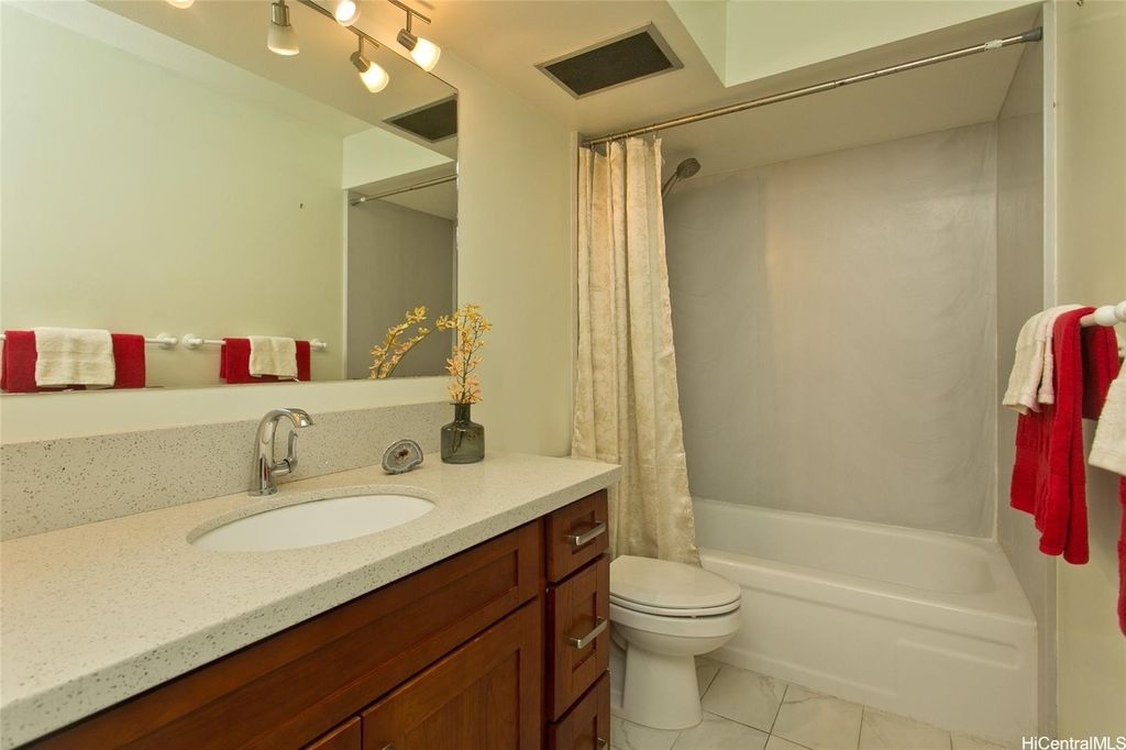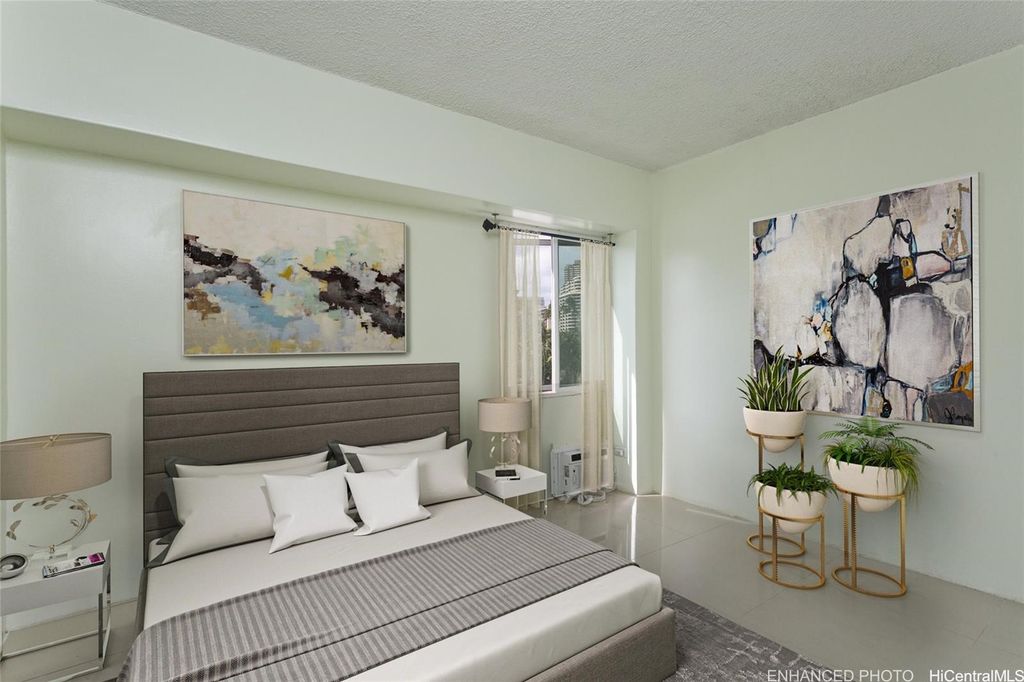 Experience island living with views that elevate your every day. This bright and breezy 2-bedroom, 1.5 bath condo sits on the preferred ocean-facing side of Keoni Ana, offering rare sightlines over Fort DeRussy and the Pacific beyond. Though labeled the 1st residential floor, the elevation is comparable to the 6th floor in most high-rises, providing privacy and scenery above street level. Inside, you'll find tile flooring, a kitchen with island cooktop and venting, and two window AC units. The spacious lanai is perfect for morning coffee or evening sunsets. Keoni Ana is secured, VA-approved, and recently upgraded with 3 new elevators, updated plumbing, modern fire alarm, and refreshed hallways, all with no special assessments. Amenities include 24-hr security, rooftop decks, BBQ, guest parking, and storage. HOA $1,309 covers internet, cable, water, sewer, and more. Currently tenant-occupied, producing $3,200/month income - ideal for investors or future occupancy. An additional parking stall is rented for tenant for an additional $120 monthly.