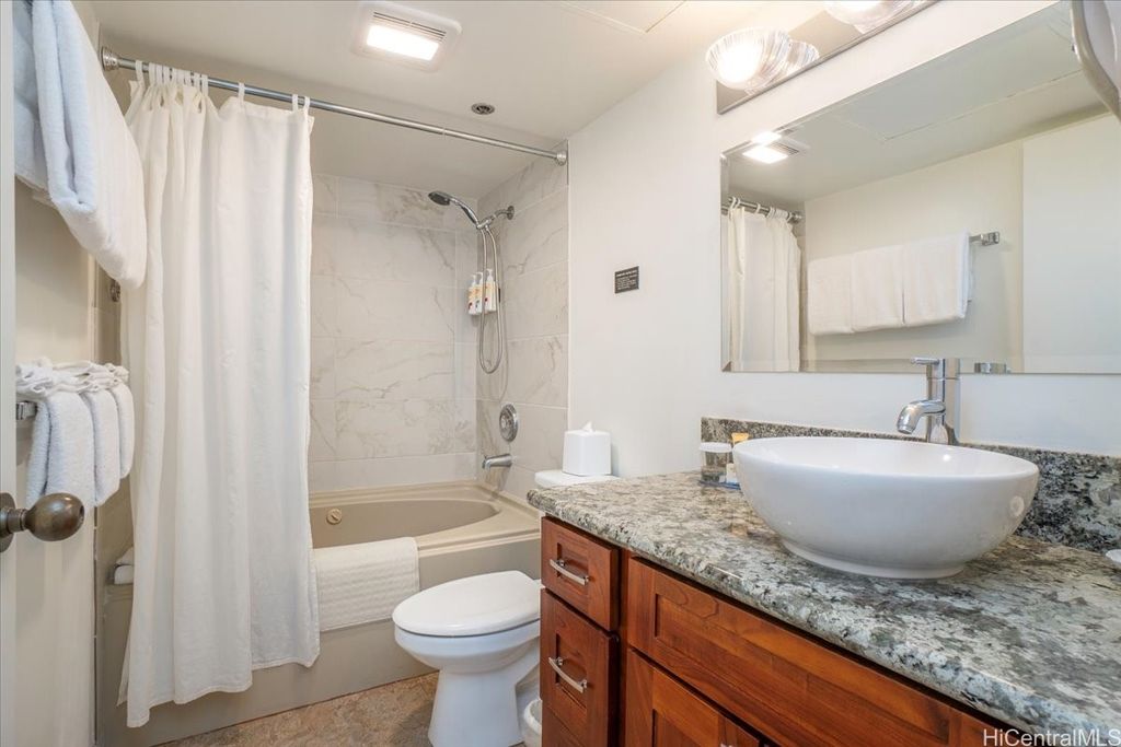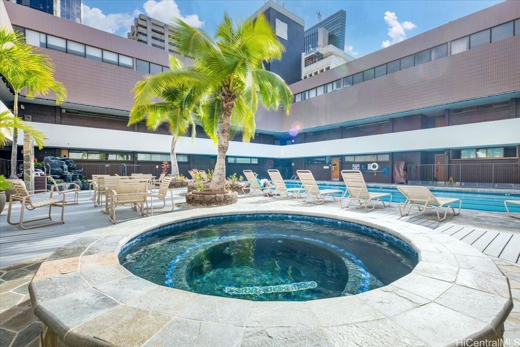 THE ONLY LEGAL SHORT-TERM DAILY RENTAL CONDO-HOTEL in the heart of the downtown Honolulu district. This tower suite largest 1-bedroom/1-bath floorplan offers a separate foyer entrance, floor-to-ceiling glass windows, upgraded full kitchen and bath, washer/dryer, central AC, and comes fully furnished including 1 assigned covered parking stall. Enjoy the high floor views of the Honolulu harbor, coastline, ocean and the brilliant colors of city lights. Great flexible mix use as rental and/or enjoy as a vacation or primary home and/or simply as a office living suite. Executive Centre is a reputable mixed use condo-hotel/office building conveniently located in short distances to offices, Hawaii Pacific University, eateries, art galleries, night market festivals, historic Chinatown, medical facilities, shopping centers, bus-lines, freeway access & many more essentials of the Honolulu's Downtown district. Maintenance fee includes cable TV, internet, (hot) water, sewer, common area expenses and capital reserves.