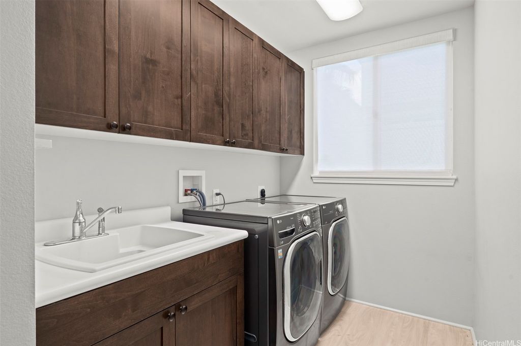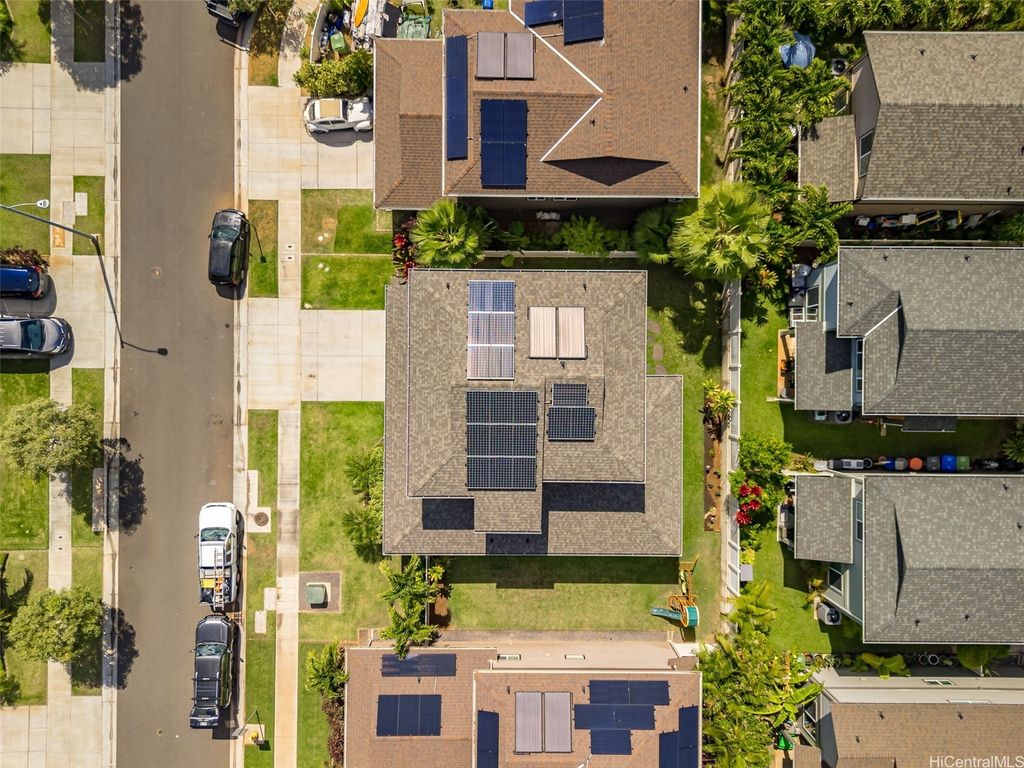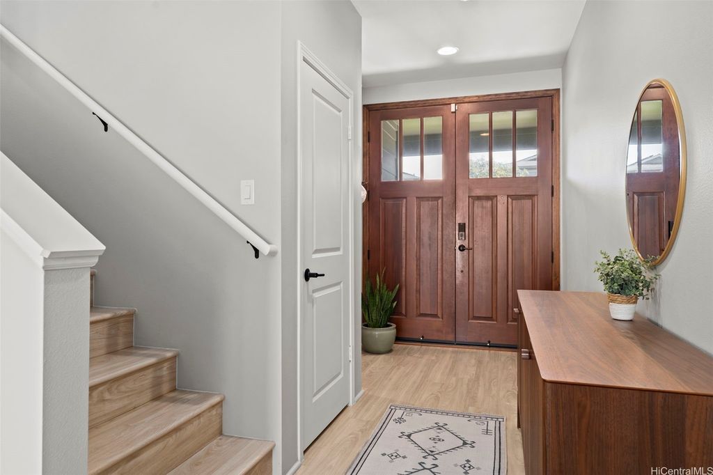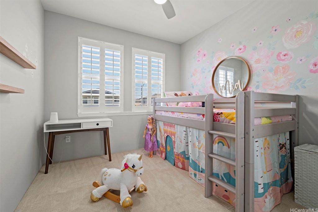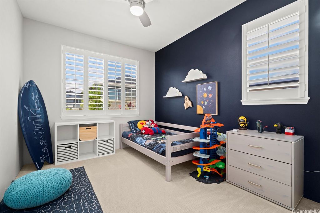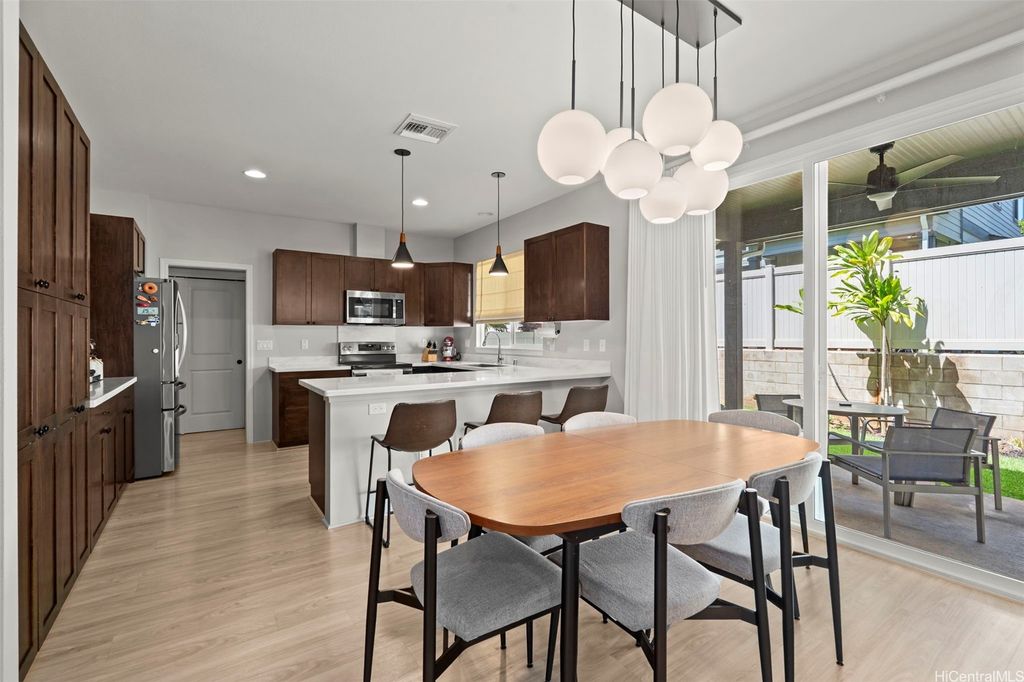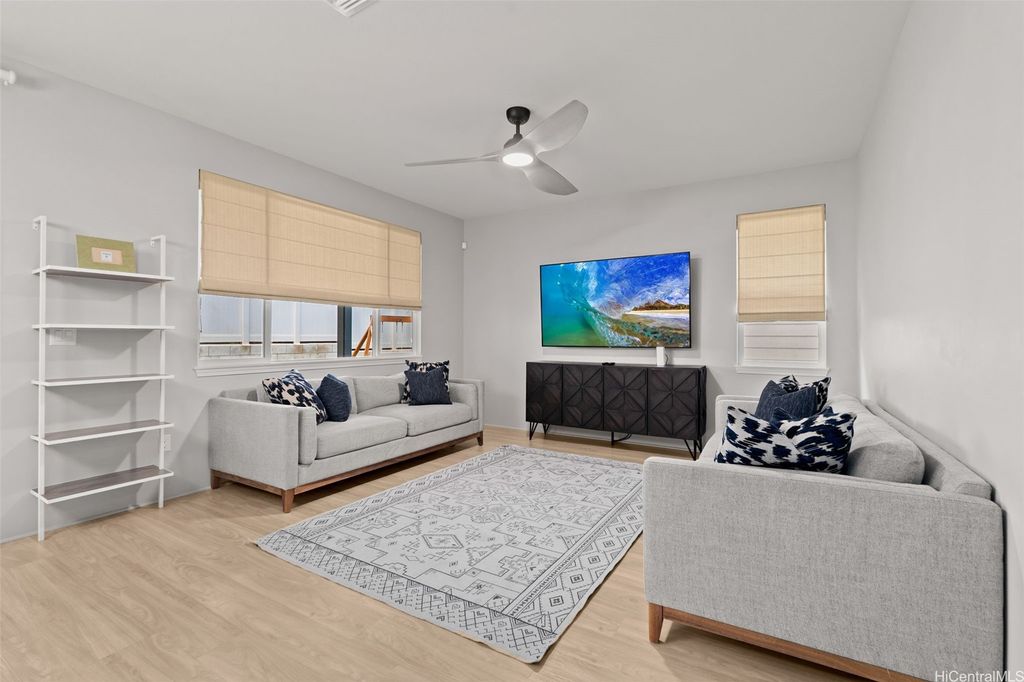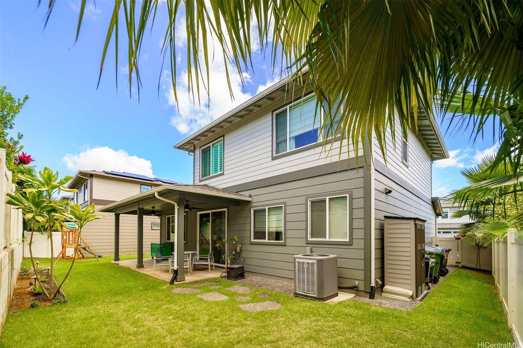Gorgeous Plan 4R in Ewa by Gentry - Coral Ridge Phase 2 ,Built in 2019, this spacious home offers an open living and dining area with 1 bedroom and 1 full bath on the first floor. The upgraded kitchen features sleek cabinets, countertops, and a large peninsula island that flows into an extended patio"”perfect for entertaining. A separate laundry room adds convenience. Upstairs includes 3 bedrooms, 2 bathrooms, and a cozy loft. The primary suite boasts a walk-in closet with custom organizer. Energy efficiency comes with 18 owned PV panels and a Tesla wall battery, plus central A/C for comfort. Situated on a 5,175 sq. ft. lot, this home is just minutes from White Plains Beach, Oneula Beach Park, community parks, Wai Kai Lagoon and Laulani Shopping Center.