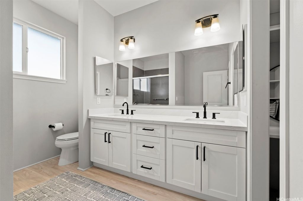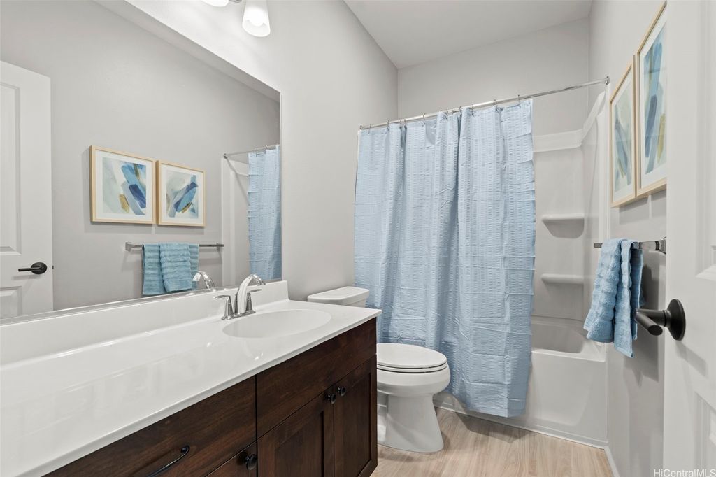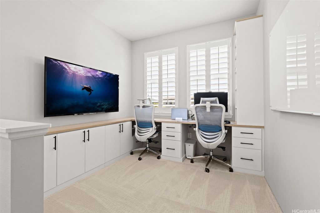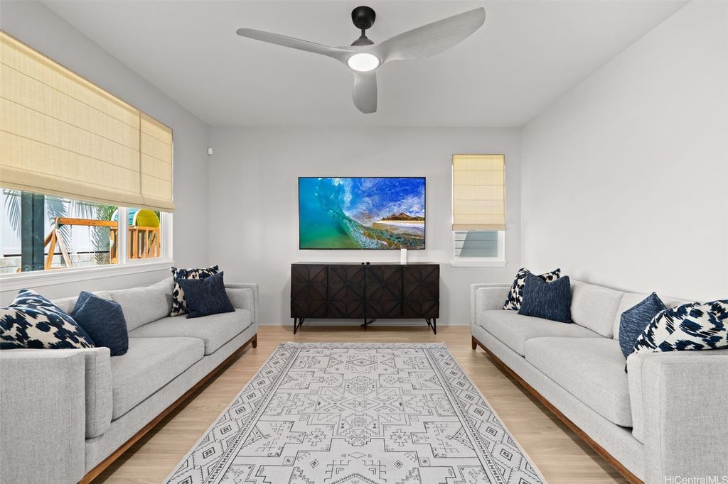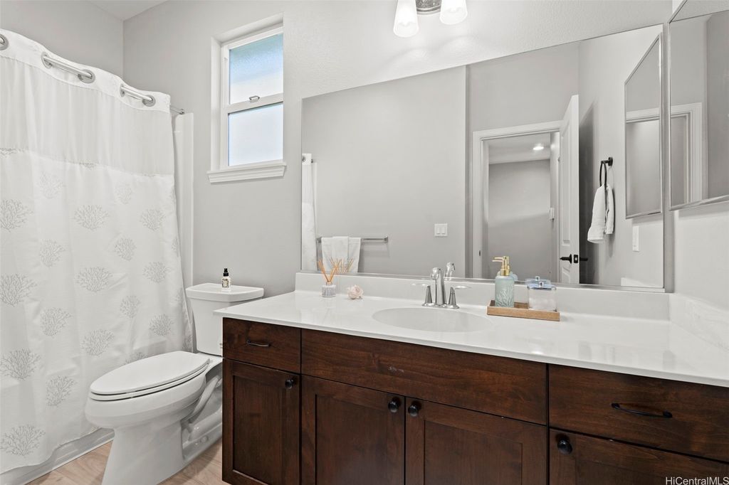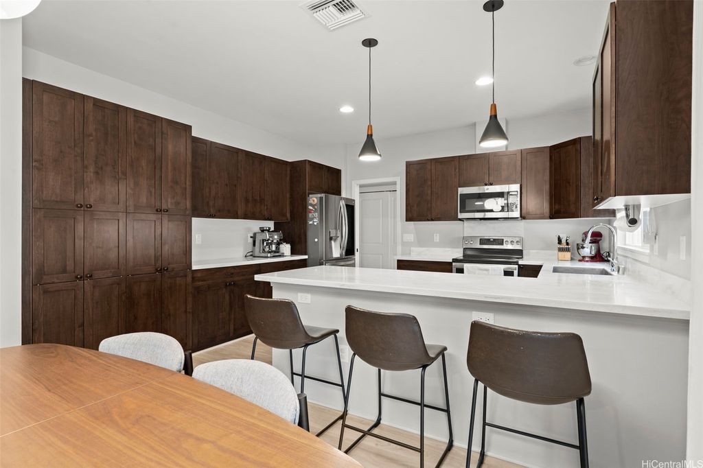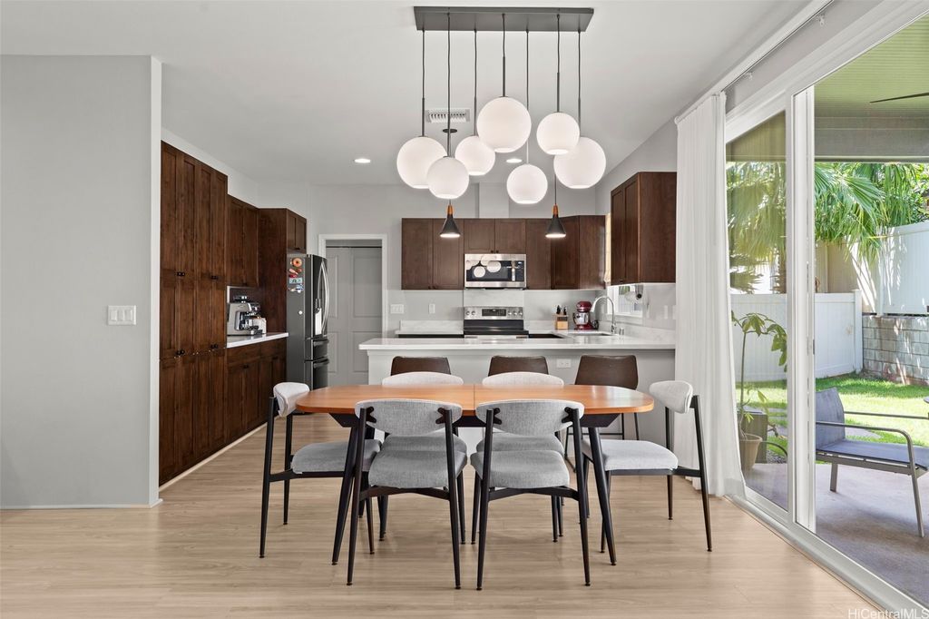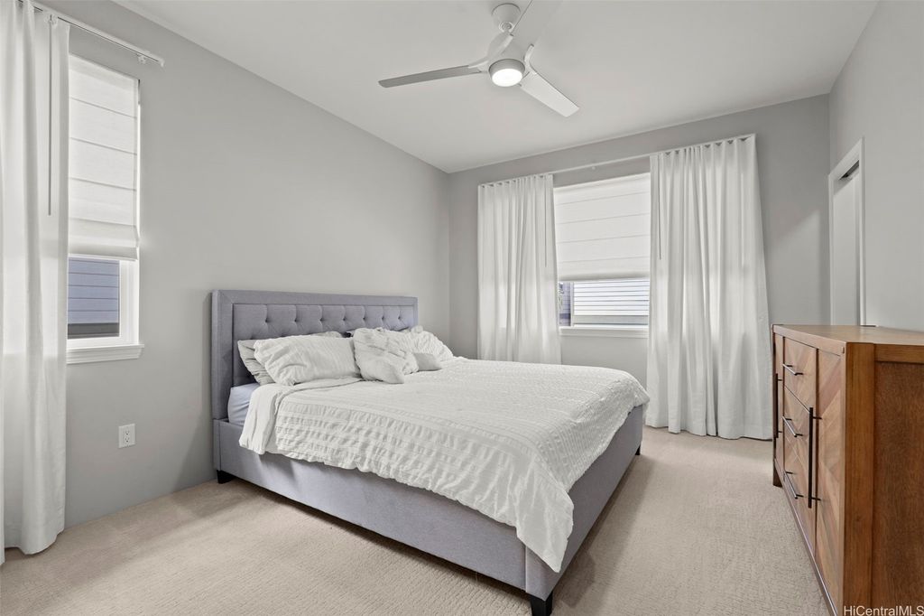 Gorgeous Plan 4R in Ewa by Gentry - Coral Ridge Phase 2 ,Built in 2019, this spacious home offers an open living and dining area with 1 bedroom and 1 full bath on the first floor. The upgraded kitchen features sleek cabinets, countertops, and a large peninsula island that flows into an extended patio"”perfect for entertaining. A separate laundry room adds convenience. Upstairs includes 3 bedrooms, 2 bathrooms, and a cozy loft. The primary suite boasts a walk-in closet with custom organizer. Energy efficiency comes with 18 owned PV panels and a Tesla wall battery, plus central A/C for comfort. Situated on a 5,175 sq. ft. lot, this home is just minutes from White Plains Beach, Oneula Beach Park, community parks, Wai Kai Lagoon and Laulani Shopping Center.