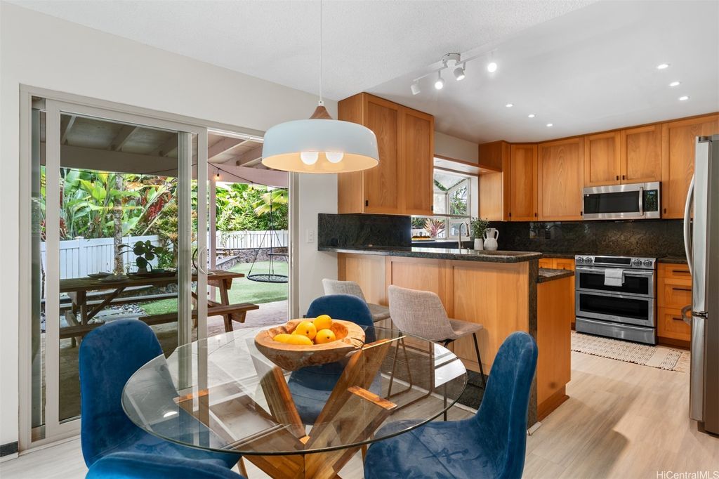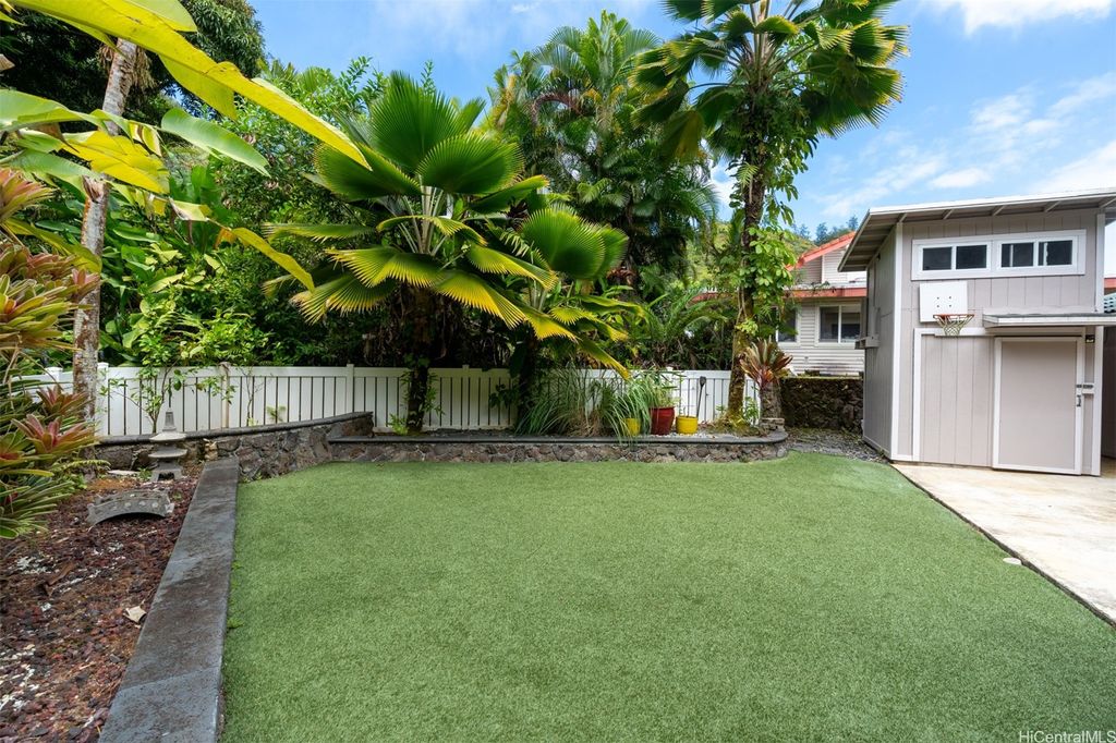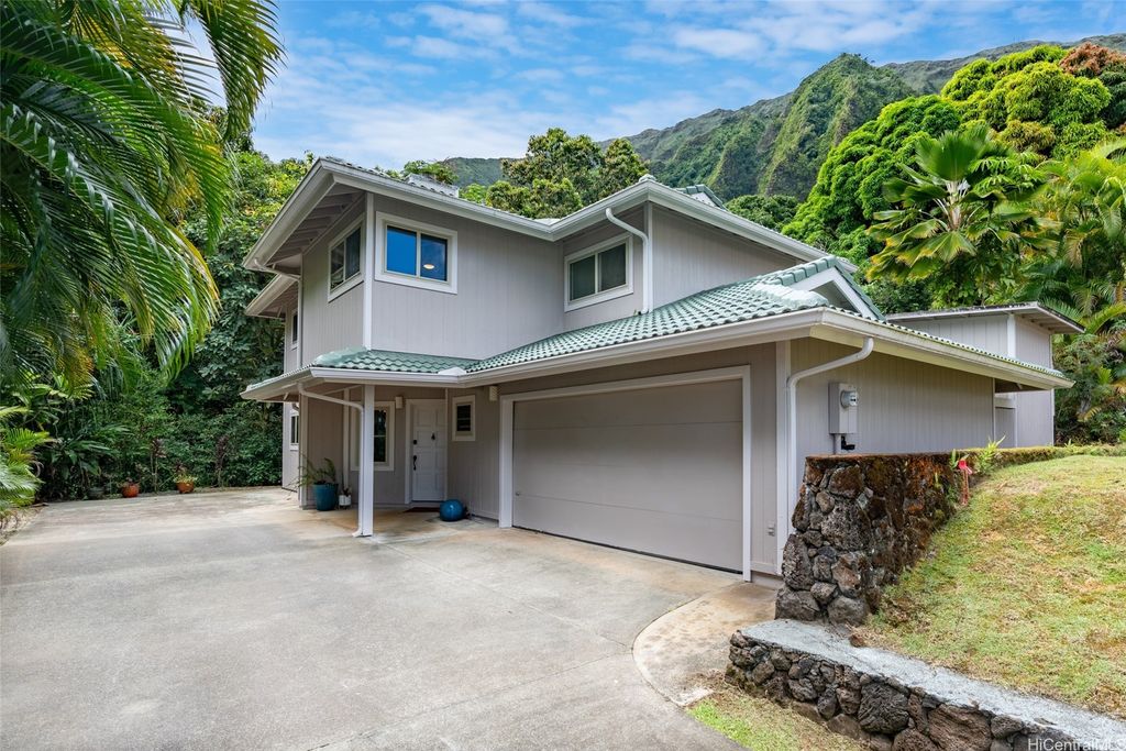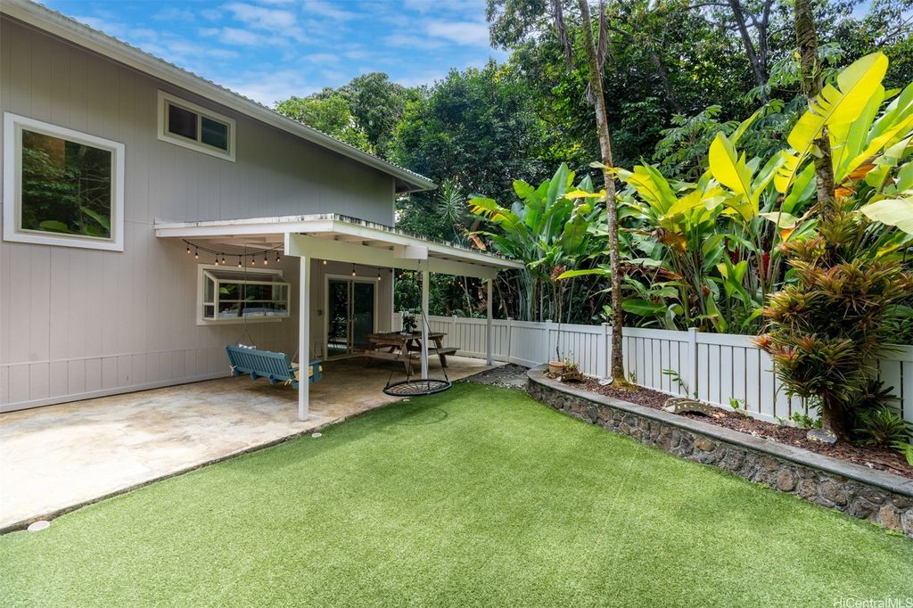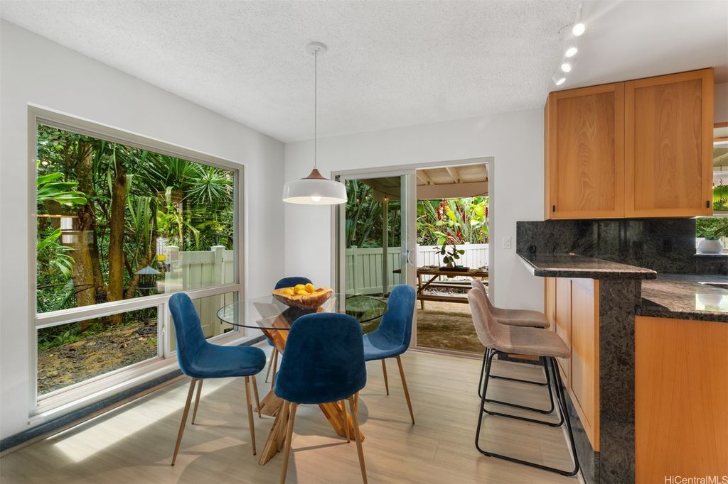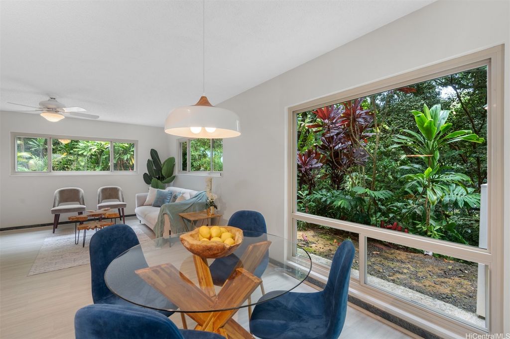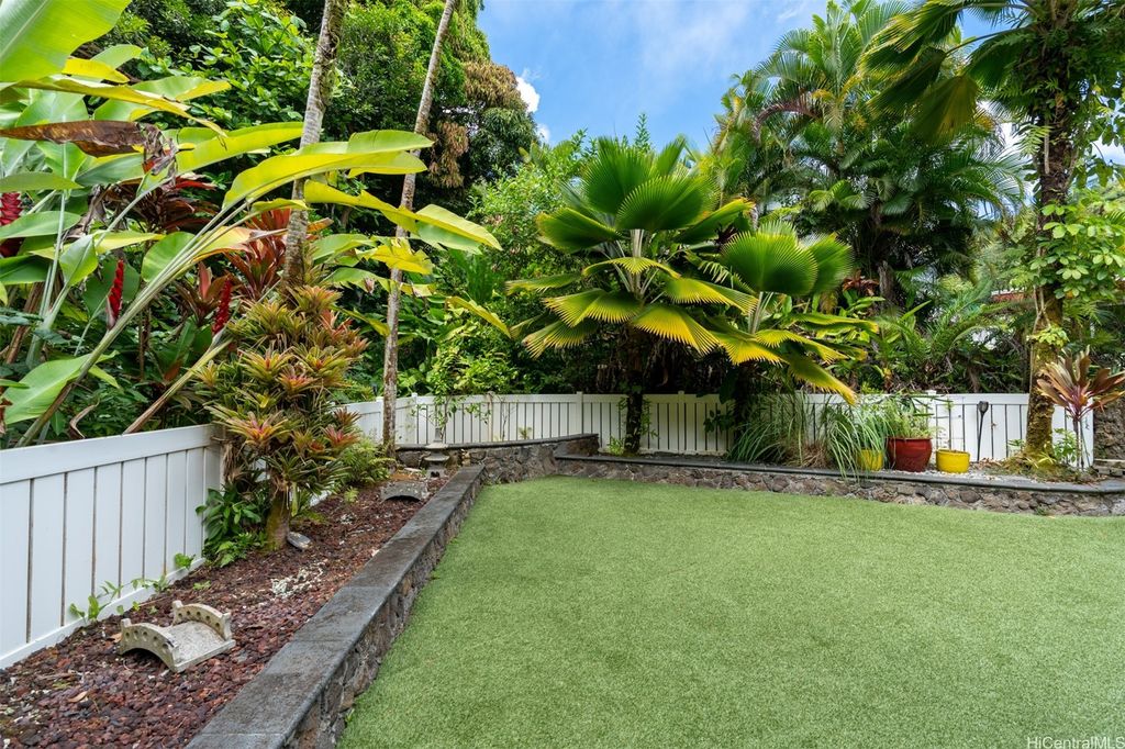 Welcome to your private escape on the Windward side. Nestled in a lush, tropical setting, this thoughtfully updated 3-bedroom, 2.5-bath residence offers the perfect blend of comfort and natural beauty. In a neighborhood surrounded by majestic Koolau mountain views, this home provides a tranquil oasis just minutes from H-3 and an abundance of shopping, restaurants and theaters in Windward Mall. Step inside to a light-filled, open-concept layout featuring fresh interior paint, new carpet upstairs. The inviting living area flows seamlessly into the dining space and updated kitchen, complete with granite countertops and bar seating. Large sliding doors open to a lush, tropical backyard with no back neighbors for added privacy. This home is ideal for relaxing, entertaining, or simply enjoying the peaceful sounds of nature and the stream that flows from the preservation area. Enjoy the serenity of Windward Oahu in a move-in-ready home that captures the essence of island living. Please make sure to check out the video!