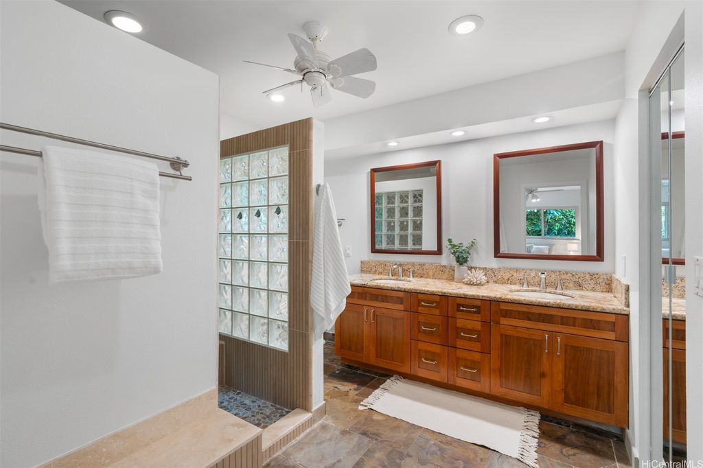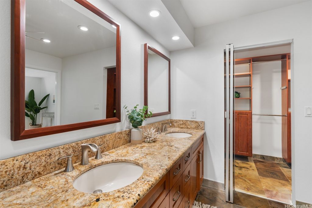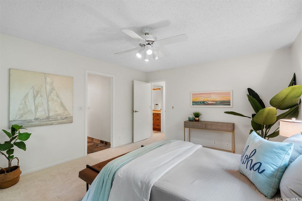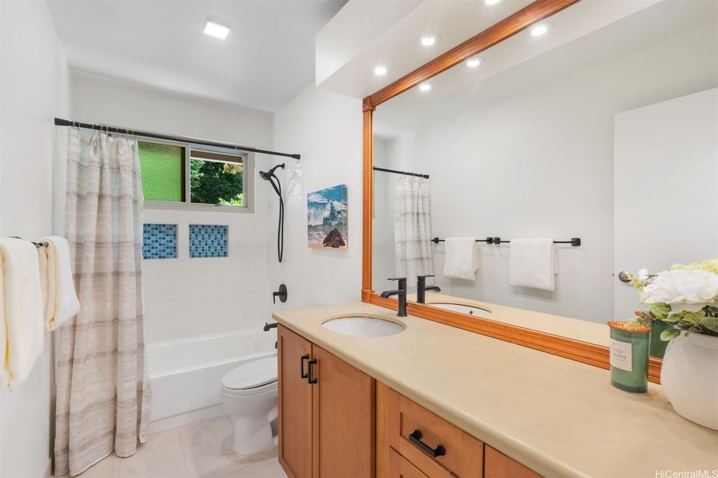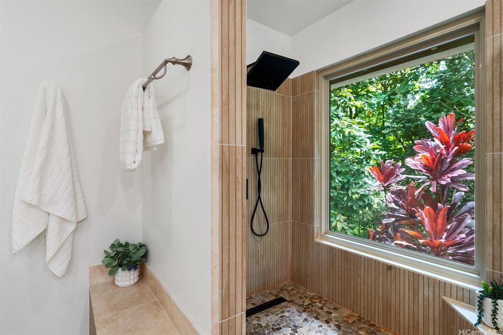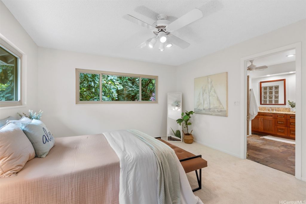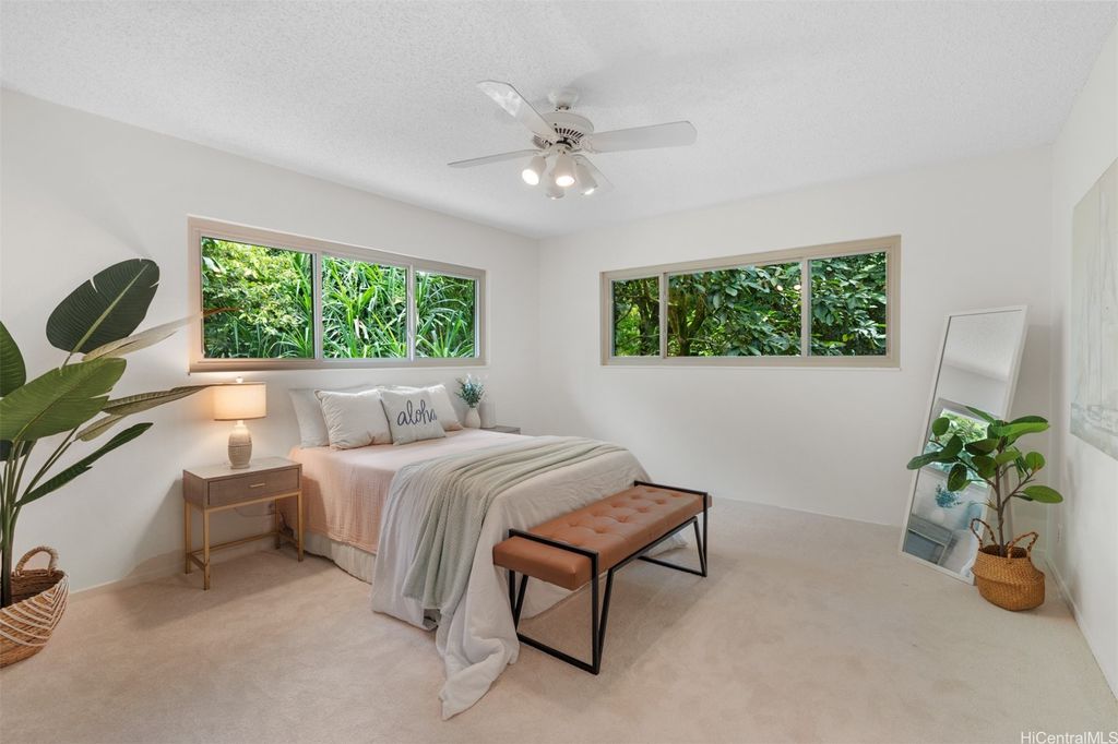 Welcome to your private escape on the Windward side. Nestled in a lush, tropical setting, this thoughtfully updated 3-bedroom, 2.5-bath residence offers the perfect blend of comfort and natural beauty. In a neighborhood surrounded by majestic Koolau mountain views, this home provides a tranquil oasis just minutes from H-3 and an abundance of shopping, restaurants and theaters in Windward Mall. Step inside to a light-filled, open-concept layout featuring fresh interior paint, new carpet upstairs. The inviting living area flows seamlessly into the dining space and updated kitchen, complete with granite countertops and bar seating. Large sliding doors open to a lush, tropical backyard with no back neighbors for added privacy. This home is ideal for relaxing, entertaining, or simply enjoying the peaceful sounds of nature and the stream that flows from the preservation area. Enjoy the serenity of Windward Oahu in a move-in-ready home that captures the essence of island living. Please make sure to check out the video!