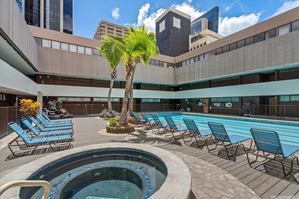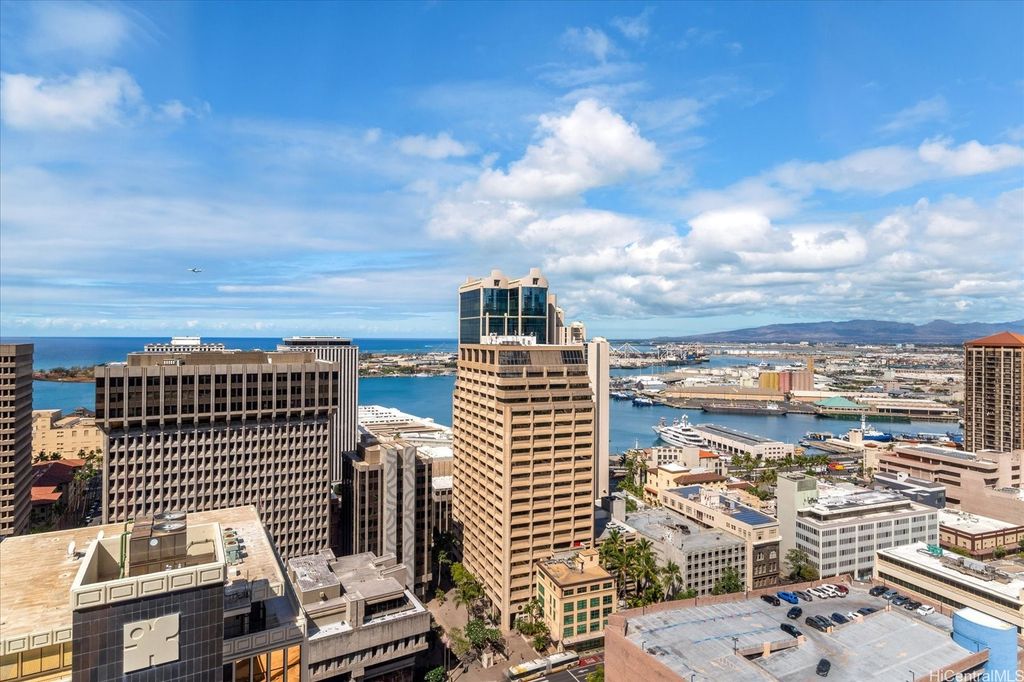 Fee Simple and spacious, this fully furnished 1 bed/1 bath/1 parking unit on the 31st floor of Executive Centre offers convenience, views, and investment potential. Floor-to-ceiling windows highlight panoramic city, ocean and harbor views. Currently in the Aston hotel rental pool, this unit is an excellent opportunity for investors or those seeking flexible urban living. Building amenities include a heated pool, 24-hr security, meeting spaces, and secured covered parking. Step outside to the heart of Downtown Honolulu with restaurants, shops, entertainment, banks, and bus lines just moments away. Situated in the financial district, the property attracts business travelers, visitors, and long-term residents alike. The combination of fee simple ownership, hotel rental income potential, and a central location makes this a standout opportunity in Honolulu's real estate market.