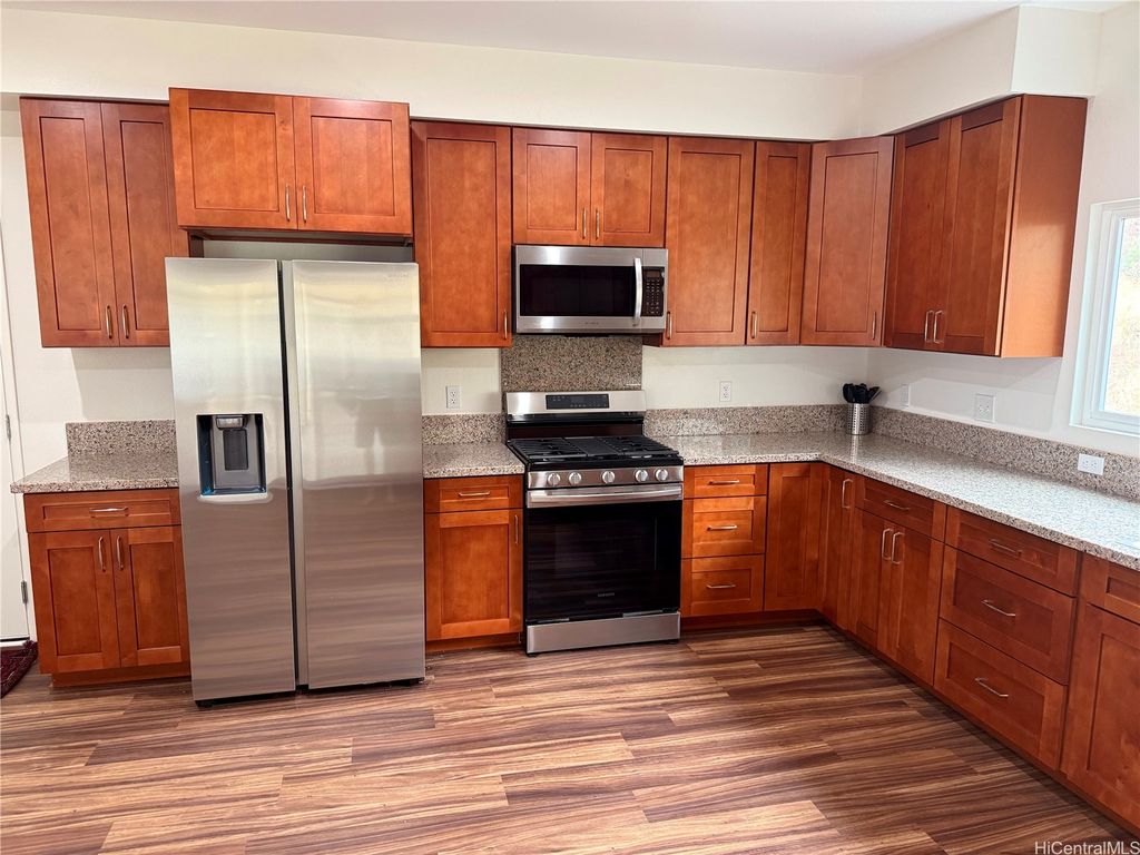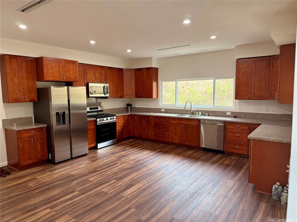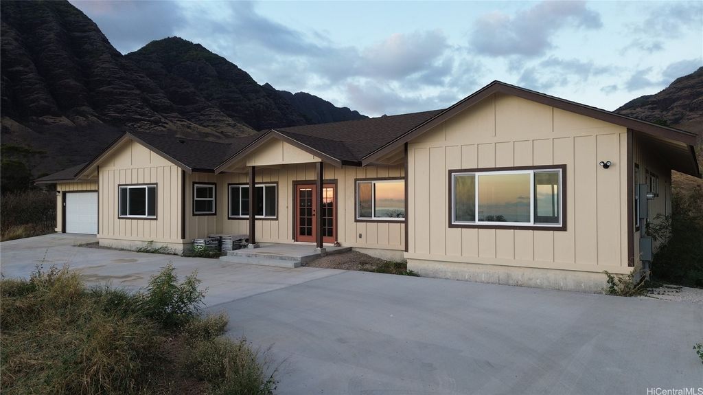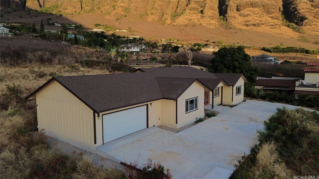 Nestled on a scenic hilltop, this exquisite 2024-built home offers a perfect blend of modern elegance & breathtaking natural beauty. Step inside to a bright, open great room with vaulted ceilings, recessed lighting, & a cozy gas fireplace "” ideal for unwinding on cool mountain evenings. The heart of the home is its expansive chef-inspired kitchen, featuring abundant counter space, a gas stove, & ample cabinetry "” perfect for both entertaining & culinary pursuits. With three spacious bedrooms, this home offers plenty of room for privacy & comfort. Two luxurious bathrooms provide tranquil spaces to relax, with high-end finishes & generous layouts. Energy-efficient low-E dual-pane windows ensure year-round comfort, while panoramic ocean & mountain views provide an exceptional backdrop "” a rare combination making this home a true retreat. While the home is complete, it does await a few finishing touches, including landscaping, gas hookup, & some small final details "” offering a unique opportunity for the new owner to add their personal stamp to this already stunning property. This is more than just a home; it's a chance to embrace a lifestyle surrounded by the beauty of Makaha Valley.