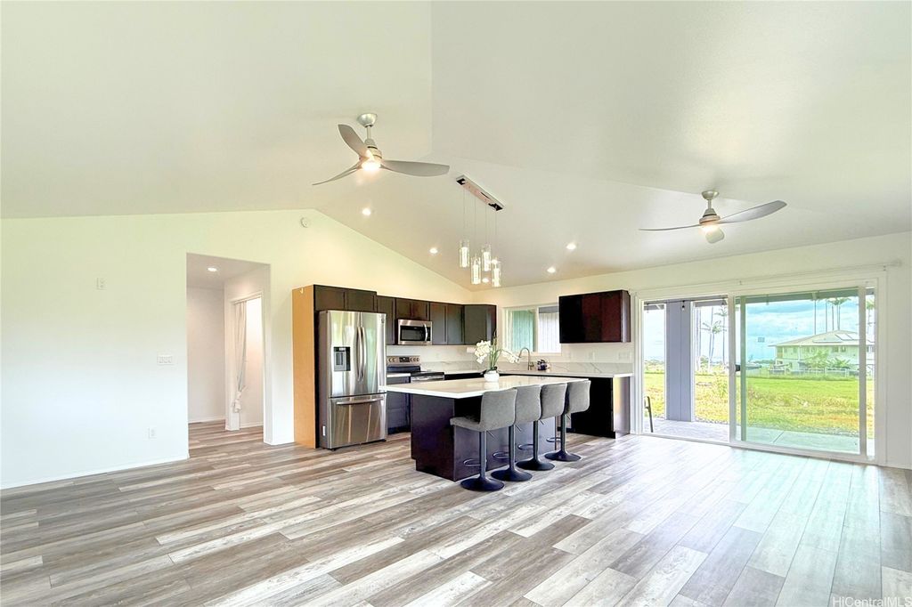 Tucked away on 5 acres of lush land in Kurtistown, this modern retreat is where island living meets everyday comfort. This Hawaii Island gem was built in 2021. The single-level home offers 3 bedrooms, 2 baths, vaulted ceilings, and a 2-car garage"”all designed with a clean, open flow. Step outside and you'll find a private paradise: a sparkling pond, fruit trees bursting with bananas, lemons, oranges, and lychee, and a breezy hilltop fire pit perfect for gathering with friends under the stars. Clear nights here invite you to stargaze like nowhere else, with Mauna Kea and Mauna Loa as your backdrop. By day, enjoy sweeping views of the Pacific horizon. By night, soak in the quiet beauty of the island sky. This incredible property offers endless potential to grow, play, and explore. This is more than a home"”it's a lifestyle.
