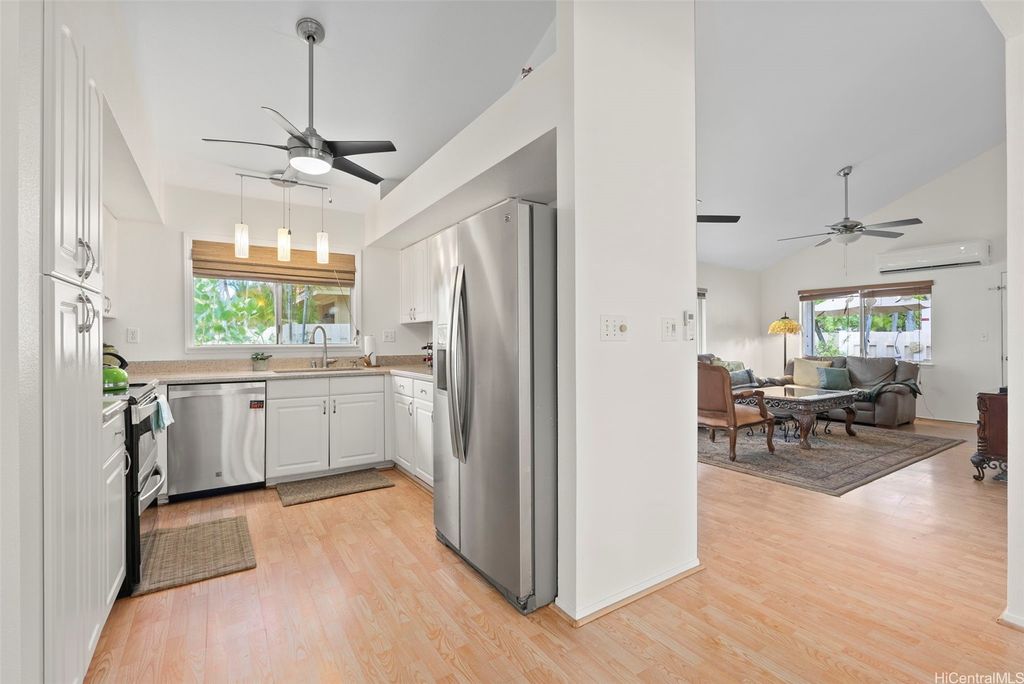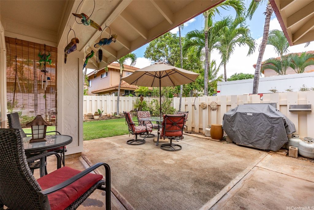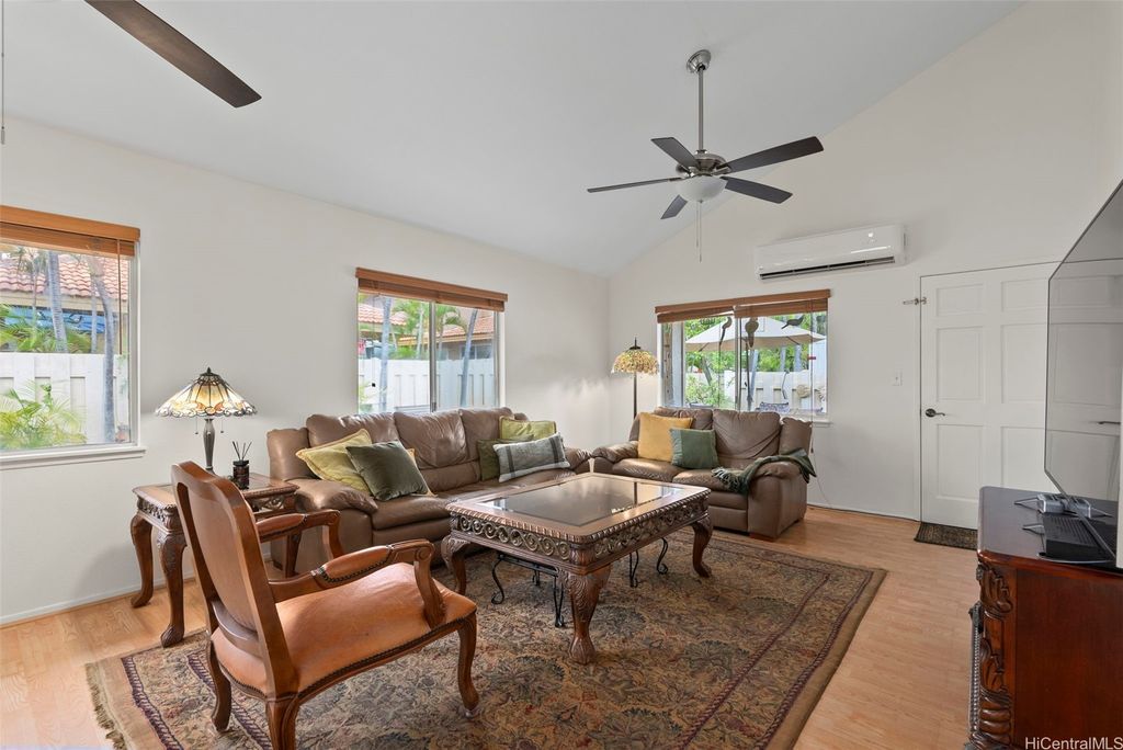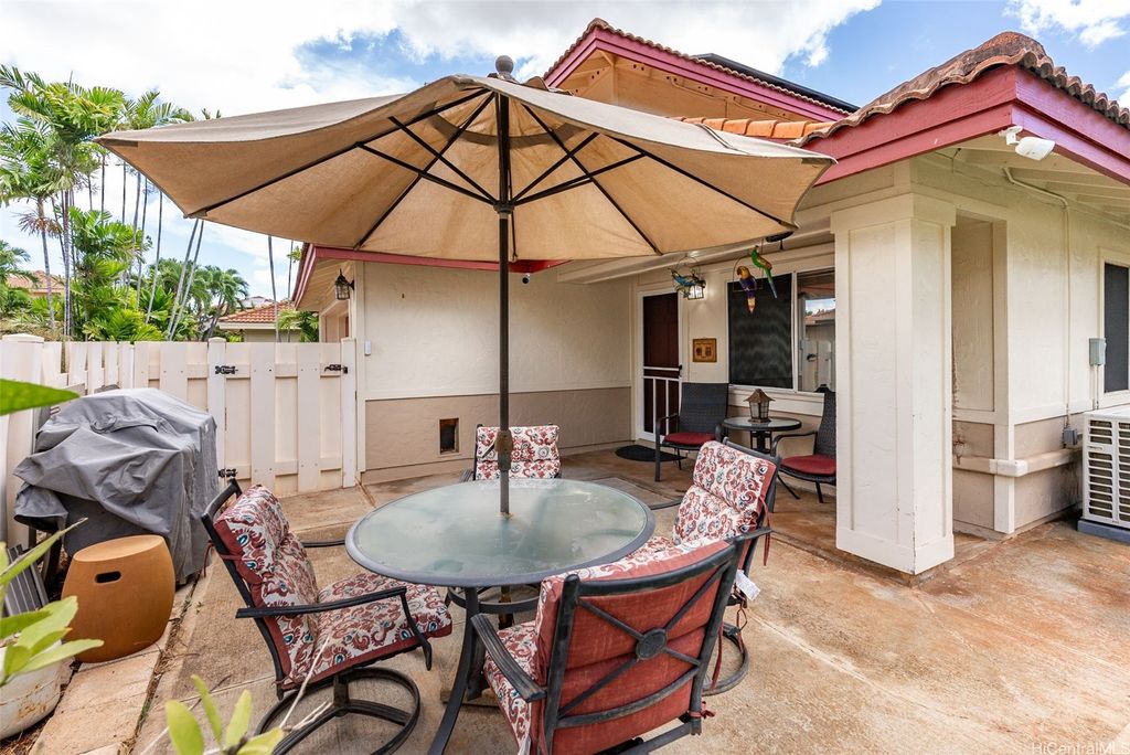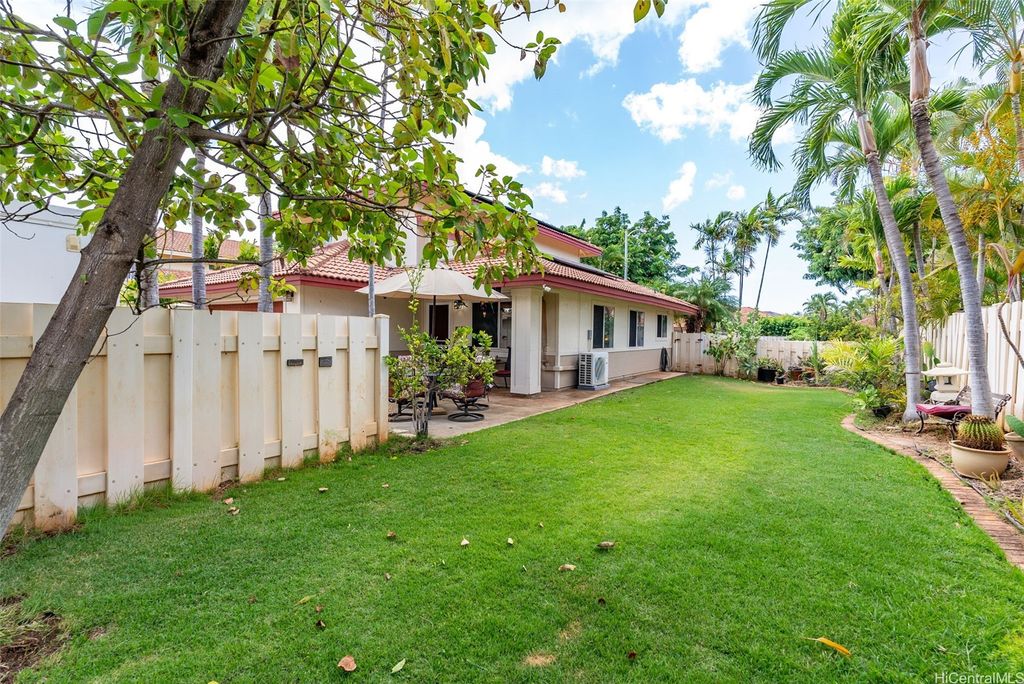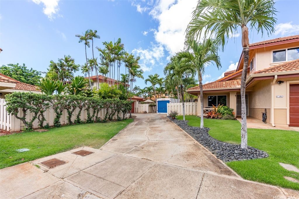 Welcome to the highly desirable Aeloa neighborhood in Kapolei! This spacious 3-bedroom, 2.5-bath residence offers 1,508 sq ft of interior living on an oversized 6,179 sq ft lot"”larger than many homes in the community. The open living area boasts vaulted ceilings, while the primary suite features its own ensuite bathroom. Renovated bathrooms, new paint, and carpet make the home move-in ready. Stay cool year-round with split AC throughout and save on utilities with 27 owned photovoltaic panels. A 2-car garage plus extended driveway provides parking for 4+ additional cars, a rare find in Kapolei. The gated yard includes a garden and a covered patio"”perfect for pets, kids, and weekend BBQs. Nestled in a quiet cul-de-sac within a peaceful neighborhood, yet just minutes from all the shopping, dining, and entertainment Kapolei has to offer. Best of all"”NO MAINTENANCE FEES only $53/mo association dues, a rare find in Kapolei and Ewa. Your association dues allow you access to all the amazing amenities that the Villages of Kapolei provides. With more space inside and out, this Aeloa gem blends comfort, function, and location.