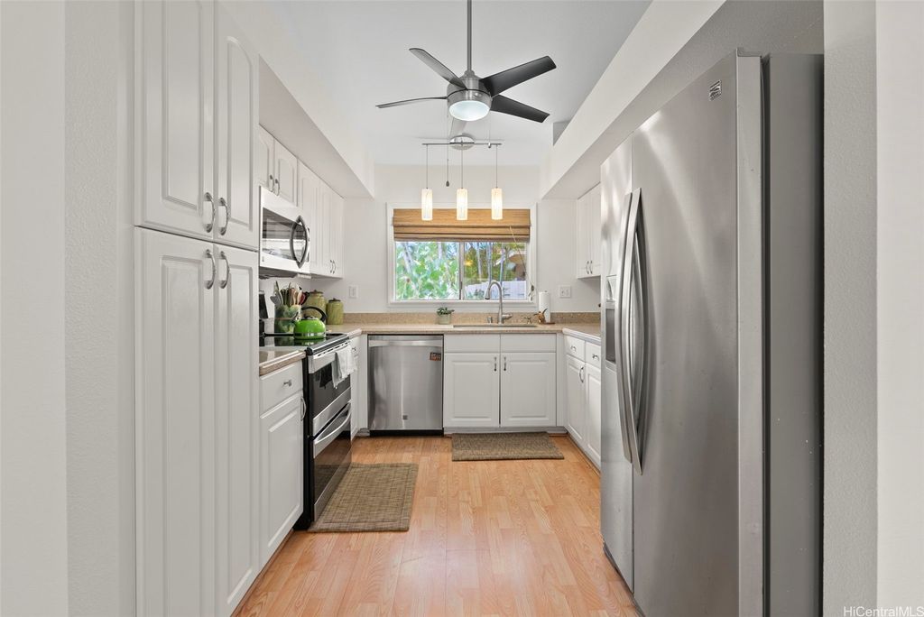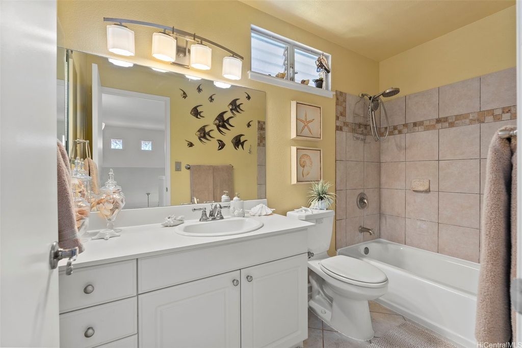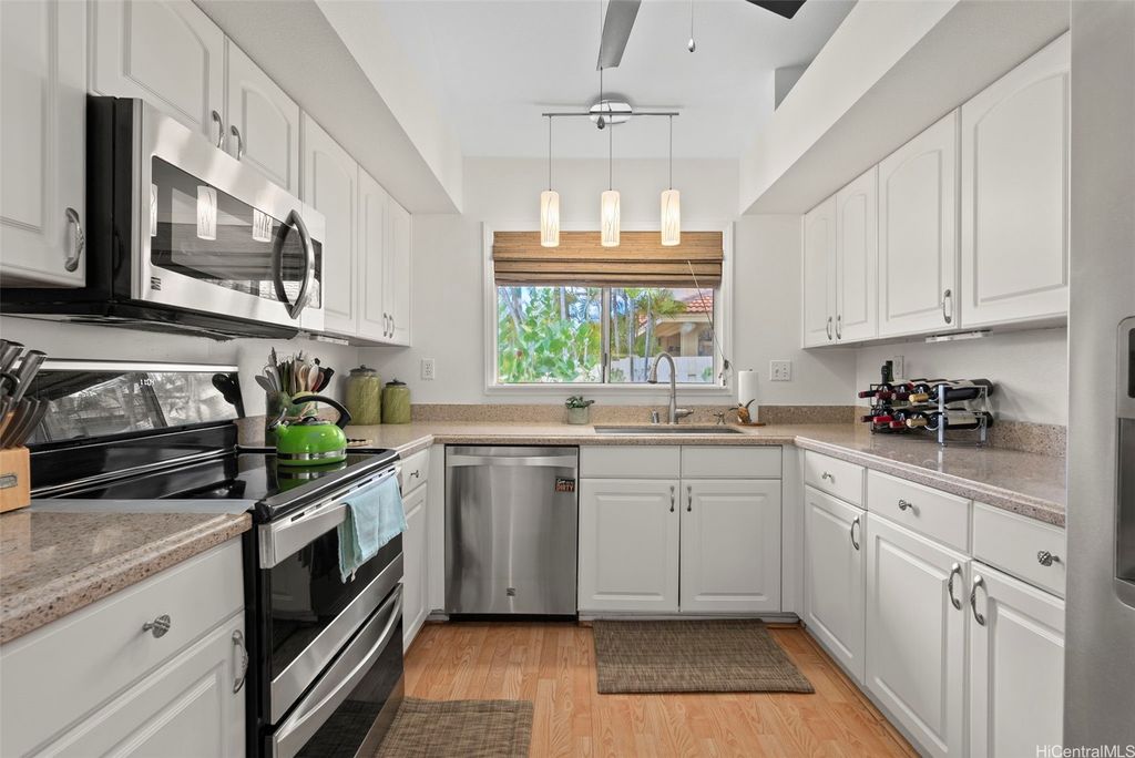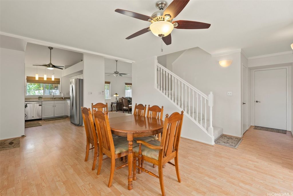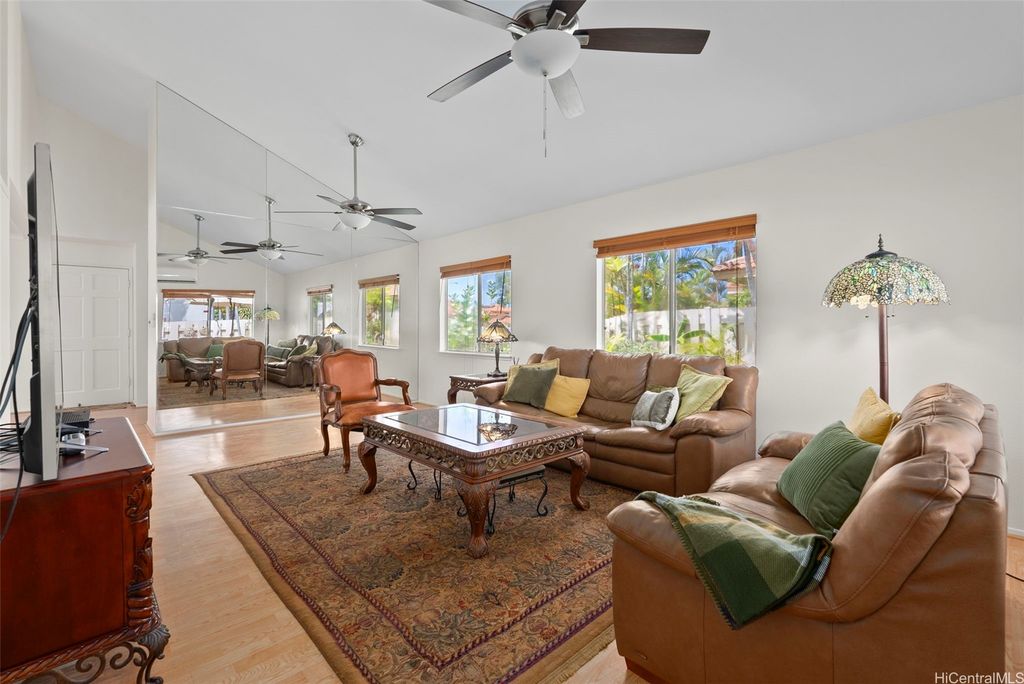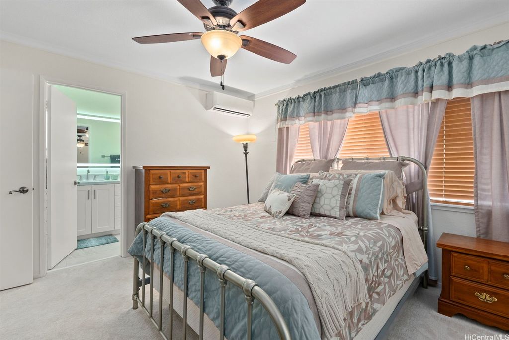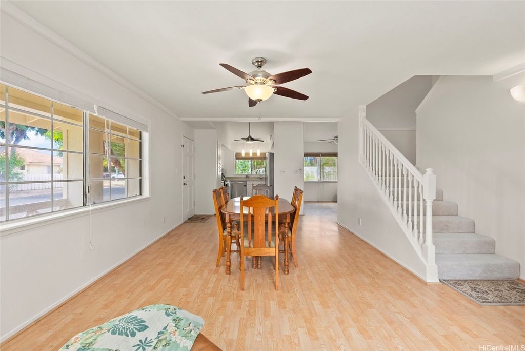 Welcome to the highly desirable Aeloa neighborhood in Kapolei! This spacious 3-bedroom, 2.5-bath residence offers 1,508 sq ft of interior living on an oversized 6,179 sq ft lot"”larger than many homes in the community. The open living area boasts vaulted ceilings, while the primary suite features its own ensuite bathroom. Renovated bathrooms, new paint, and carpet make the home move-in ready. Stay cool year-round with split AC throughout and save on utilities with 27 owned photovoltaic panels. A 2-car garage plus extended driveway provides parking for 4+ additional cars, a rare find in Kapolei. The gated yard includes a garden and a covered patio"”perfect for pets, kids, and weekend BBQs. Nestled in a quiet cul-de-sac within a peaceful neighborhood, yet just minutes from all the shopping, dining, and entertainment Kapolei has to offer. Best of all"”NO MAINTENANCE FEES only $53/mo association dues, a rare find in Kapolei and Ewa. Your association dues allow you access to all the amazing amenities that the Villages of Kapolei provides. With more space inside and out, this Aeloa gem blends comfort, function, and location.