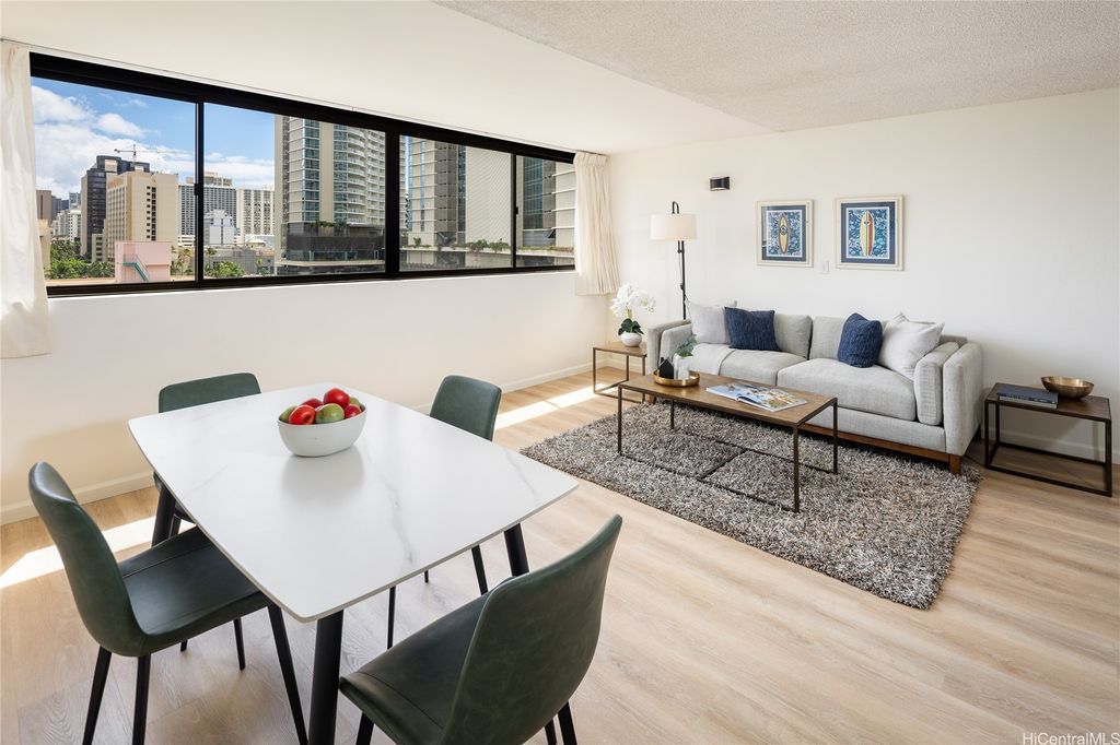 NEW LISTING - Welcome to La Casa in Waikiki - a pet-friendly 1-bedroom, 1-bathroom unit featuring brand new luxury vinyl flooring and fresh paint throughout. With the enclosed lanai, the interior space increased to approximately 663 square feet, creating a bright, open, and flexible living space with room for dining, relaxing, and entertaining. This home also includes one assigned, secure garage parking stall along with the convenience of an in-unit washer and dryer. Building amenities include secure guest parking, an on-site resident manager, trash chute, car wash area, loading zone, and a large rooftop deck with stunning sunset and ocean views. La Casa is pet-friendly, VA-approved, and located directly across from the Ritz-Carlton Residences "” just minutes from Luxury Row, world-class restaurants, Waikiki shops, Fort DeRussy Beach Park, Hilton Lagoon, and the famous Friday night fireworks. This is your chance to own a beautifully updated Waikiki home in a prime location! * Vacant and easy to show to pre-approved buyers. First Public Open House this Sunday, September 21, from 2:00 PM to 5:00 PM.
