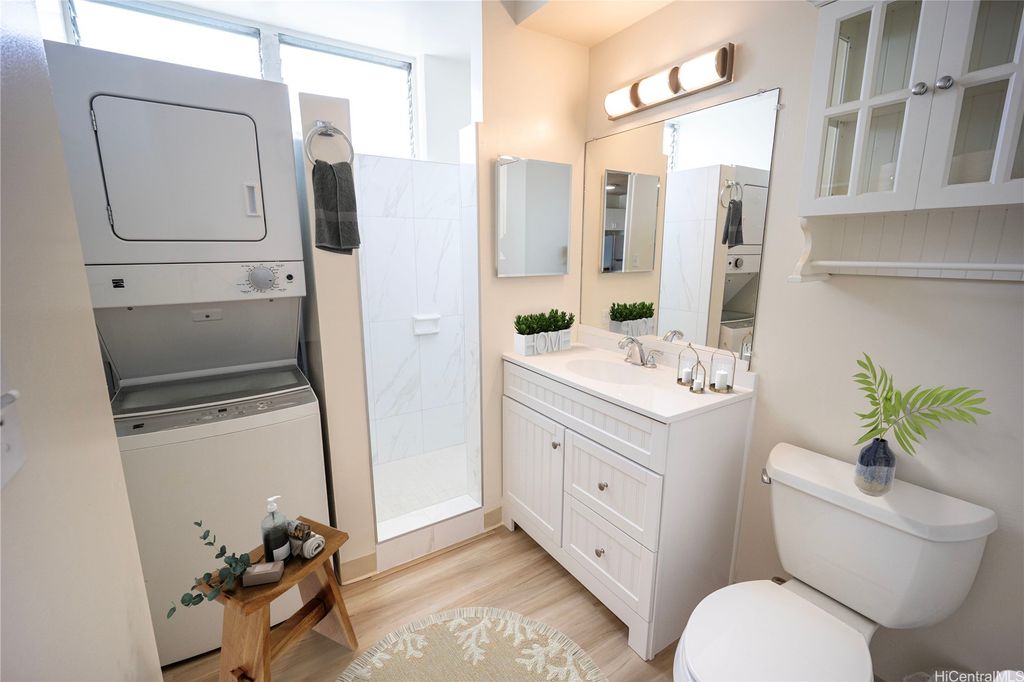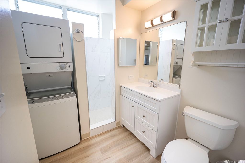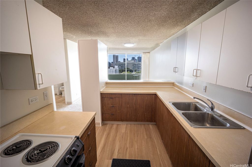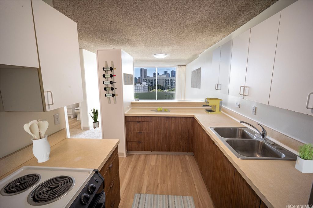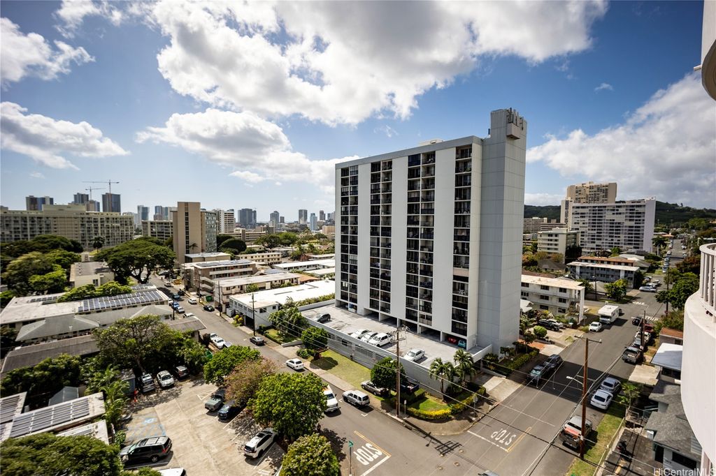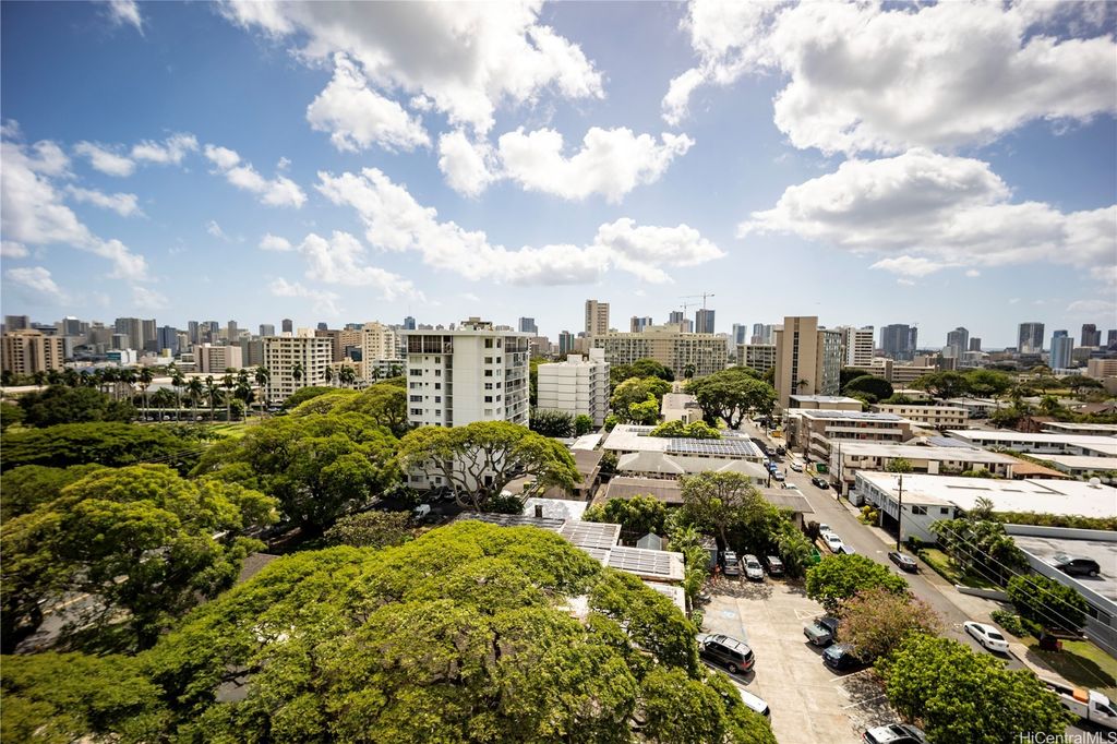 Beautiful 2 bedroom/1 bath corner unit at the "Punahou Manor" with spectacular city, mountain, Manoa Valley, ocean views and recently redone! Located in Makiki-Punahou neighborhood - close to two major hospitals, art museums, downtown Honolulu, freeway onramps, supermarket, Punahou School and Maryknoll School. Beautiful lanai with sunset views with washer and dryer in unit. 1 covered parking stall. Includes refrigerator, washer and dryer, drapes, range/oven.
