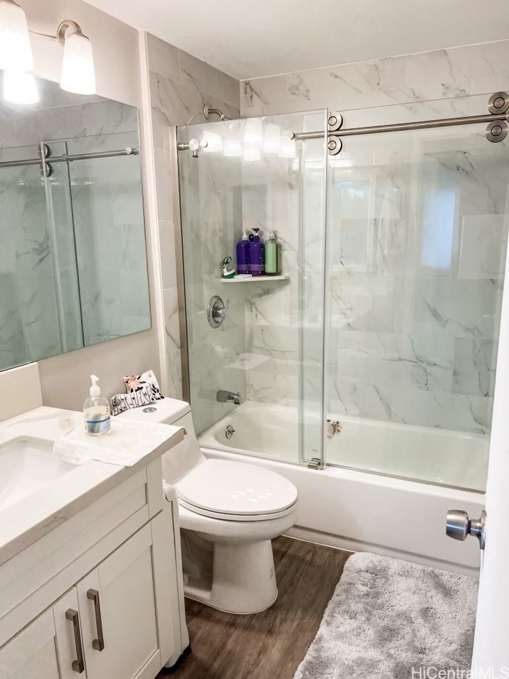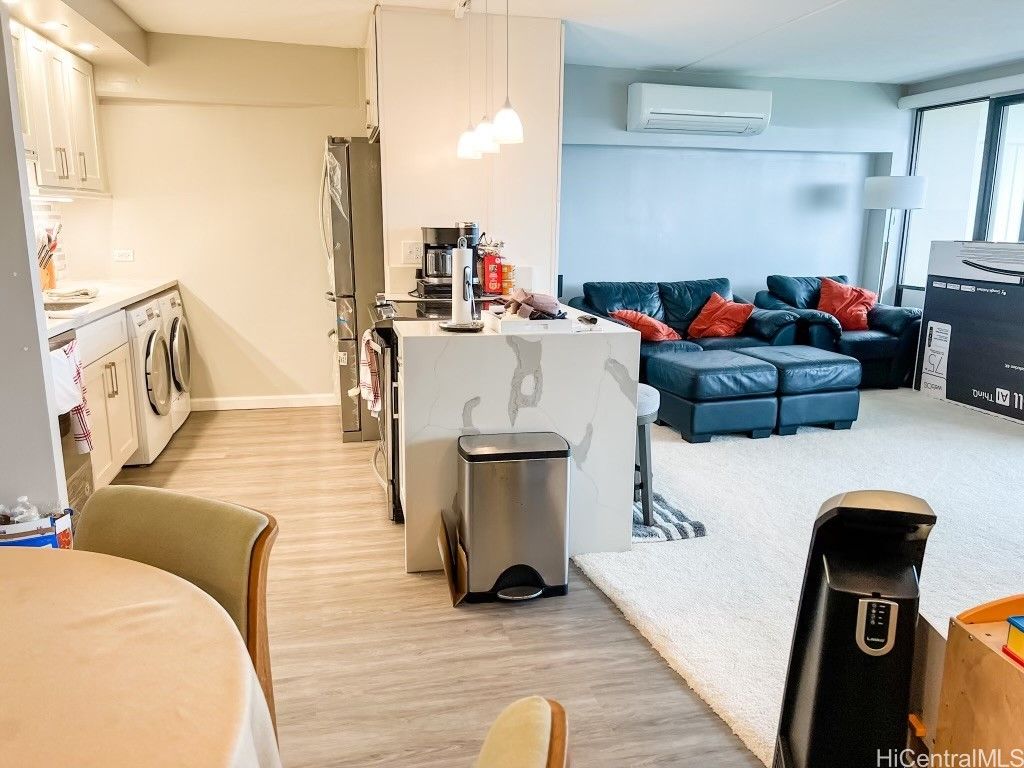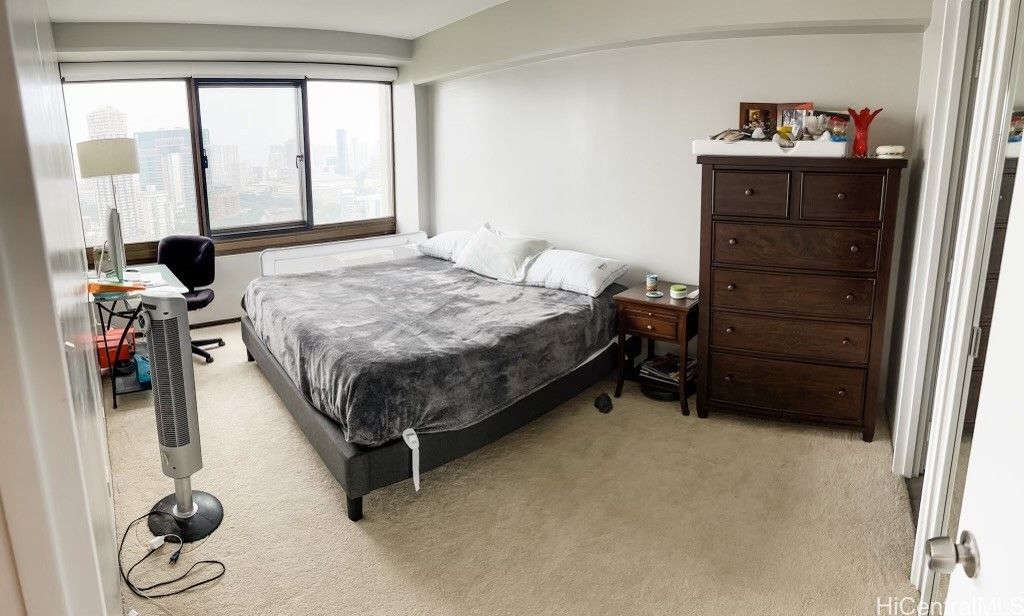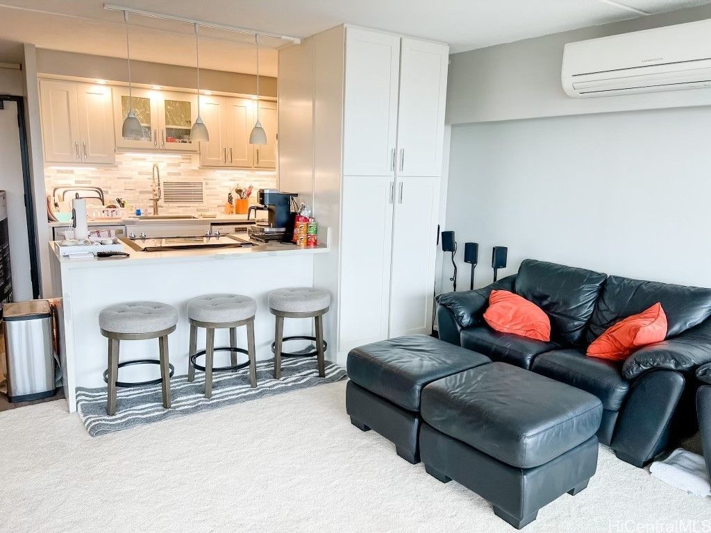 Renovated 2-bedroom, 2-bath condo with one parking space at Marco Polo. This unit boasts an updated open kitchen with new quartz countertops, stylish cabinets, a washer/dryer, split AC in the living room, window AC units in the bedrooms, new stainless steel appliances, renovated bathrooms, new vinyl flooring, and plush luxury carpeting. Enjoy stunning views of Waikiki's city lights, sunsets, and Friday night fireworks. Conveniently located near bus lines, beaches, restaurants, University of Hawaii, Waikiki, McCully Shopping Center, and more. Amenities include spacious BBQ areas, swimming pool, hot tub, sauna, tennis and basketball courts, golf driving nets, car wash, bicycle/surfboard storage room, lobby convenience store, ample guest parking, and 24-hour security. Available from Ocotober 1st. No pets and no smoking allowed. Additional parking stall $150.