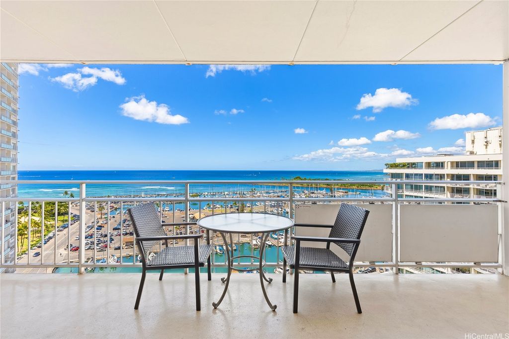 16th floor 1 bedroom, with ocean and yacht harbor views. On-site Security with resident manager's office on site, amenities include pool and community laundry area, along with shops and restaurants on property. Walking distance to Waikiki Beach and Ala Moana.