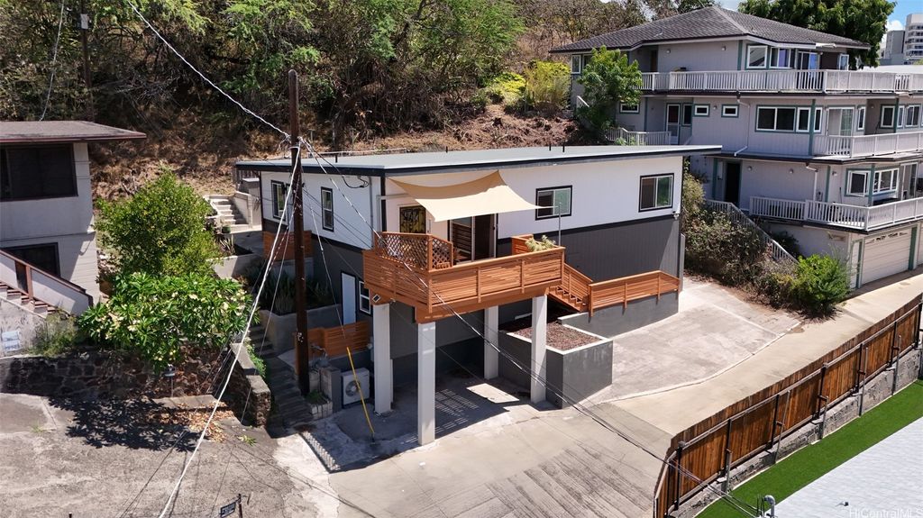 This is the one! Beautifully renovated single family home on the slopes of Punchbowl at the top of Ward Ave. Full renovation including new roof was completed in 2022. 4 bedroom 2 bath upstairs, downstairs is a studio with a full bath and private entrance. Imagine entertaining with your modern kitchen of stainless steel appliances, induction range, open floor plan that flows out to the deck overlooking Honolulu with Diamond Head and peek-a-boo ocean views. Location is ideal with easy access to shopping, beaches, H-1 freeway, Ward Village and Downtown Honolulu.