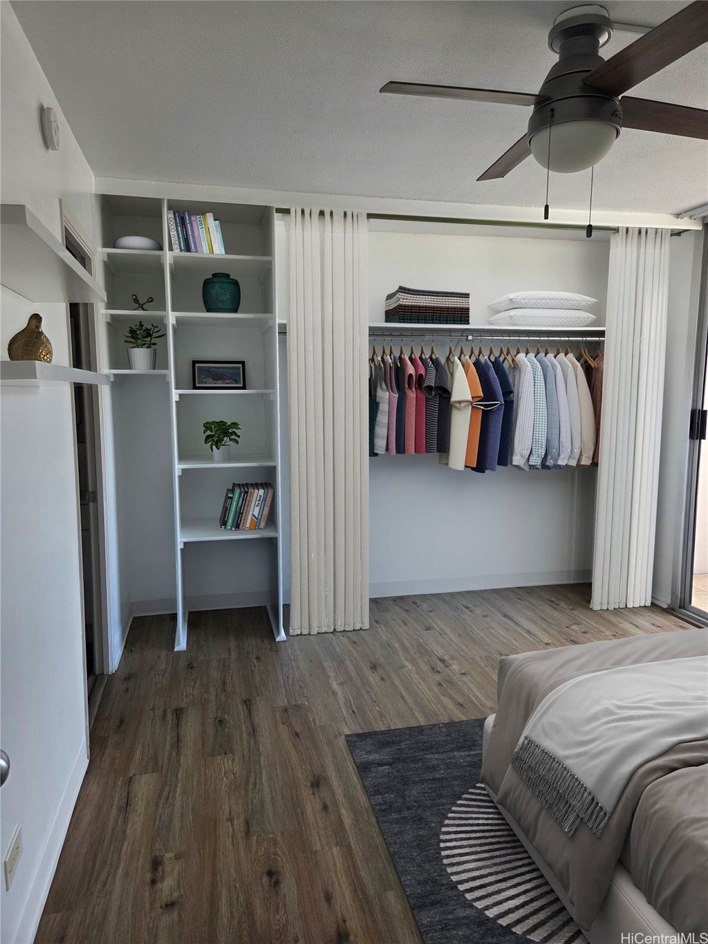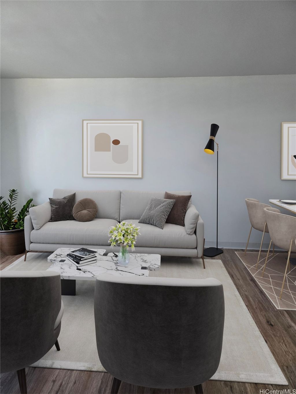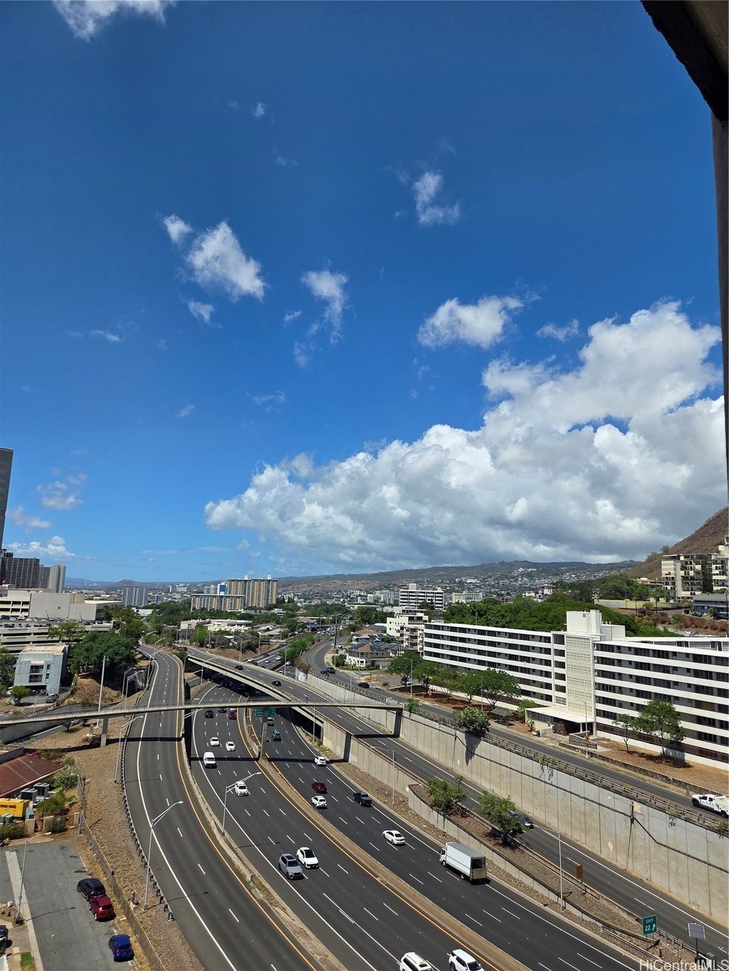 This lovely, corner end, one-bedroom, one-bath unit features a lanai extending from the living room to the bedroom. City and skyline views of mountain and ocean. If location matters, enjoy easy, close proximity to H-1 access, convenient bus line route, Neal Blaisdell Center, Thomas Square Park, Honolulu Museum of Art, Open Market on Wednesdays at the Neal Blaisdell Center grounds, Ala Moana Shopping Center, Kaka'ako restaurants, University of Hawaii, and more. The property was previously renovated in 2021 to include cherry cabinets, Quartz countertops, a new sink, and stainless steel appliances in the kitchen. Updates also included a new bathroom vanity, sink, faucet, washer/dryer, toilet and mirror. Newer refrigerator 2024. New laminate flooring in the living room kitchen and bedroom. Bathtub was nicely reglazed. There is one assigned, compact, covered parking stall. A convenient Mini Mart is also located on the ground floor. As-is condition, no repairs, but Buyer will receive a one year warranty from America's Preferred Home Warranty upon closing.