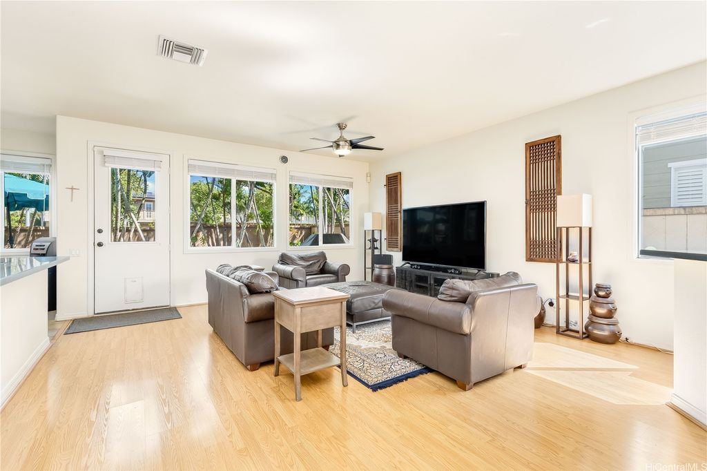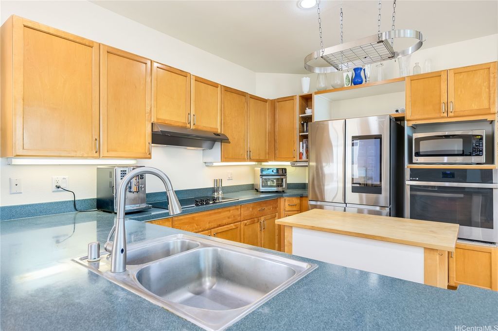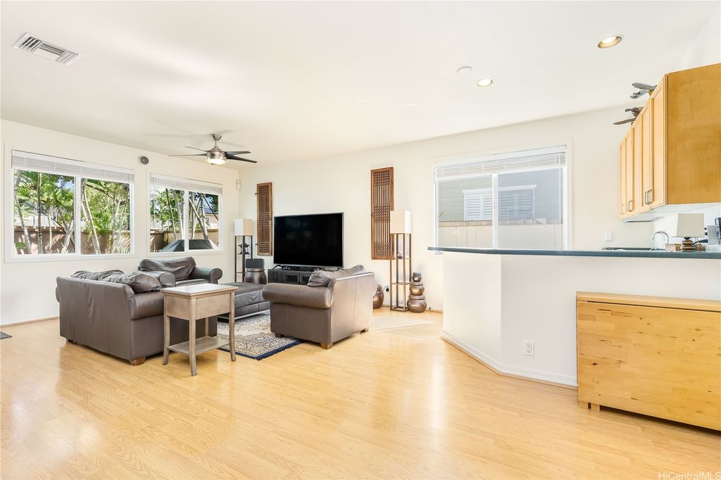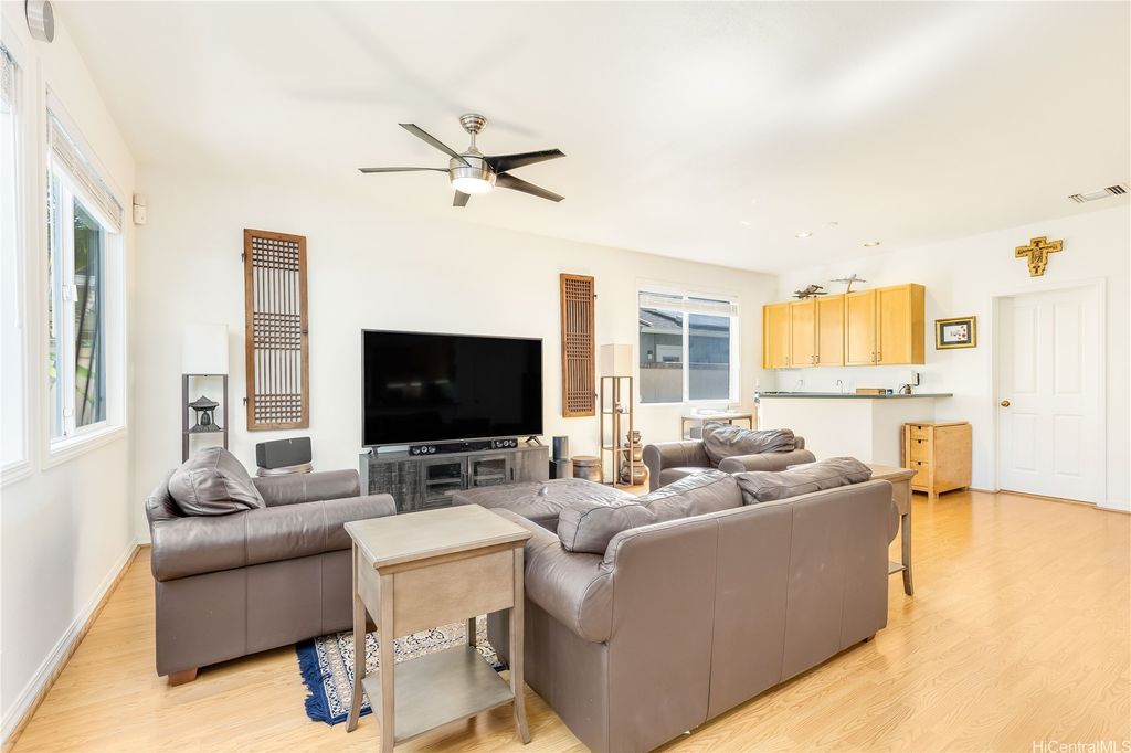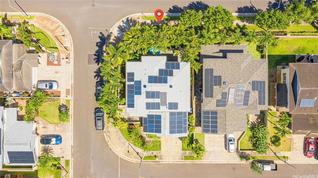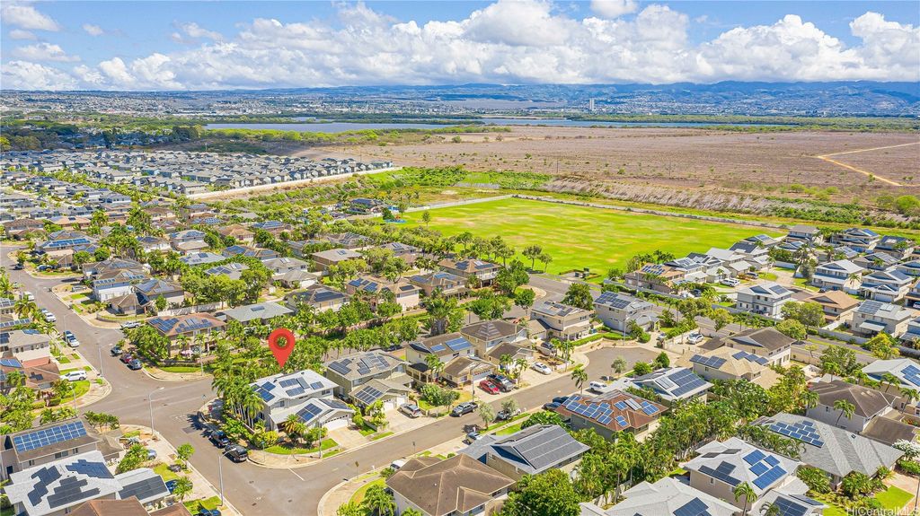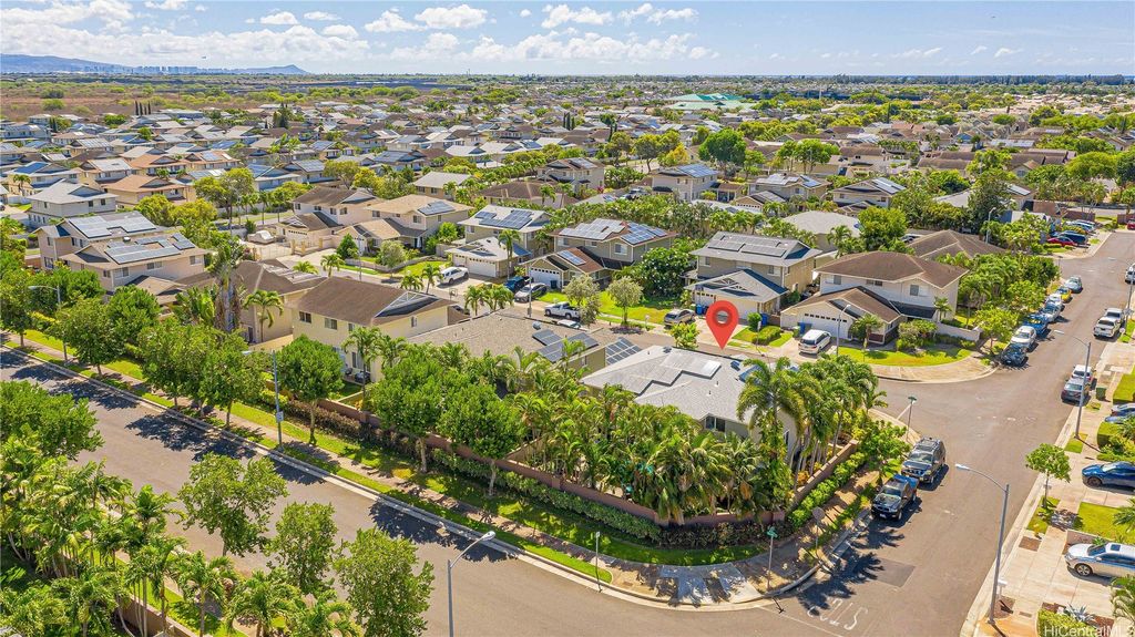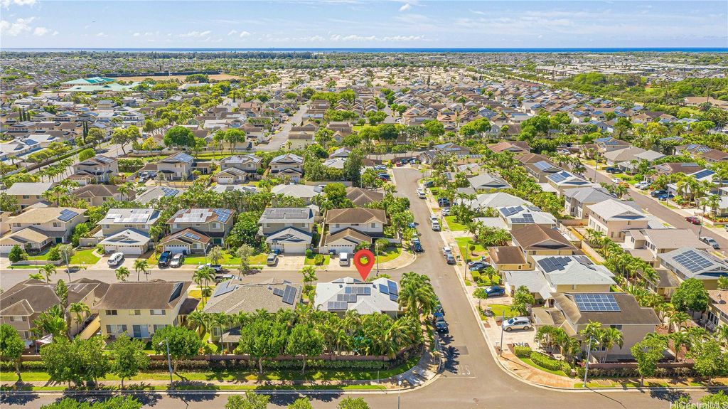 Discover this spacious executive-style home in Ewa Gentry Carriages! The desirable Lexington model offers 2,496 sqft. of interior living with 4 bedrooms, 3 bathrooms, a 2-car garage and an attached workshop situated on a corner lot. Step through the double entry doors into a welcoming secondary living room that flows into the formal dining area. The kitchen boasts a breakfast nook, generous cabinet space, island seating and opens up to the formal living room complete with a wet bar. Located just off the living room is the separate laundry area which leads into the garage and workshop. Upstairs you'll find 3 guest bedrooms, a study nook, full guest bathroom and a spacious primary suite with its own ensuite bathroom and a walk-in closet with a built-in storage system. Outside, enjoy your private backyard retreat with mature palms providing shade which is ideal for gatherings and relaxation. Additional features include 51 leased solar panels resulting in a credit on current owner's HECO bill, a newer roof, brand new AC system and fresh exterior paint completed about 4 years ago. Enjoy the convenience of being near shopping, restaurants, banks and Ka Makana Alii mall just minutes away.