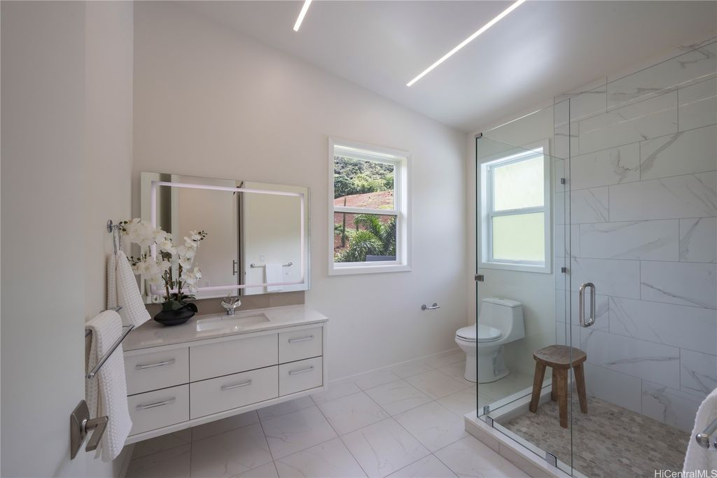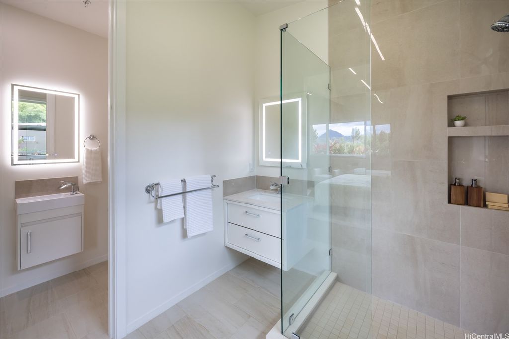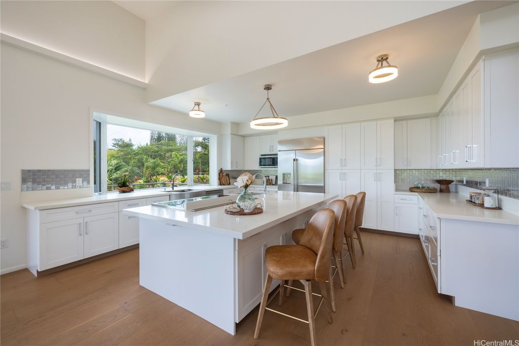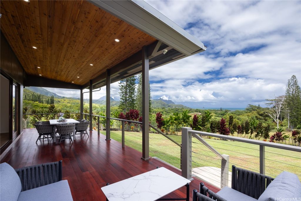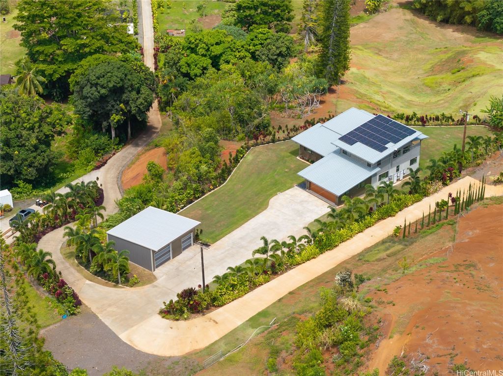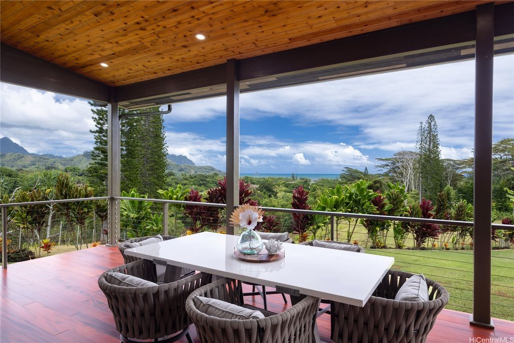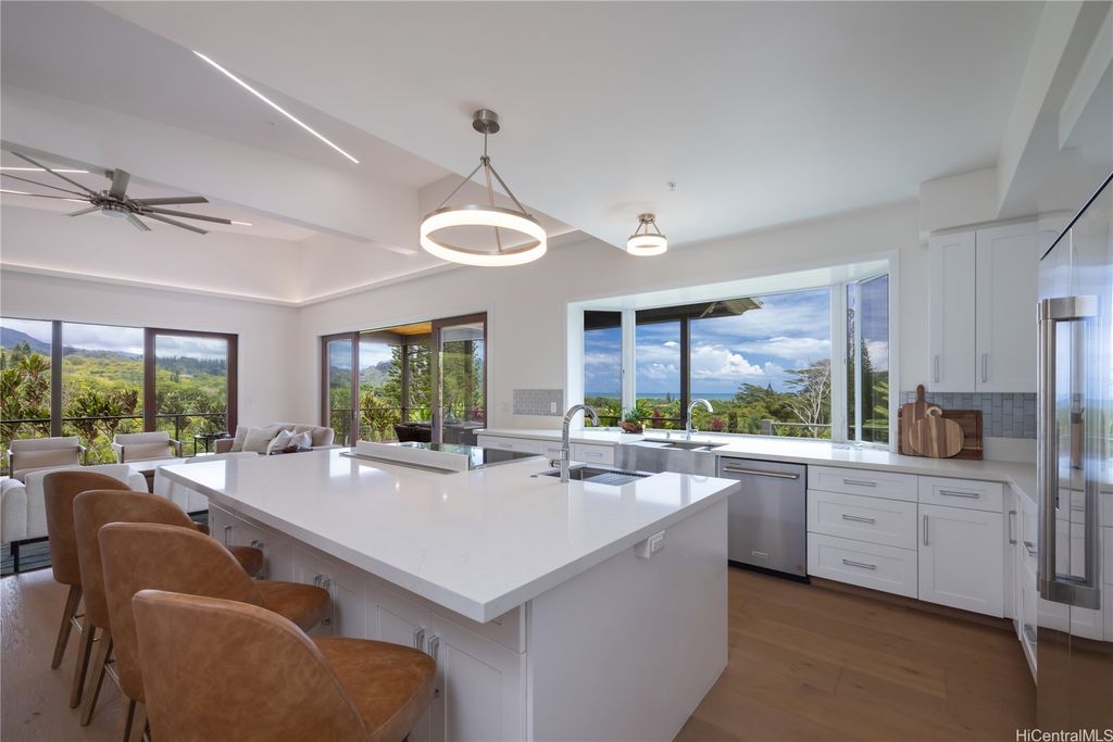 Prominently situated at the base of the Ko"˜olau Mountain, a newly built Luxury Country Estate is a rare opportunity for a discerning Buyer seeking views, land, location, & privacy. Spanning over 4 acres above a neighborhood of Cacao Farming, this private Retreat offers breathtaking panoramic views of the ocean, and lush mountain cliffs. A thoughtfully designed residence showcasing soaring ceilings, mahogany framed glass doors from floor to ceiling for seamless indoor-outdoor living. Custom finishes include monkeypod stair treads, tigerwood lanais, custom LED recessed lighting (converts to 12 volts), and 8' doors throughout. The Chef's kitchen features 2 sinks, an oversized island - perfect gathering area for the Holidays or entertaining, a 6-burner range/2 ovens with pop-up hood. Primary suites, 1 on each level, offer spa-inspired bathrooms, walk-in closets and a private balcony upstairs. SUSTAINABILITY meets SOPHISTICATION. Owned PV system, tropical landscaping & gated driveway entry. BONUS unattached 900sf workshop. Tucked away for serenity yet minutes from conveniences, this is Hawai"˜i living at its finest. Conveyed w/TMK 1-4-7-5-41-1/MLS #202519988.