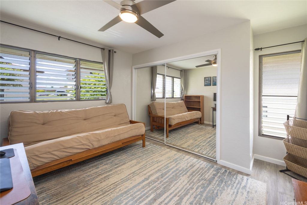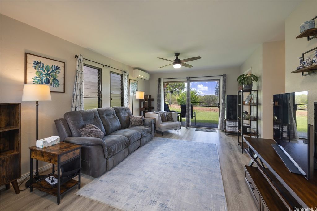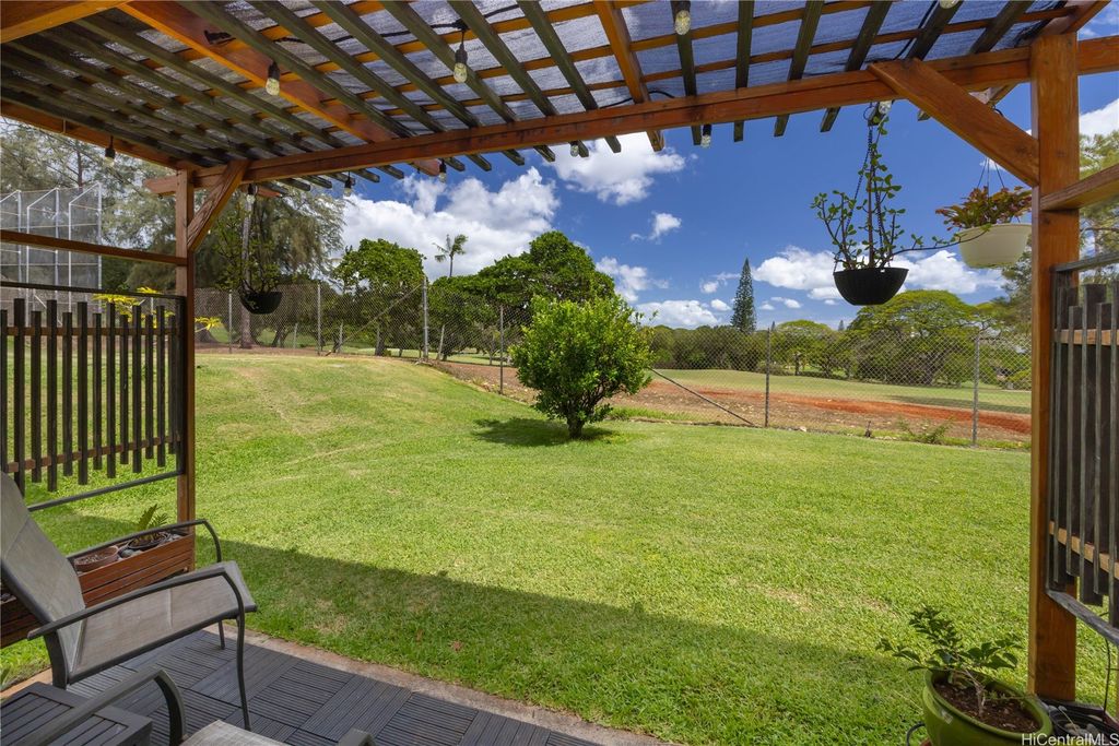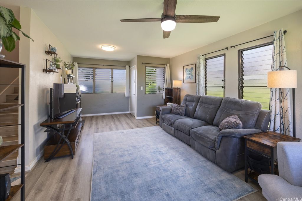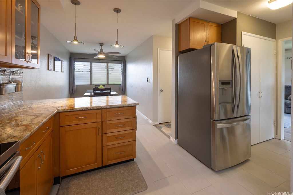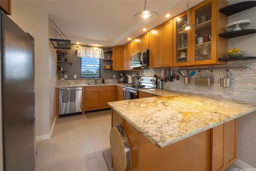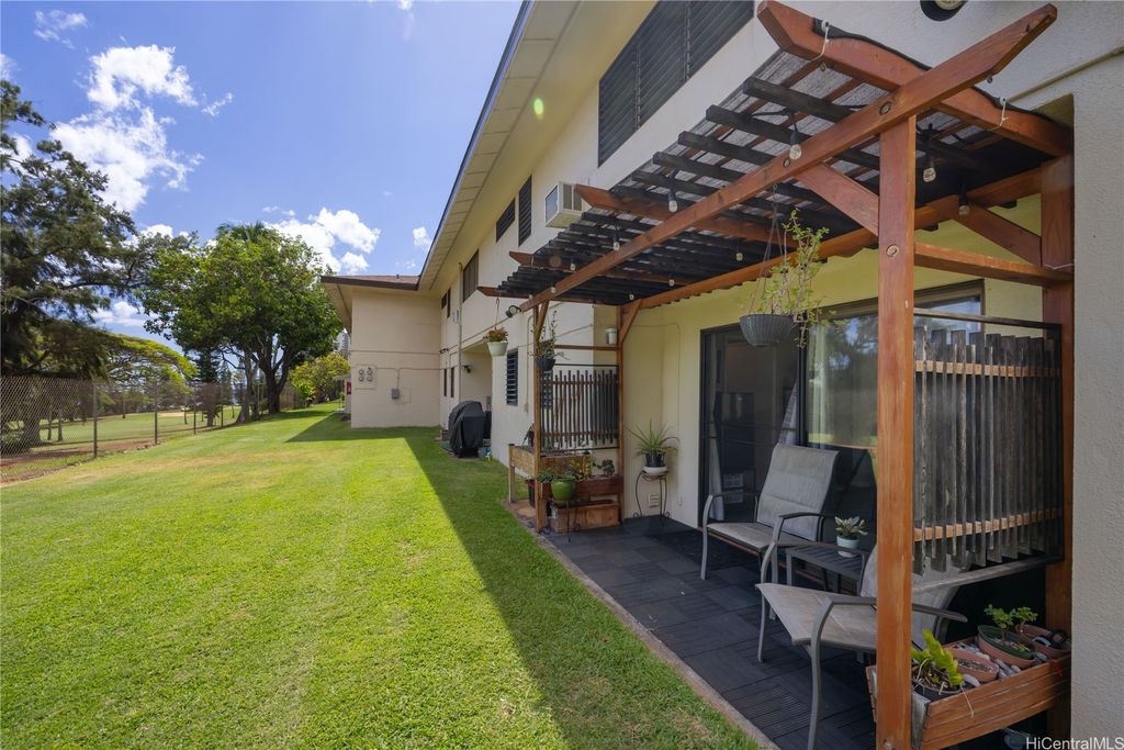 Welcome to Pearlridge! This charming 3-bedroom, 2.5-bathroom townhome spans 1,361 square feet and offers a modern lifestyle with a personable touch. Bordering the golf course, this home enjoys stunning views of lush green fairways, offering a serene and private backdrop. Step inside to discover a spacious layout featuring separate dining and living areas, perfect for entertaining. The well designed kitchen is a chef's delight with granite counters, wooden shaker cabinets and stainless steel appliances. Enjoy the great breeze throughout the home, or turn on the split AC unit for extra cooling on those hot humid days. The primary suite includes a recently remodeled bathroom with beautiful decorative tile and designer touches. This townhouse comes with 2 parking spaces right by the front door. A combination laundry room and half bath provides the ultimate in comfort and convenience while loads of additional storage space makes it easy to keep the home organized and tidy. With all these features, this home is a perfect blend of style and functionality. Conveniently located close to Pearlridge Center, Pali Momi Hospital, Pearl Harbor, Hickam, and the H-1 Freeway.