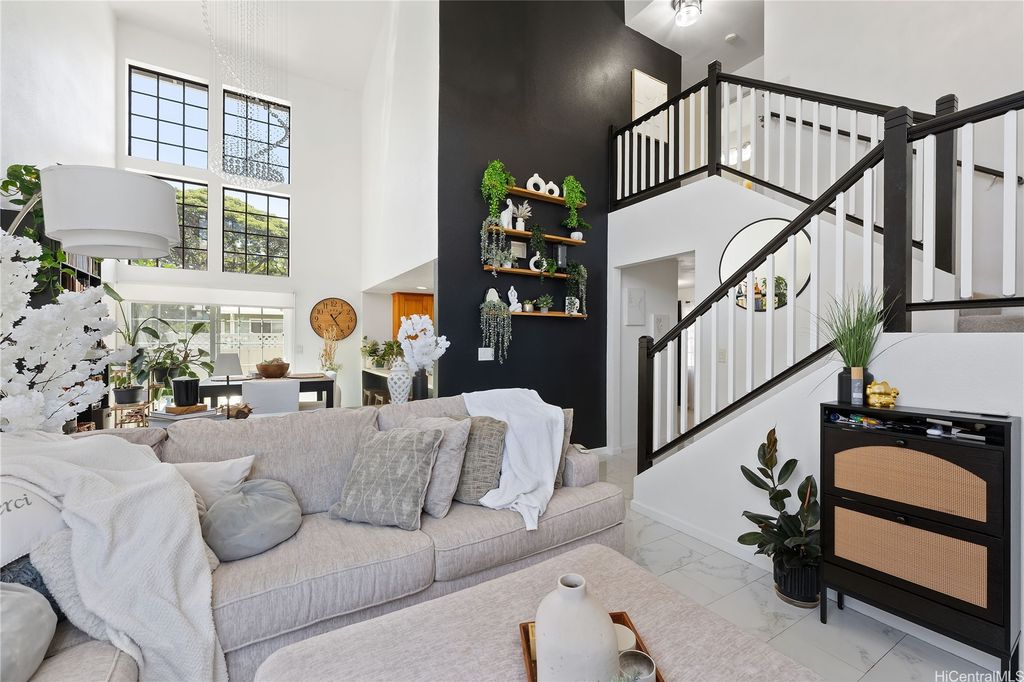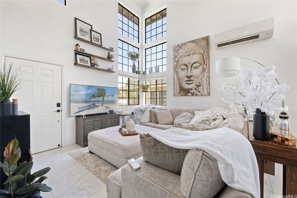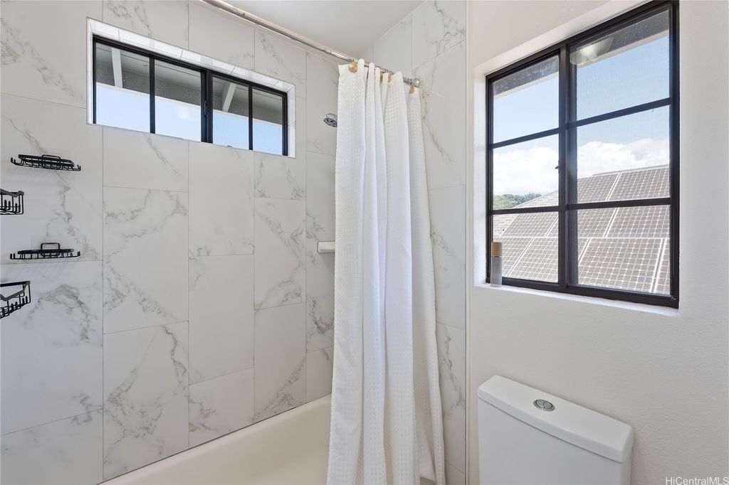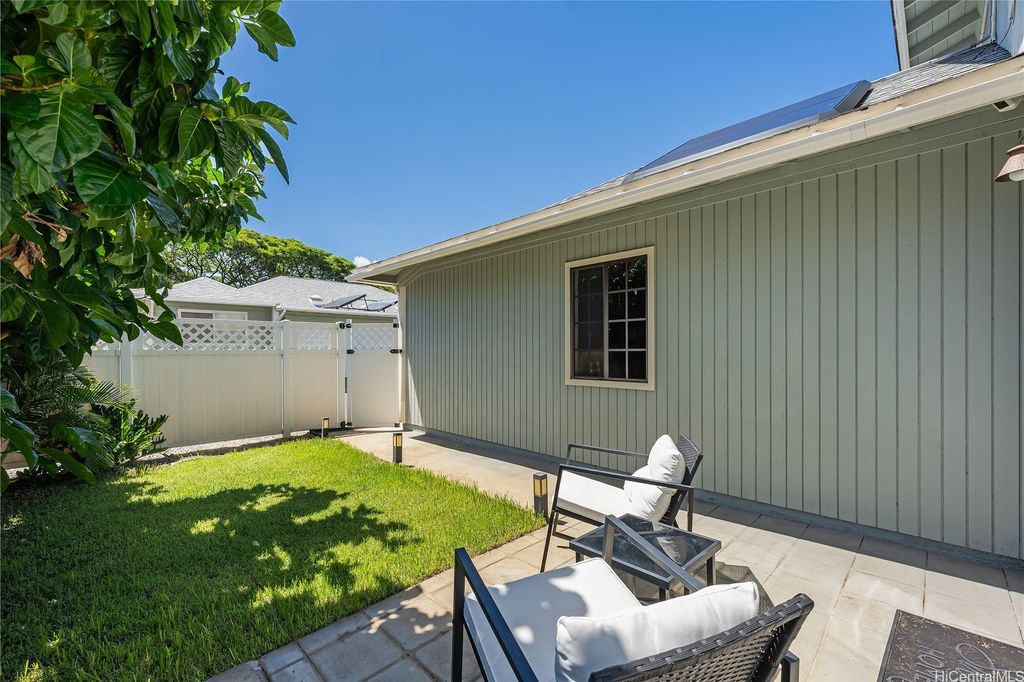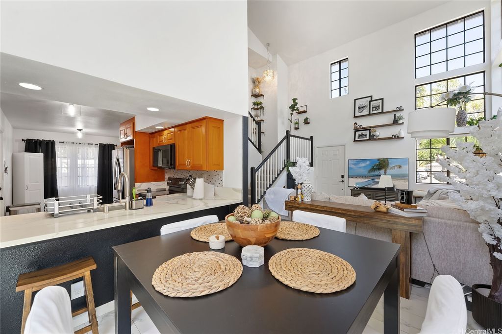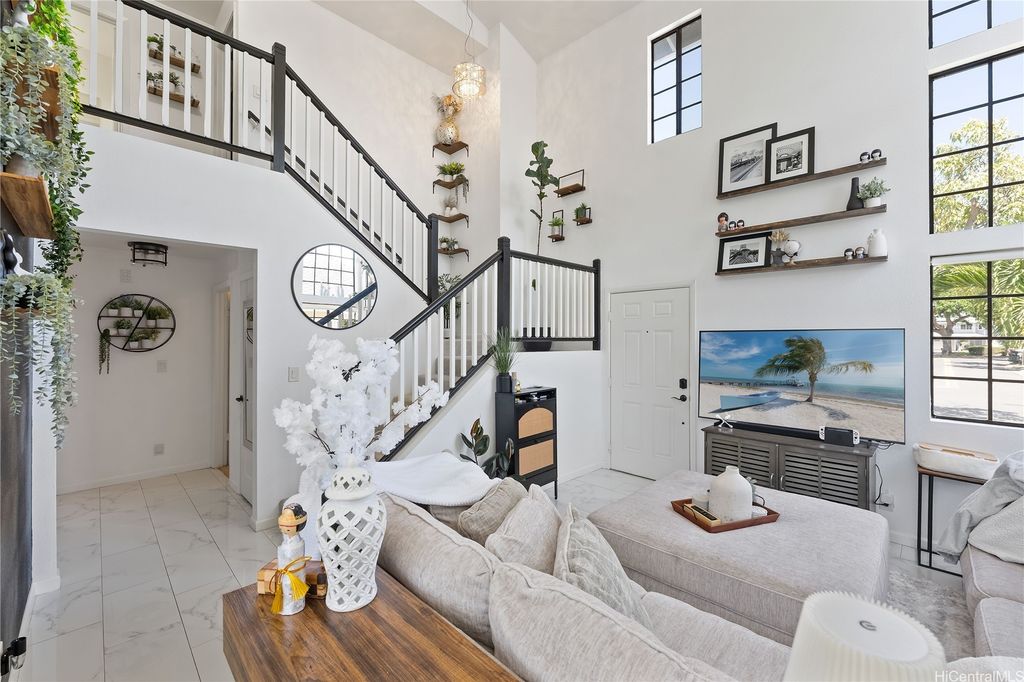 This beautiful single-family home offers 3 generously sized bedrooms, 2 spacious bathrooms, and a range of spectacular features that are sure to impress. As you step inside, you'll be welcomed by soaring ceilings and an abundance of natural light, creating a bright and airy atmosphere. Stylish updates include a new accent wall with floating shelves, adding both character and functionality. The kitchen showcases quartz countertops, stainless steel appliances, and ample space for meal prep and entertaining. On the first floor, you'll find a convenient bedroom and full bathroom. The enclosed yard is a peaceful and private retreat, perfect for unwinding or hosting outdoor gatherings. Plus, with plenty of street parking available, parking will never be an issue for you or your guests. One of the standout features of this home are the 24 photovoltaic panels (8.13kW system), and a battery tesla 13.5 KWH powerwall, which will help lower energy bills while offering an eco-friendly power source. Located just minutes from the freeway on-ramp, shopping, dining, entertainment, and close to some of Hawaii's best beaches.