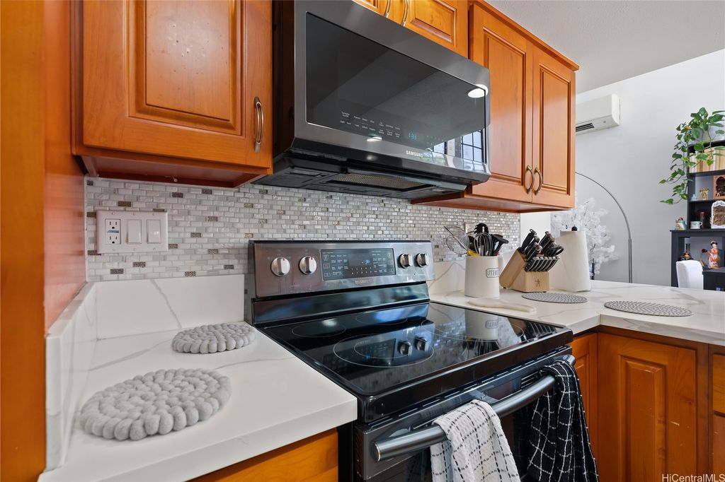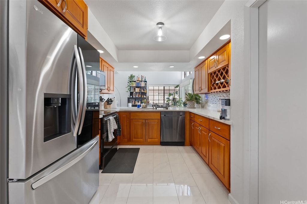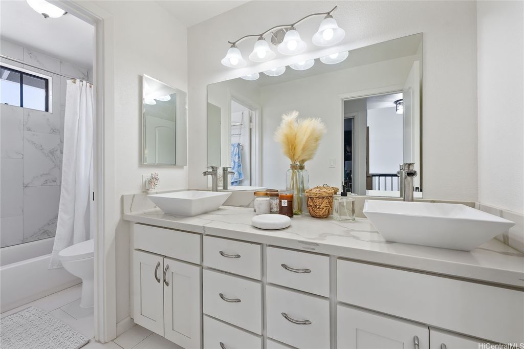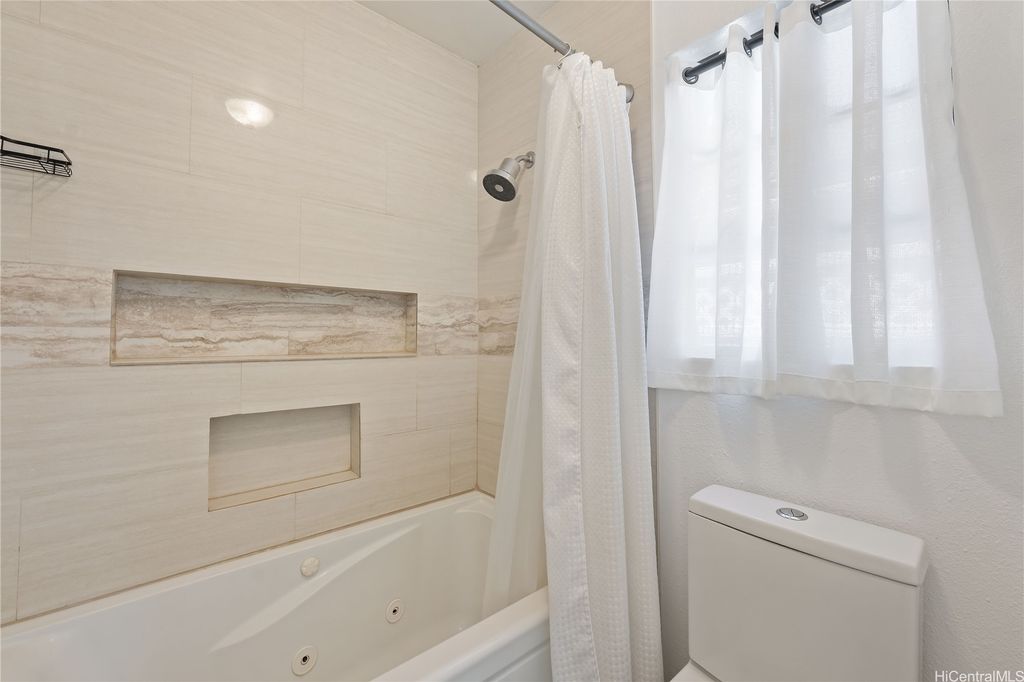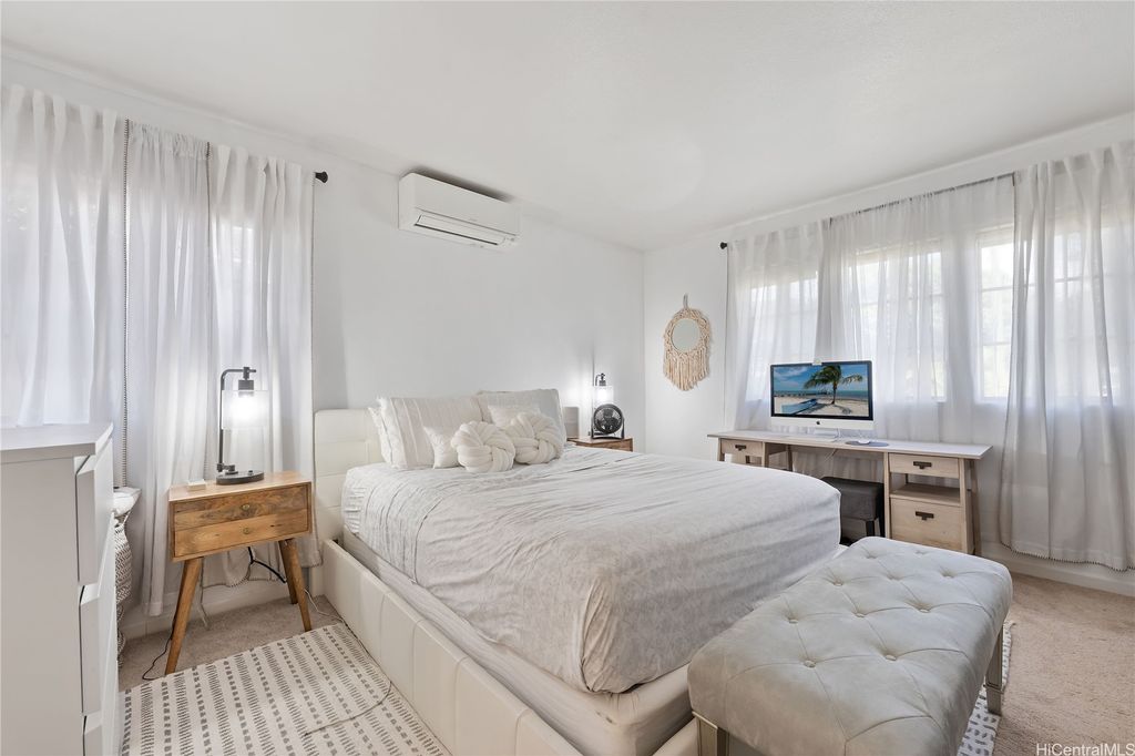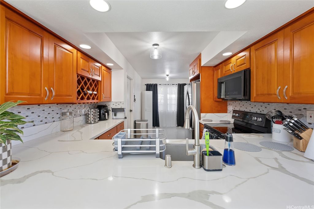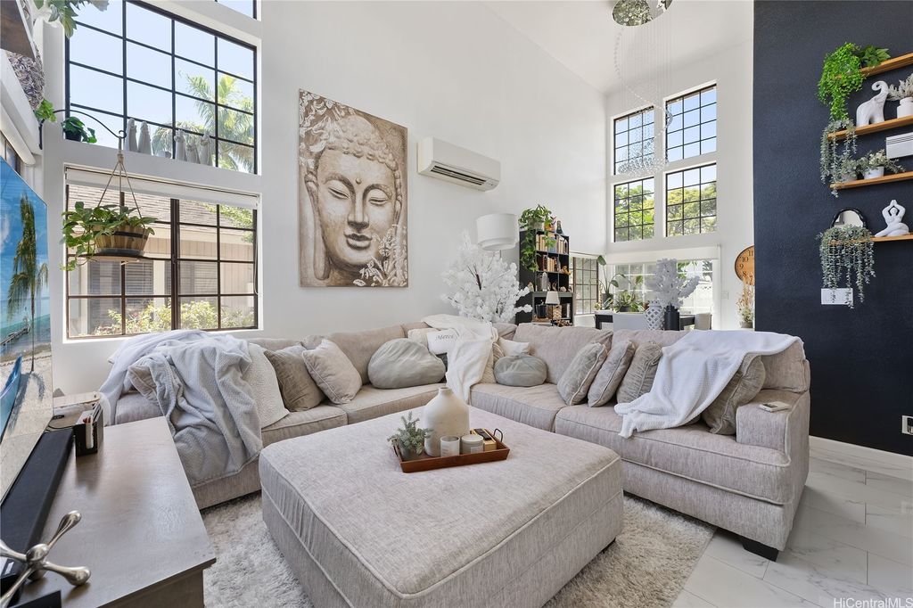 This beautiful single-family home offers 3 generously sized bedrooms, 2 spacious bathrooms, and a range of spectacular features that are sure to impress. As you step inside, you'll be welcomed by soaring ceilings and an abundance of natural light, creating a bright and airy atmosphere. Stylish updates include a new accent wall with floating shelves, adding both character and functionality. The kitchen showcases quartz countertops, stainless steel appliances, and ample space for meal prep and entertaining. On the first floor, you'll find a convenient bedroom and full bathroom. The enclosed yard is a peaceful and private retreat, perfect for unwinding or hosting outdoor gatherings. Plus, with plenty of street parking available, parking will never be an issue for you or your guests. One of the standout features of this home are the 24 photovoltaic panels (8.13kW system), and a battery tesla 13.5 KWH powerwall, which will help lower energy bills while offering an eco-friendly power source. Located just minutes from the freeway on-ramp, shopping, dining, entertainment, and close to some of Hawaii's best beaches.