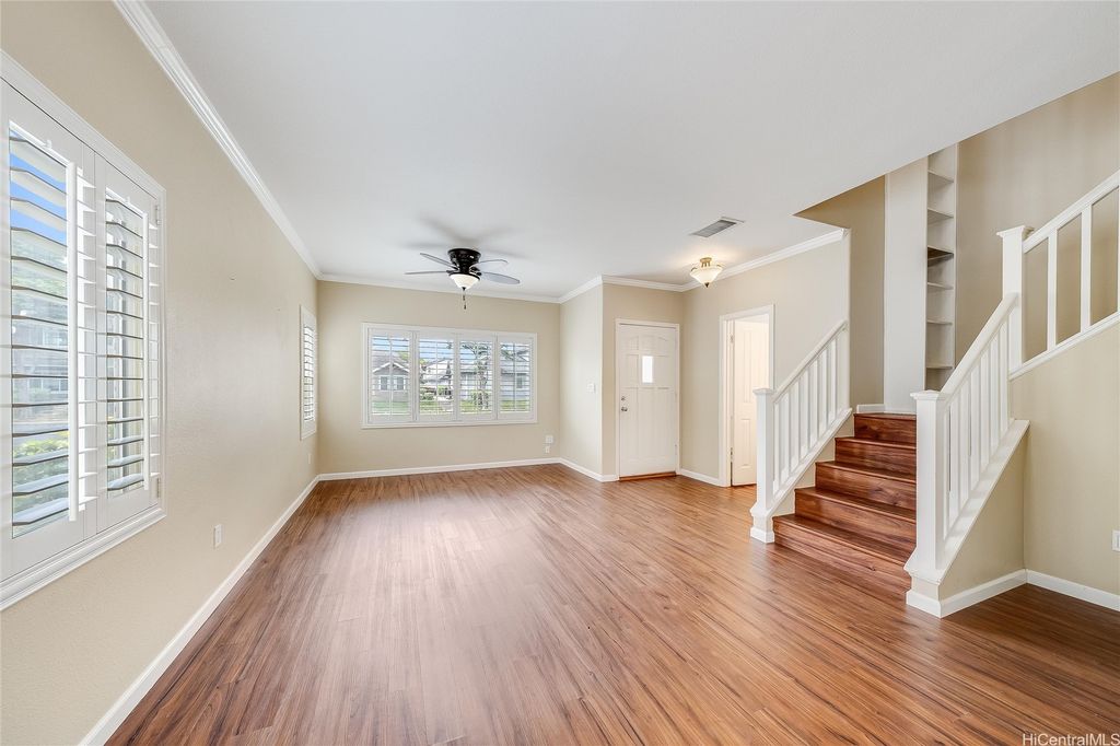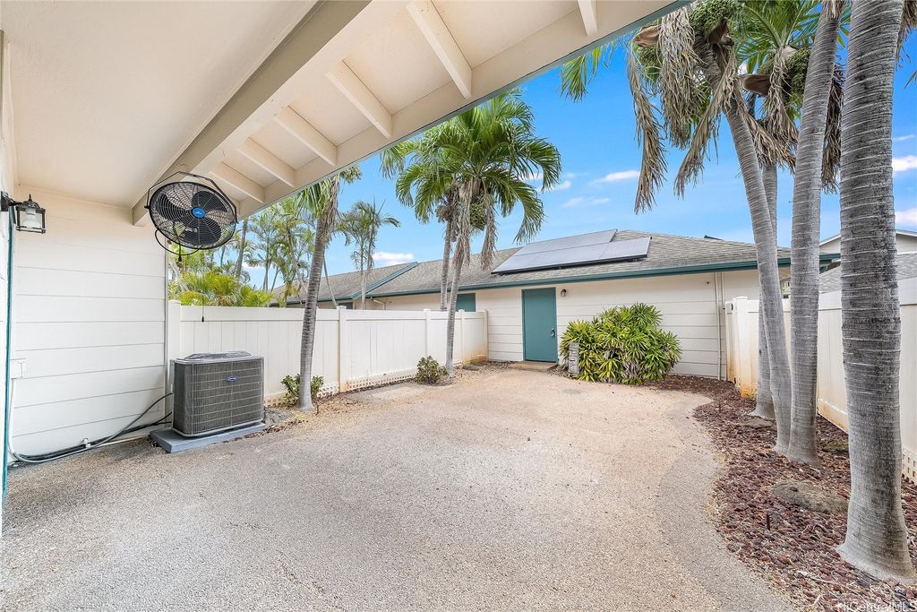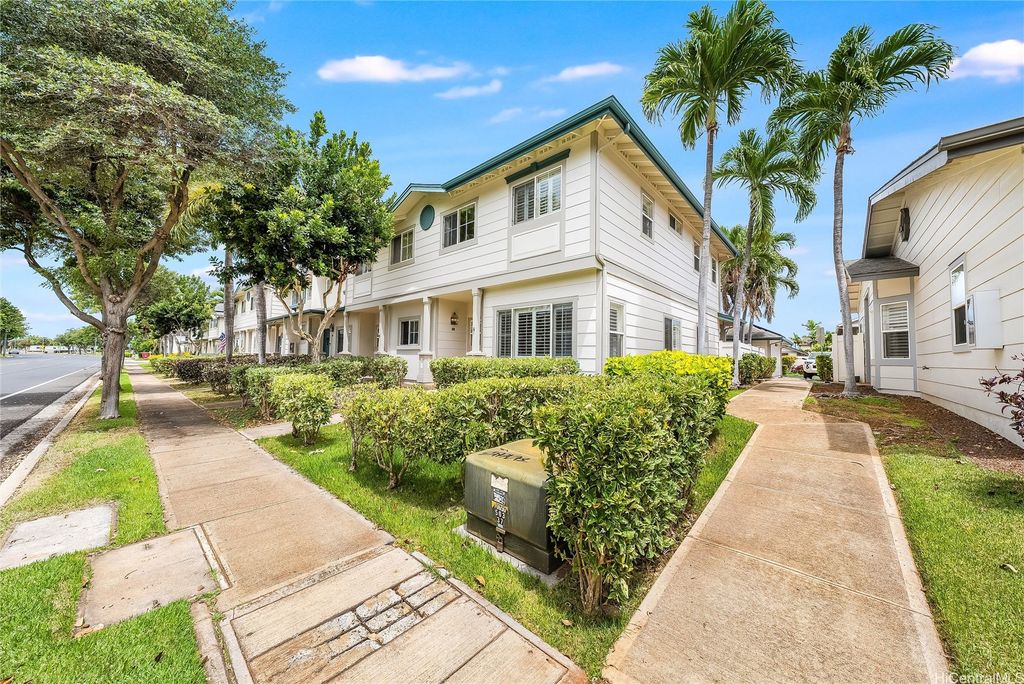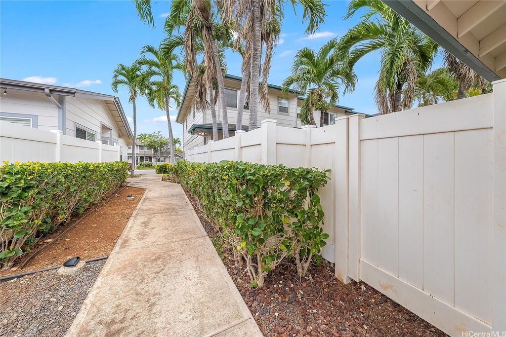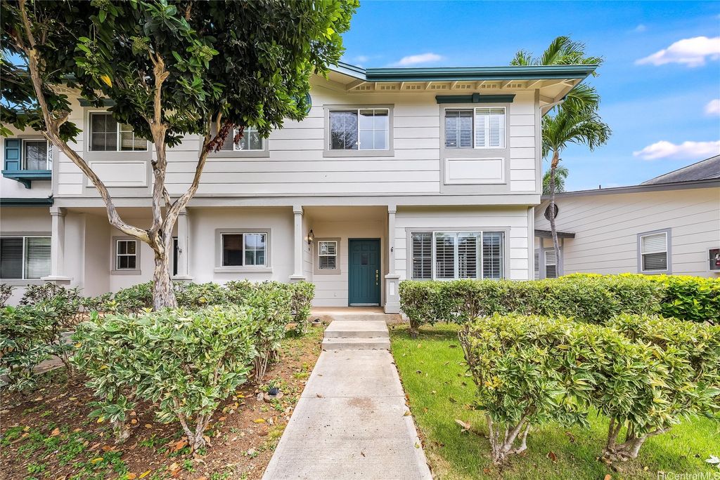 A desirable Ocean Pointe/Ke Aina Kai community of Ewa Beach! This charming 3-bedroom, 2.5-bath townhouse offers comfort, convenience, and energy efficiency with solar power, hardwood flooring, and a brand-new hot water heater and central AC unit. The open floor plan includes a bright living area, updated kitchen with stainless steel appliances, and a dining space that flows seamlessly for gatherings. Upstairs, you'll find spacious bedrooms with ample natural light. The fenced yard and private courtyard provide the perfect outdoor retreat, while the detached 2-car garage offers both parking and storage