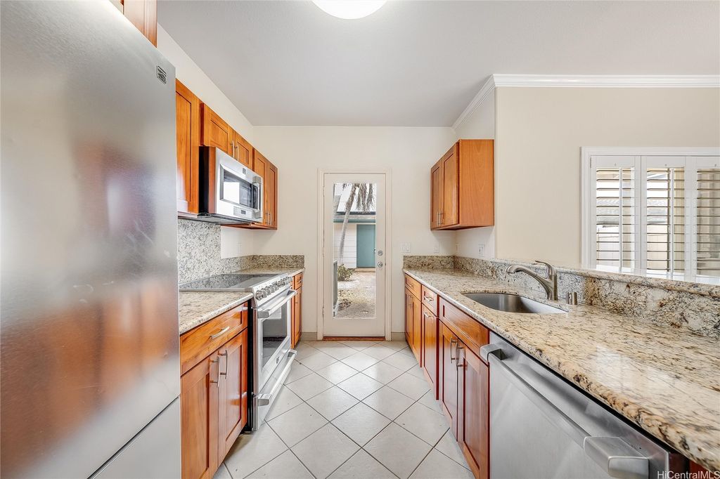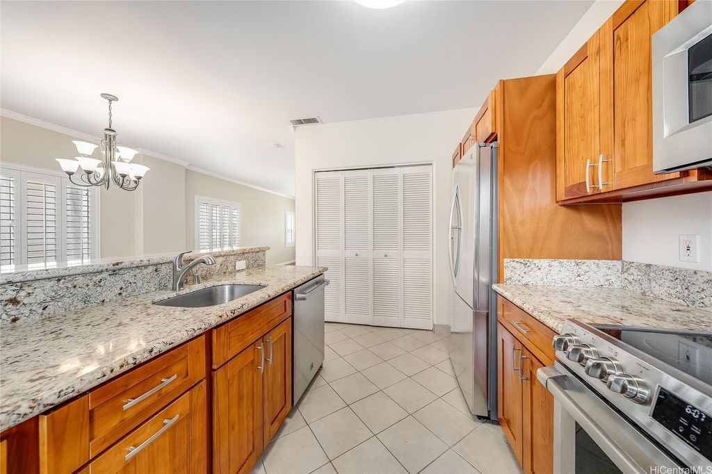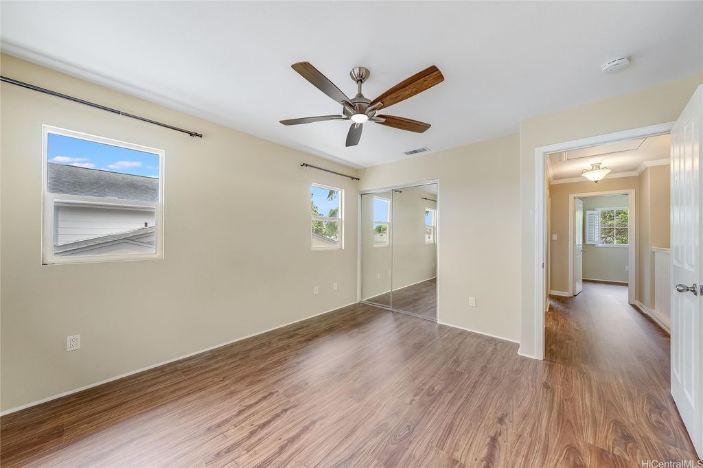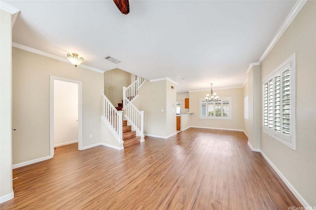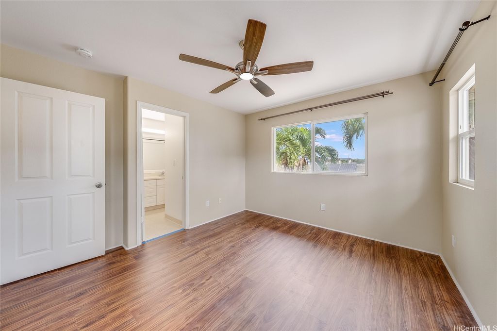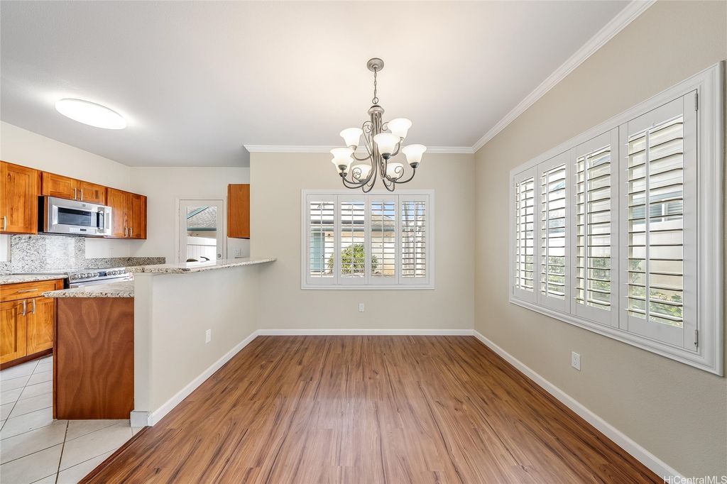 A desirable Ocean Pointe/Ke Aina Kai community of Ewa Beach! This charming 3-bedroom, 2.5-bath townhouse offers comfort, convenience, and energy efficiency with solar power, hardwood flooring, and a brand-new hot water heater and central AC unit. The open floor plan includes a bright living area, updated kitchen with stainless steel appliances, and a dining space that flows seamlessly for gatherings. Upstairs, you'll find spacious bedrooms with ample natural light. The fenced yard and private courtyard provide the perfect outdoor retreat, while the detached 2-car garage offers both parking and storage