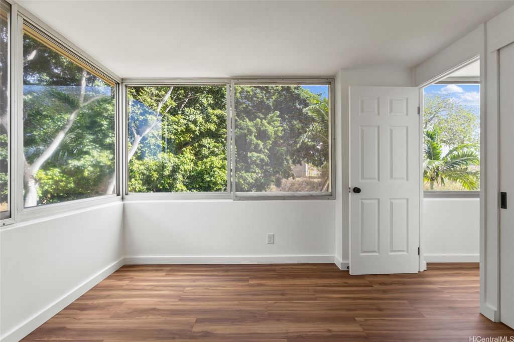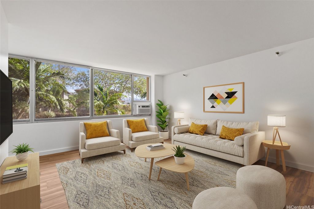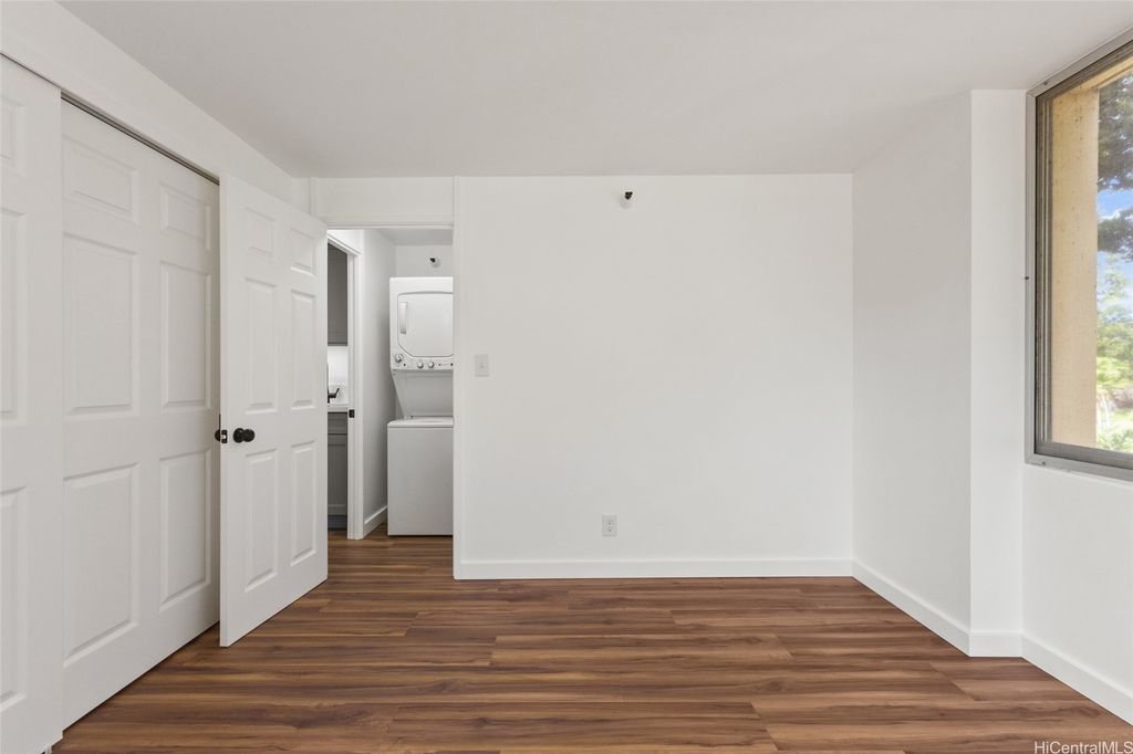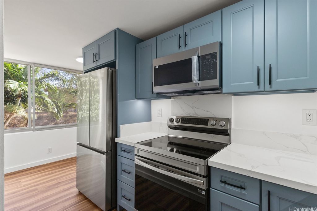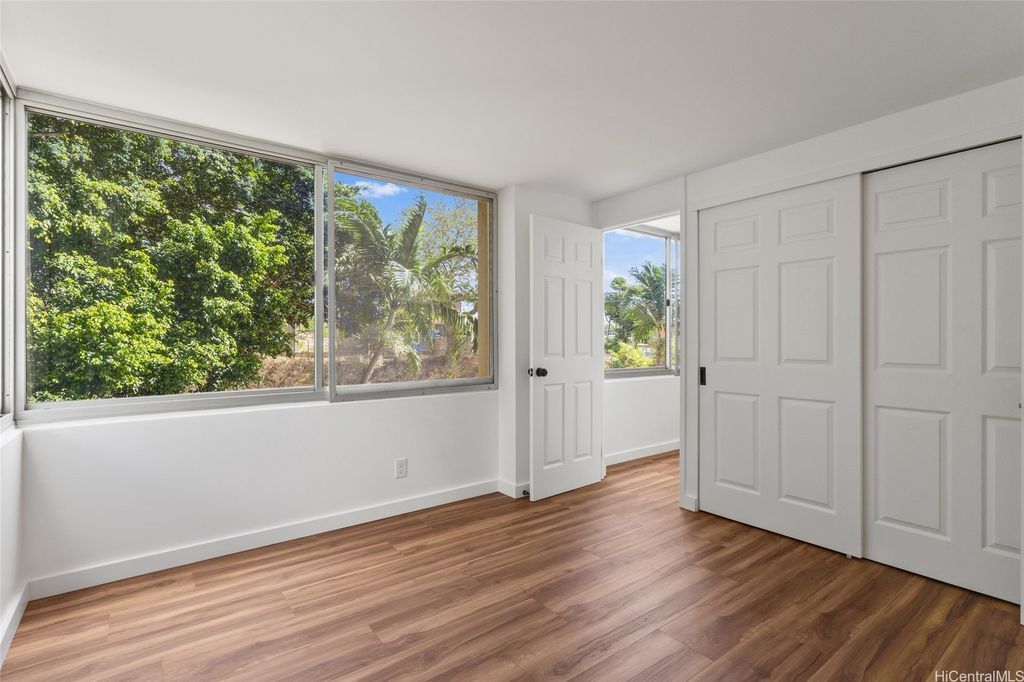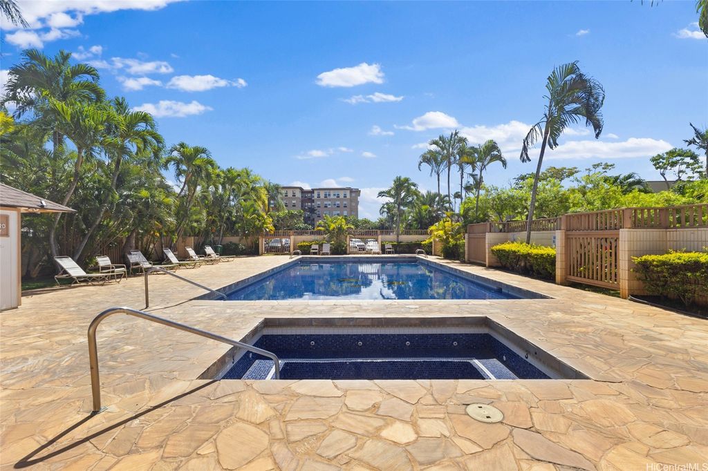 Welcome to this beautifully renovated corner unit in Century Park Plaza! Garden and city views make the space feel bright and airy while providing privacy. New wall and ceiling paint, window AC unit, hybrid flooring, kitchen cabinets and countertop, microwave, oven, stovetop, stack washer/dryer, doors, and closet make modern living comfortable. Amenities include: BBQ area, pool, jacuzzi, picnic area, playground, tennis court, and basketball court. Short commute to Pearl Highlands Center, movie theater, 24-hr Fitness, shopping, Walmart, Foodland, Sam's Club, Home Depot, Waiawa Skyline Rail Station, and Post Office. Unit includes 1 assigned covered parking stall, and there are 12 guest stalls. Century Park Plaza is a gated community with 24-hr security. First Open House is Sunday 9/14 from 2-5pm.