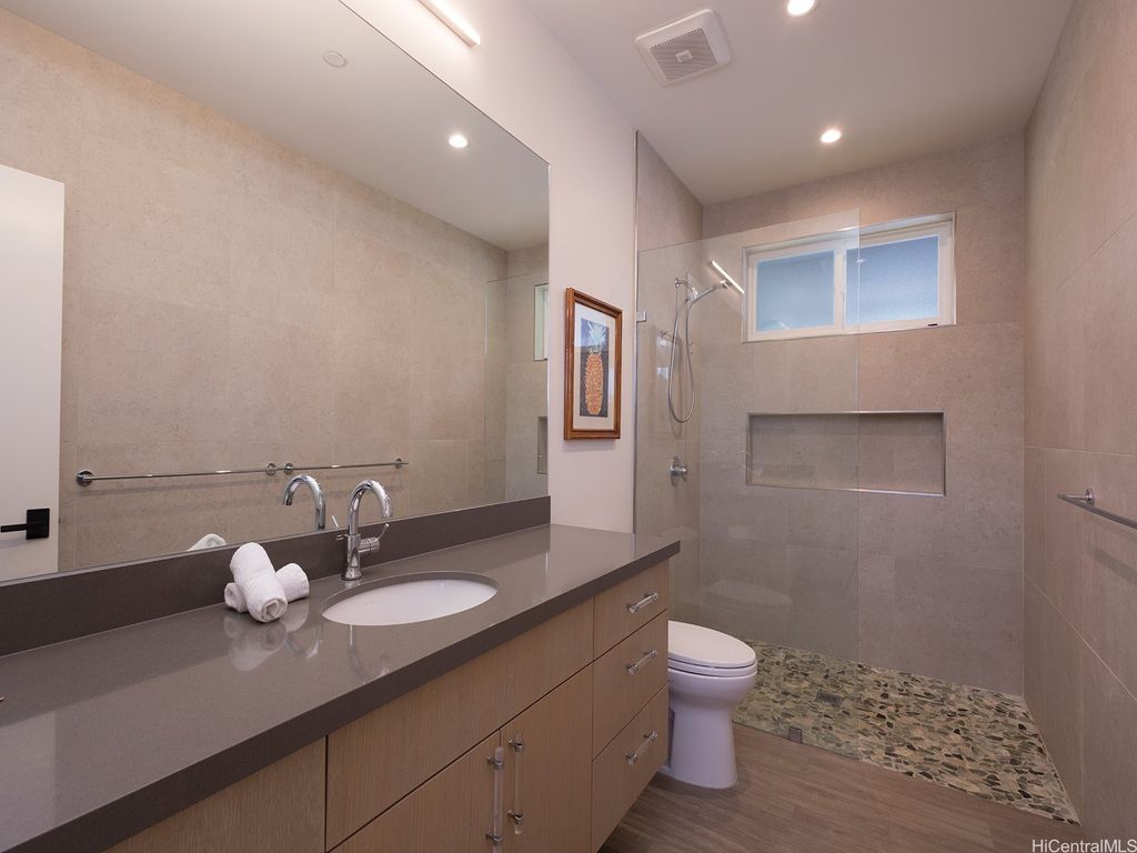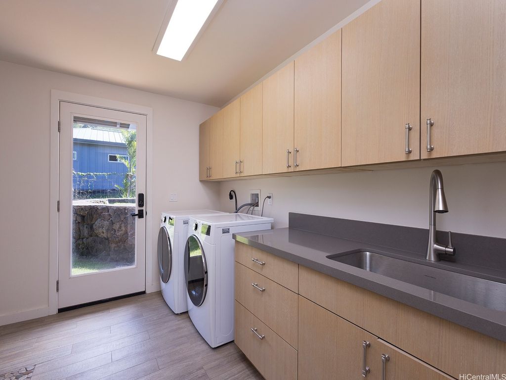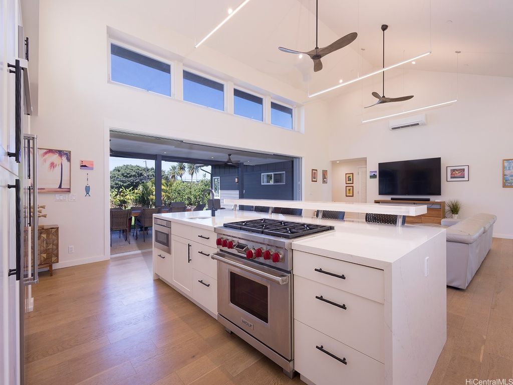 Welcome to Hale Laule'a. This custom-built North Shore Estate was designed by local architect Geoffrey Lewis and completed in 2021. This stunning ranch-style home is thoughtfully designed for island living. Features include vaulted ceilings, large windows, and an abundance of natural light that seamlessly connect the interior to the natural elements of the North Shore. The home offers open-air living with a covered lanai and expansive retractable glass and screen doors. Each of the three bedrooms is an en-suite, equipped with its own full bath. The home offers a versatile office or den off the main entry, ideally suited for a home office, guest room, or playroom, complete with an adjacent full bath for added convenience. The half bath is located off the main living area, ideal for guests and entertaining. Situated on over an acre of country-zoned land, this property includes mature tropical fruit trees and the ideal footprint for horse pasture and custom pool. A large rock wall lines Kamehameha Highway, automatic gate, and a turn-in point. The beach access is less than 500 feet from the driveway, offering you easy access to the world-famous beaches and surf of the North Shore.
