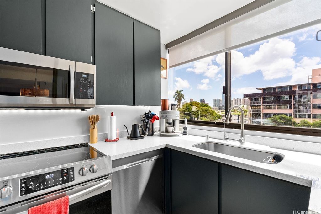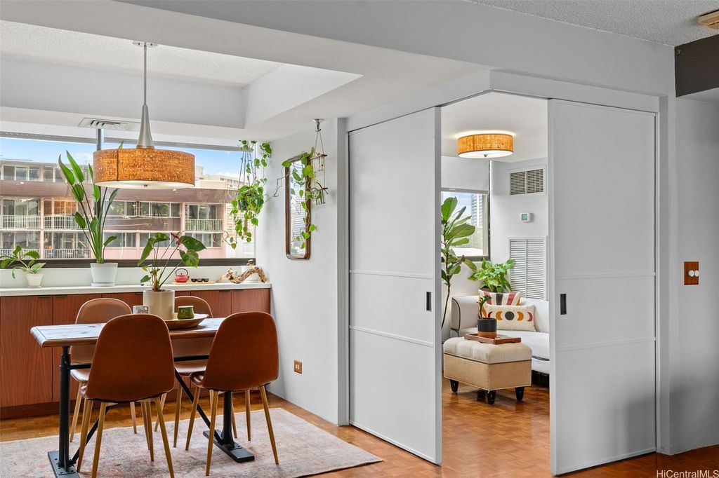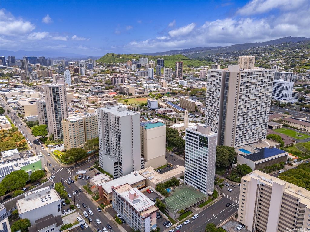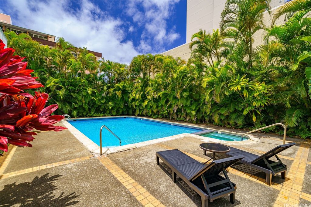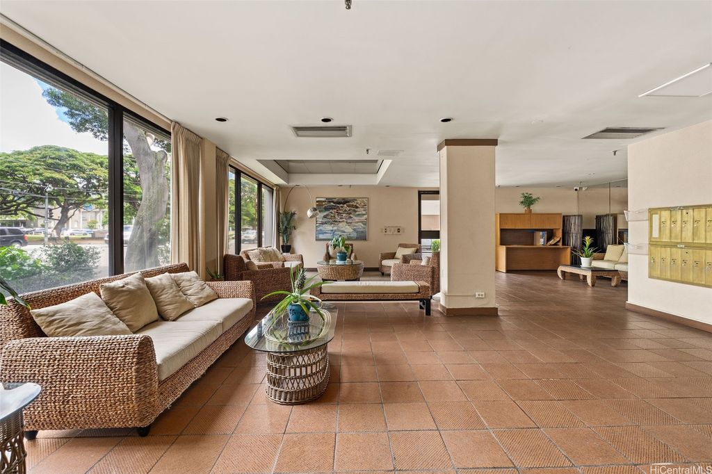 VA Assumable @2.75%! Experience the pinnacle of sophisticated living in the boutique building Punahou Regency. This stylish & spacious condo, with wood parquet floors and a mid-century vibe, features 3 bedrooms & 2 full bathrooms over 1,032 square feet. The kitchen is modern with newer stainless steel appliances. Floor-to-ceiling windows offer incredible views of banyan trees, unlike any other, while inviting an abundance of natural light. The primary bedroom features motorized black-out blinds to help ensure a good night's rest. With only two units per floor, you not only have privacy, but also, wrap-around views of the city. This is a sprinklered 1980 building with central air conditioning for a comfortable environment, while keyed entry & elevator add an extra touch of convenience and security. Residents can relish in amenities such as a refreshing pool, spa, invigorating tennis court, & secure, 1-car garage parking. This PET-friendly building offers an amazing location and an unparalleled lifestyle in the heart of Honolulu. Near public and private schools, shopping malls, medical and convenient to the freeway, this residence offers an opportunity for exceptional city living.