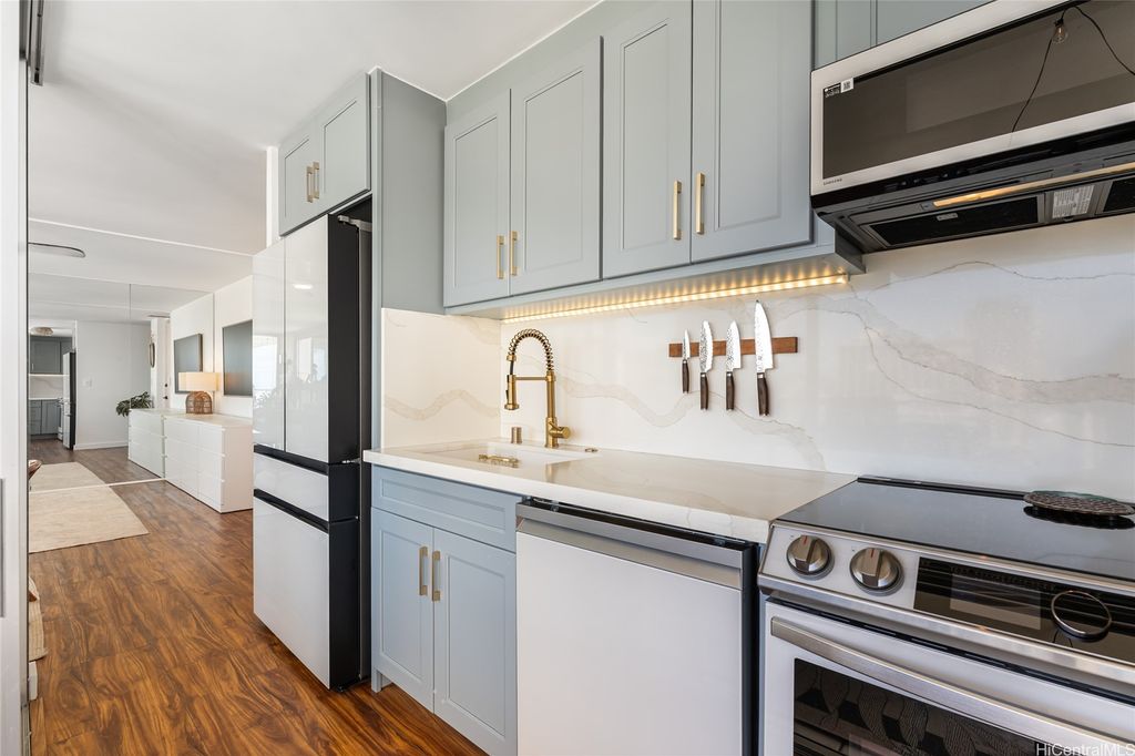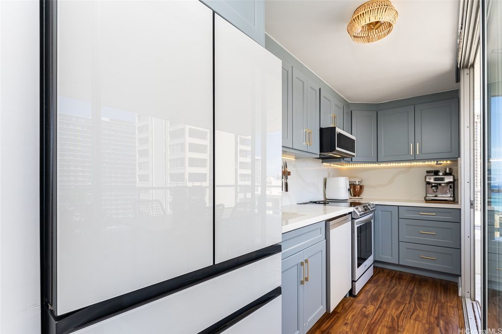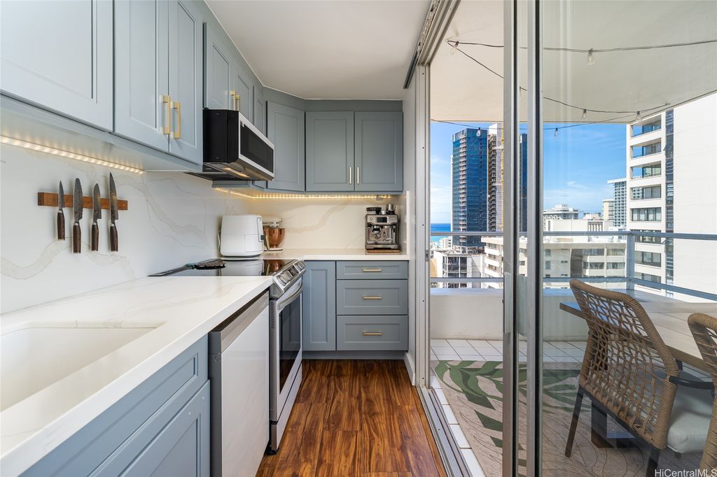 This beautifully remodeled corner unit offers the perfect blend of comfort, style, and breathtaking natural beauty. With a spacious 1-bedroom, 1-bathroom layout, this home is ideal for those seeking both tranquility and convenience. Enjoy the sweeping ocean views from your private lanai, where you can relax and take in the stunning scenery. The modern finishes throughout the unit enhance its bright, airy feel, with large windows that invite natural light to flood the space. The open-plan living area seamlessly connects to the lanai, creating an inviting space for both relaxation and entertainment. Perfectly located to enjoy both privacy and convenience, this corner unit provides extra windows for added light and panoramic views. The remodeled kitchen and bath feature stylish, high-quality finishes, providing a contemporary yet cozy retreat. Don't miss the opportunity to own this gem with one of the most enviable views in the area!