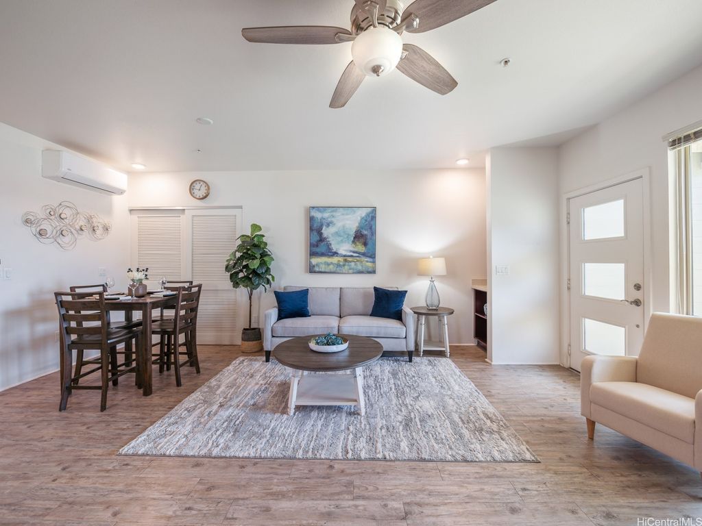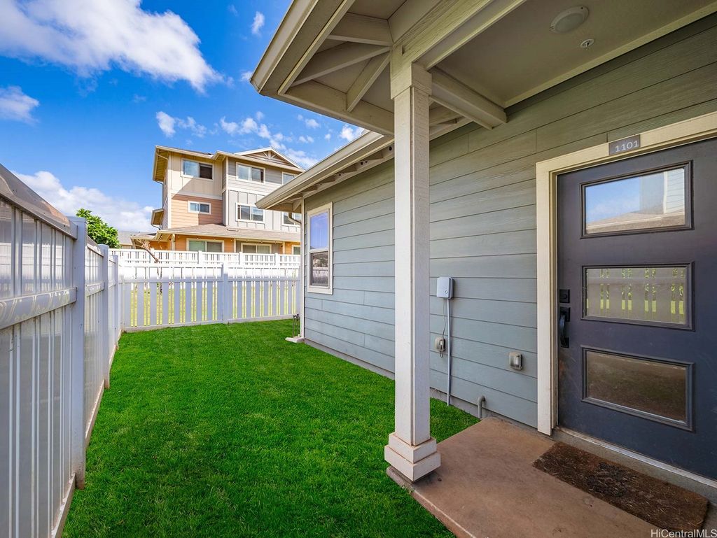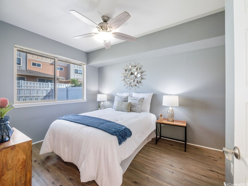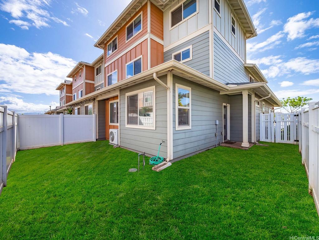 VA ASSUMABLE LOAN, 3% rate and small gap! Welcome to this charming 2-bedroom, 2-bath single level townhome, nestled in a vibrant community offering a perfect blend of comfort and convenience. The open floor plan seamlessly connect the living room, dining and kitchen area providing an ideal layout for both relaxation and entertaining. The well appointed kitchen features modern appliances, plenty of counter space and ample storage making meal preparation a breeze. Retreat to the spacious primary bedroom complete with a private en-suite bathroom and walk-in closet for added convenient and privacy. The second bedroom offers flexibility for guests, a home office or whatever suits your lifestyle needs. Outside you will find your own private fenced in yard a perfect place for your furry friend or fun kids play space. All this just minutes away from all conveniences such as the rail, UH West campus, Ka Makana Ali'i mall, stores, restaurants, beach and so much more. Come see it today!