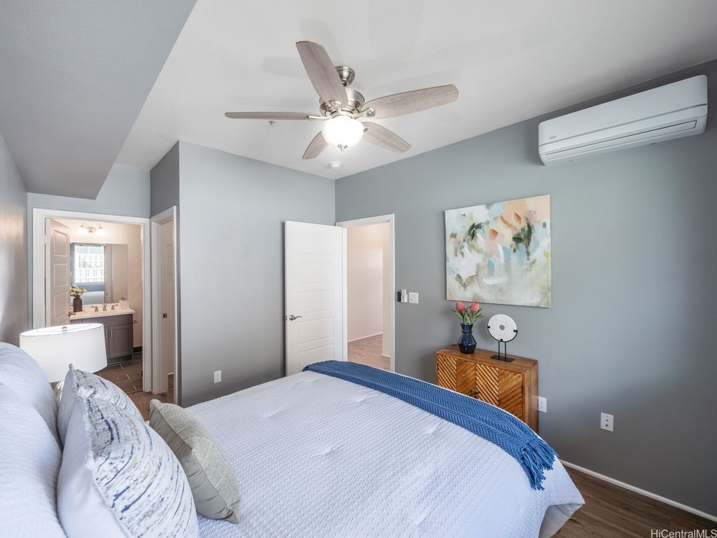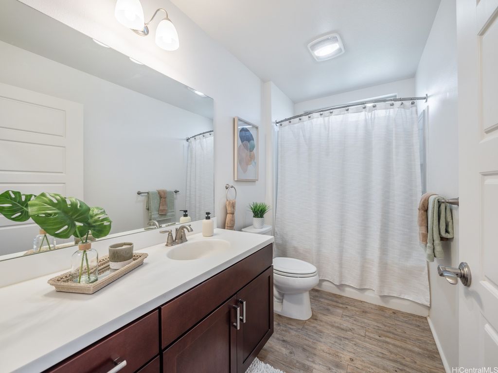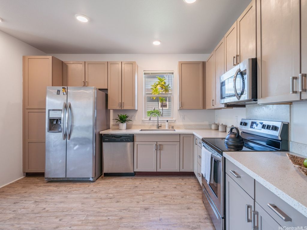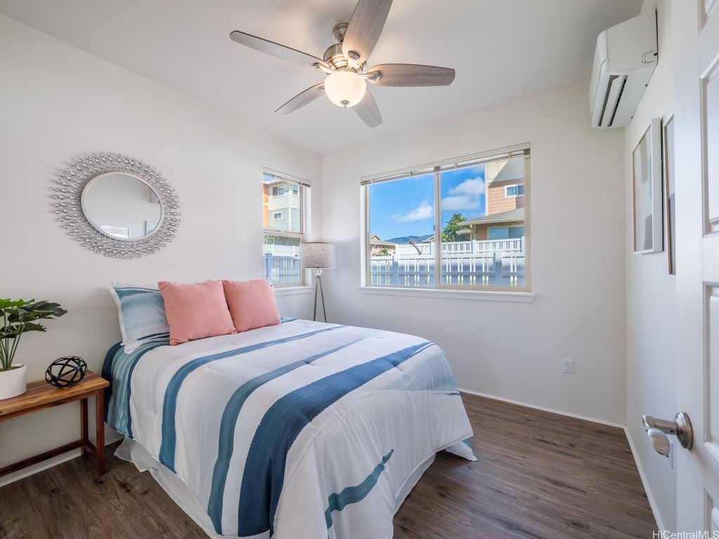 VA ASSUMABLE LOAN, 3% rate and small gap! Welcome to this charming 2-bedroom, 2-bath single level townhome, nestled in a vibrant community offering a perfect blend of comfort and convenience. The open floor plan seamlessly connect the living room, dining and kitchen area providing an ideal layout for both relaxation and entertaining. The well appointed kitchen features modern appliances, plenty of counter space and ample storage making meal preparation a breeze. Retreat to the spacious primary bedroom complete with a private en-suite bathroom and walk-in closet for added convenient and privacy. The second bedroom offers flexibility for guests, a home office or whatever suits your lifestyle needs. Outside you will find your own private fenced in yard a perfect place for your furry friend or fun kids play space. All this just minutes away from all conveniences such as the rail, UH West campus, Ka Makana Ali'i mall, stores, restaurants, beach and so much more. Come see it today!