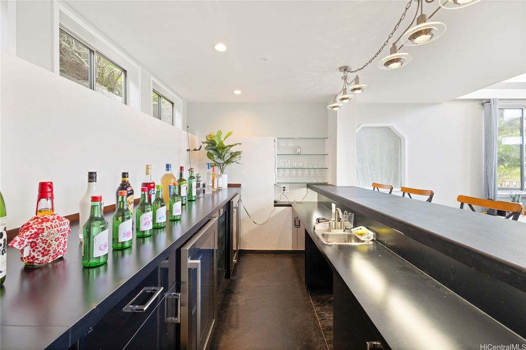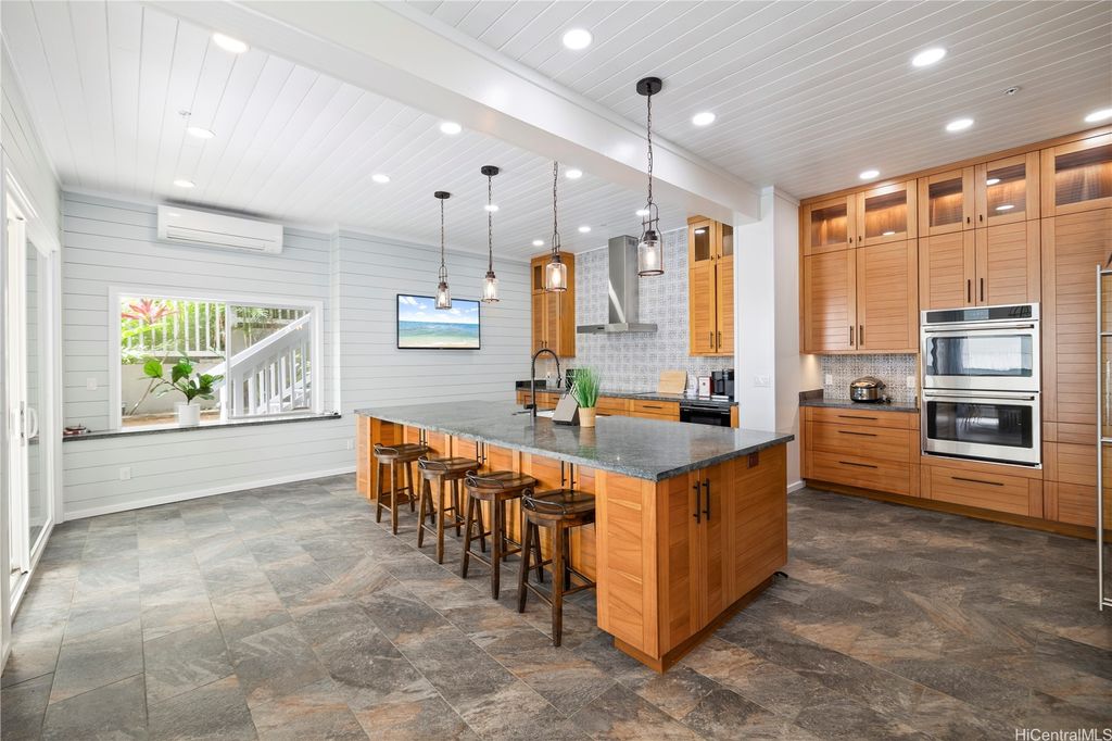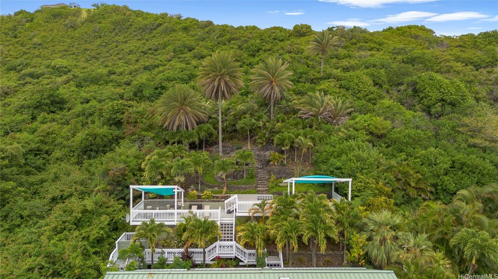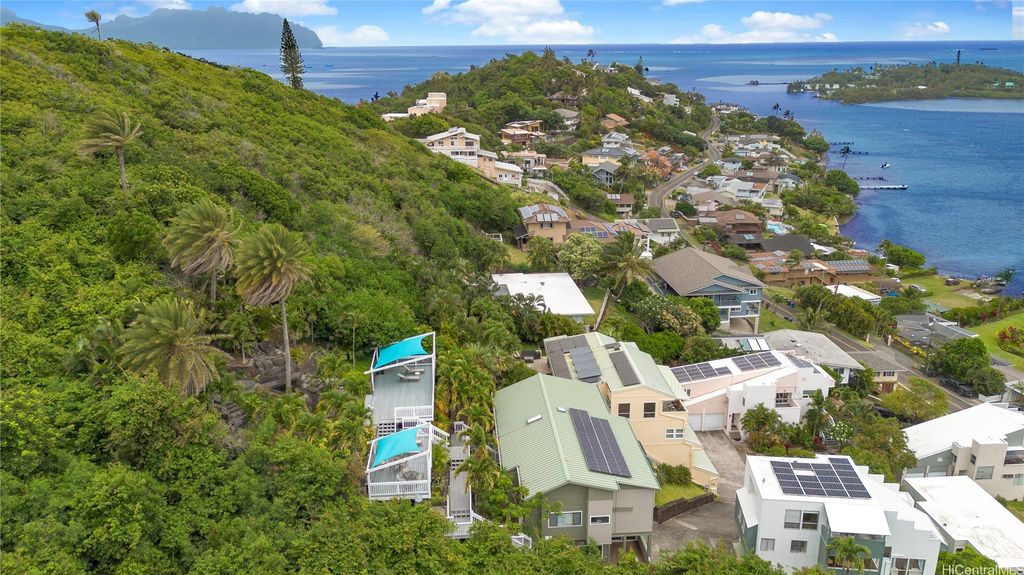 Welcome home - to your hillside retreat on almost half an acre with views and privacy that you will appreciate and enjoy. The spacious floor plan has 3 bedrooms, (including a generous primary bedroom with ocean views, walk in closets, and spacious en suite bath), 2.5 baths plus a very good size home office. There is an oversized living room complete with a bar and multiple lanai spaces which are ideal for entertaining. The back yard is an oasis with lava rocks terracing, waterfalls, and over 1,500 sq. ft. of deck space to complete a tropical island lifestyle. This home is just minutes from dining, entertainment, and quick access to H3 / Likelike / Pali hwys. PC system with battery backup is owned.