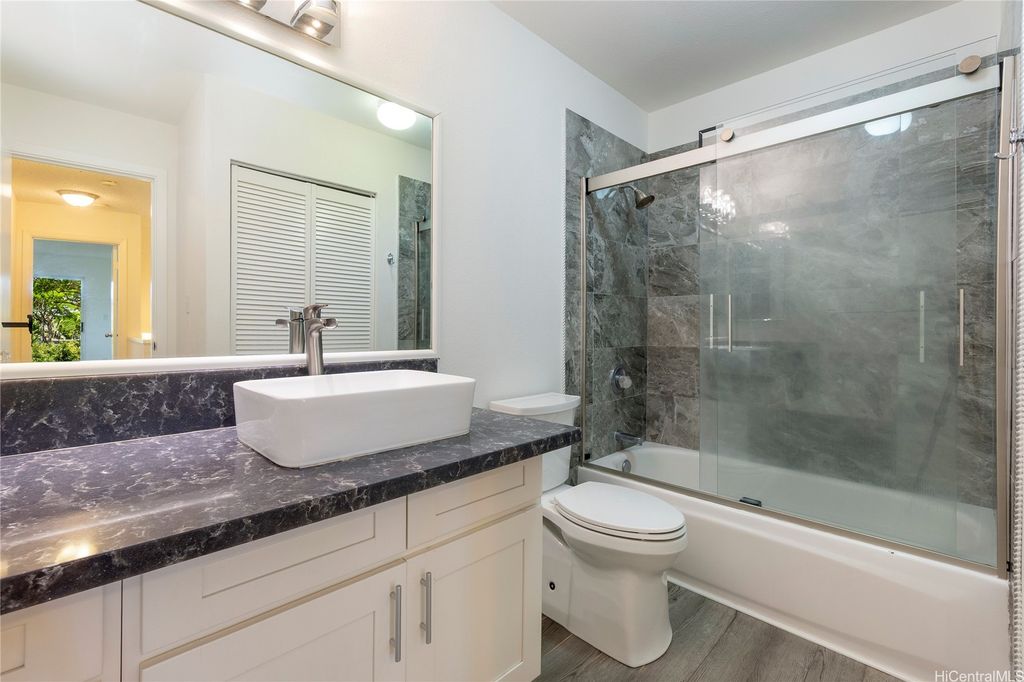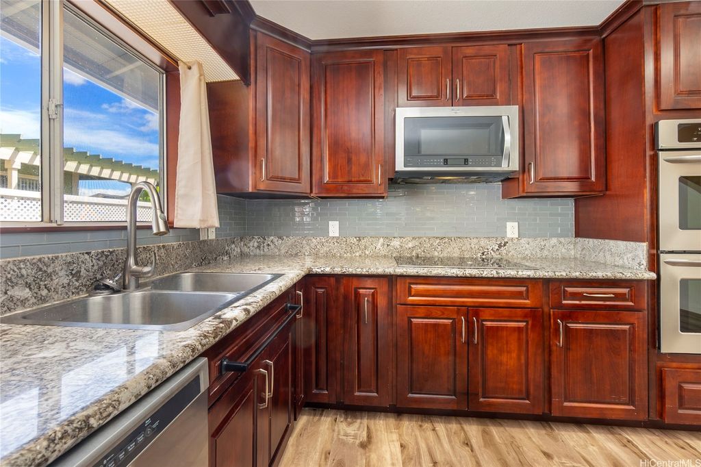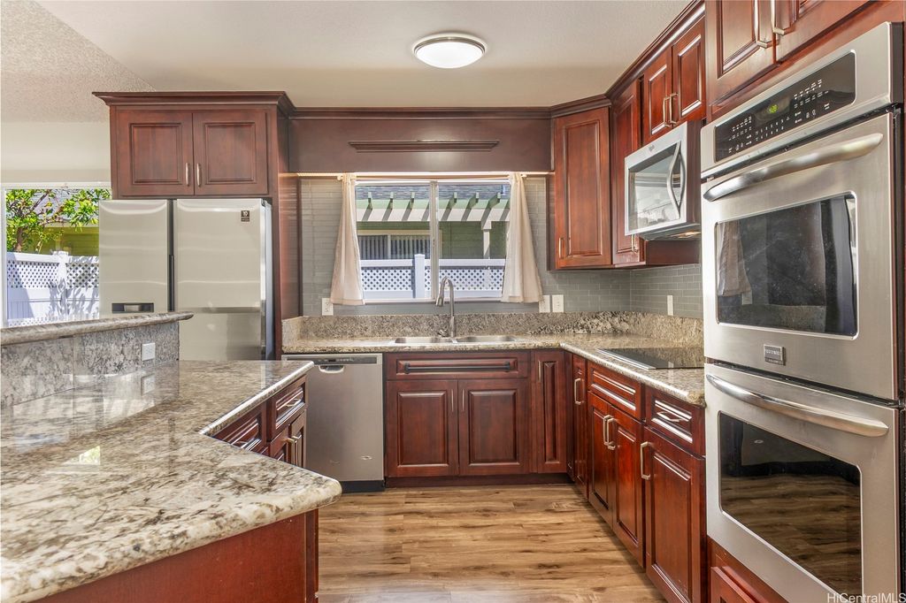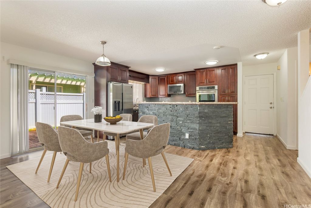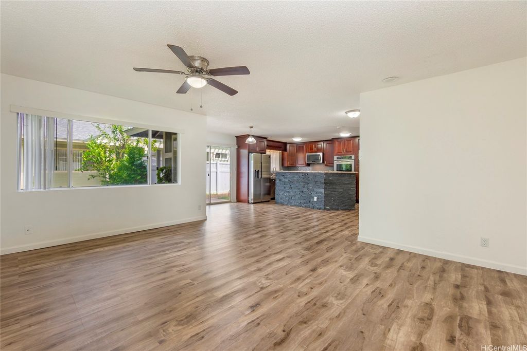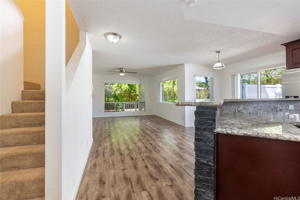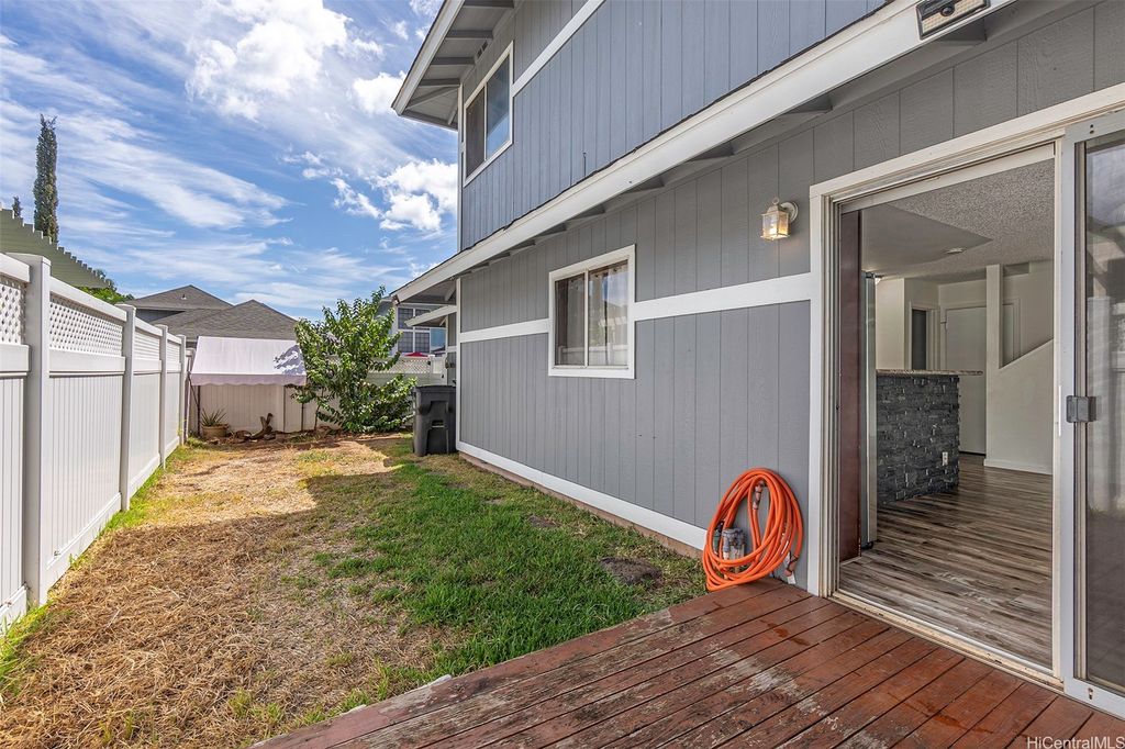 The home you've been waiting for! Beautifully maintained 3-bedroom, 2.5-bath attached home in the highly sought-after West Loch Fairways. This home has been thoughtfully upgraded and well cared for throughout. Downstairs, you'll find an updated eat-in kitchen with granite countertops and stainless steel appliances that flows seamlessly into the spacious dining and living areas. Step through the sliding doors to your fully fenced yard perfect for pets and outdoor gatherings. Upstairs, you'll find all three bedrooms, including a large primary suite with a walk-in closet, custom closet system, and private lanai. Split A/C units in the living room and primary bedroom help keep the home cool year-round. All bathrooms have been tastefully renovated. Additional highlights include an enclosed 2-car garage with ample storage. Conveniently located near freeway access, shopping, dining, entertainment, and beaches in both Ewa and Kapolei. Put this one on your must-see list! One or more photos have been enhanced.