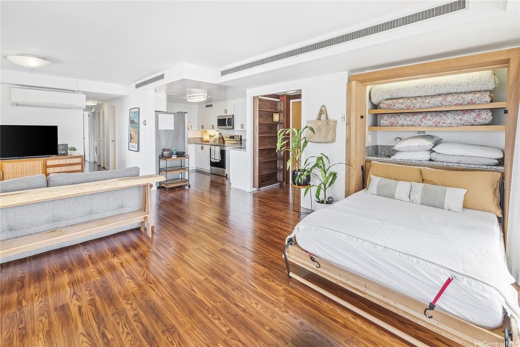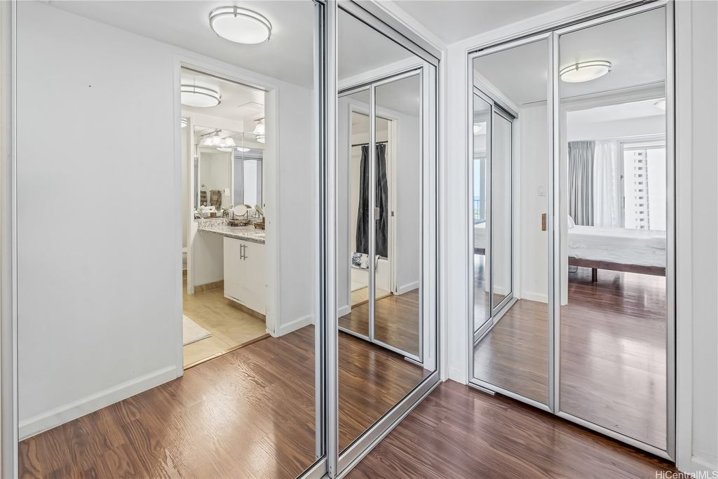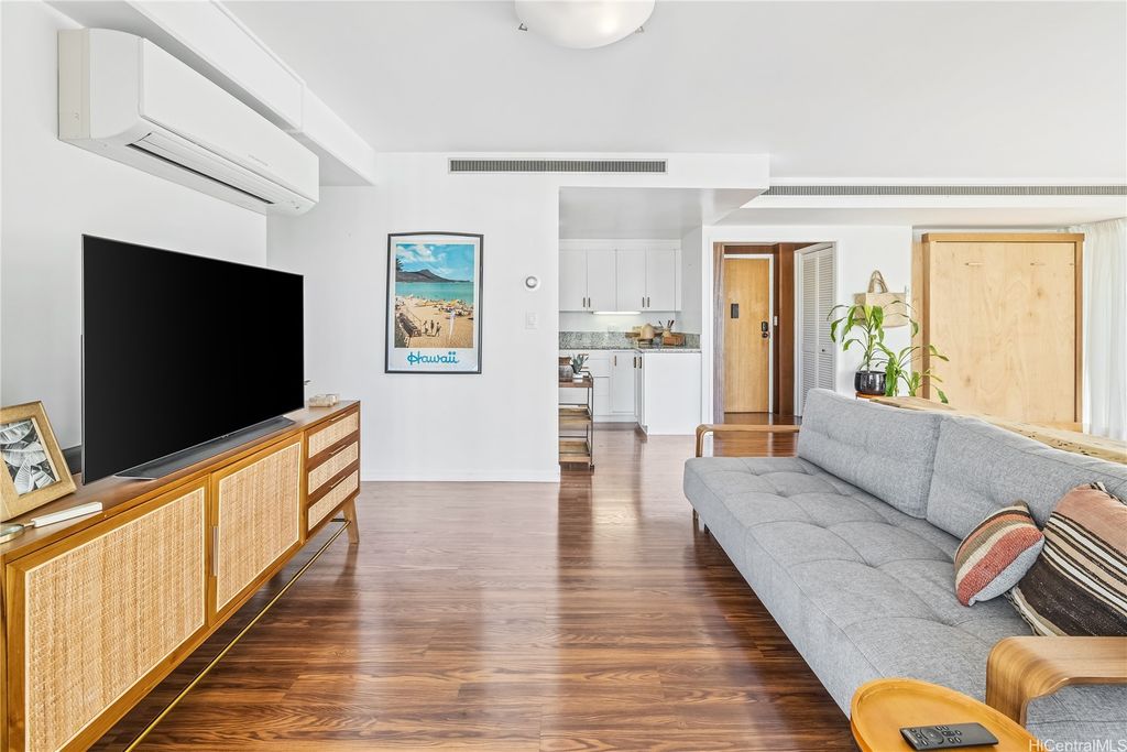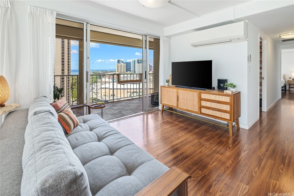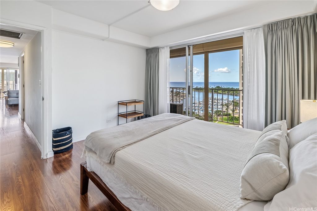 Sunset Towers #PH-2004 is rare find! Ideally located between Ala Moana and Waikiki, it's orientation is optimal for expereincing vibrant, surreal sunsets to inspire your soul! Offering a cosmopolitan lifestyle and stunning views from mountain to sea. This mid-century modern corner unit at the top of the buidling, features a generous wrap-around lanai (~273 sq. ft.) on the preferred Diamond Head (East) side, showcasing panoramic views of the ocean, harbor, canal promenade, Magic Island, and beyond. Floor-to-ceiling windows that invite natural light and breezes, emphasizing indoor-outdoor harmony. Thoughtful updates include motorized shades across the lanai, ideal for frequent travelers. Split AC units in every room ensure year-round comfort. Currently rented for over $5,900/month, #2004 also enjoys lower HOA fees than other two-bedroom units in the building. Mid century charm meets modern comfort and accessibility. NO showings until 10/1/25.Pet-friendly with some restrictions; buyer to verify. VA approved