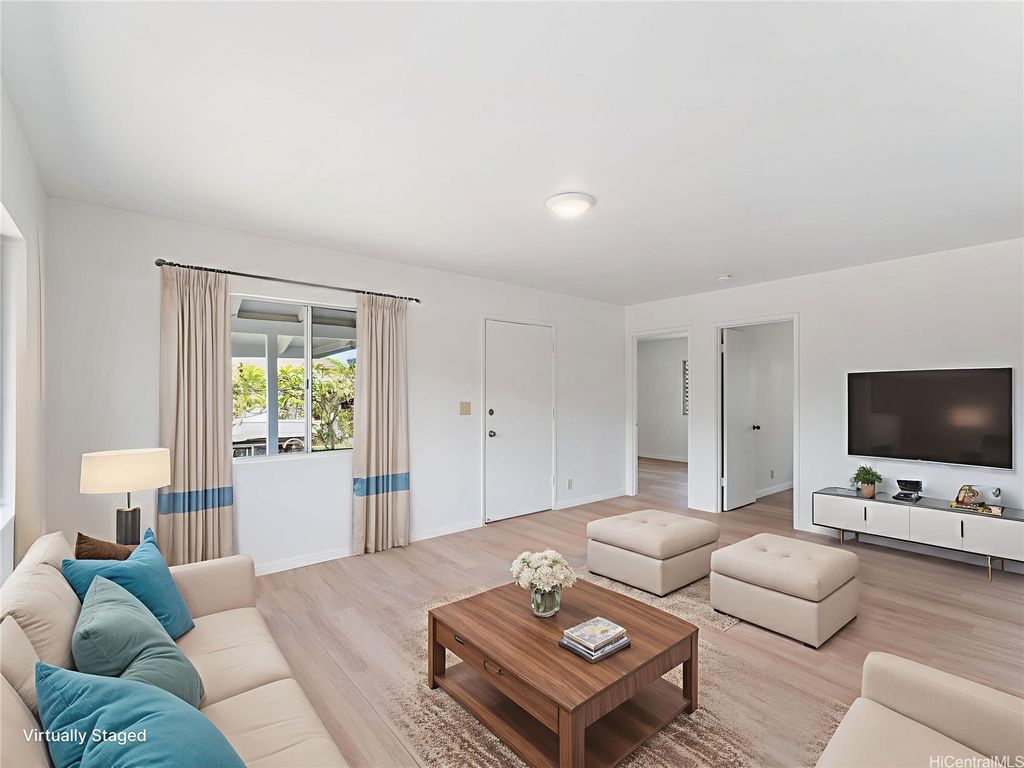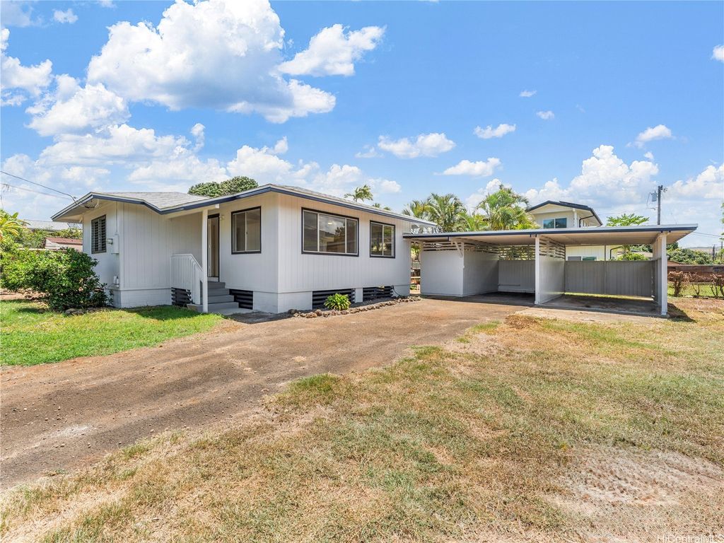 This charming 3-bedroom, 1.5-bath home offers 908 sq. ft. of interior living space, plus an additional 90 sq. ft. of washroom and storage area adjacent to the carport. Built in 1994, the home sits on a 7,067 sq. ft. R-5 corner lot and features a covered, 2-car carport with storage. Recently refreshed with interior and exterior paint and brand-new flooring throughout, the home is move-in ready! Enjoy stunning views of the Waianae Mountain Range, and take advantage of the prime location just down the street from the beloved Paalaa Kai Bakery, as well as minutes from sandy beaches, local parks, and the historic Waialua Sugar Mill with its shops, cafés, and weekend market. Waialua's small-town charm, relaxed pace, and close-knit community make this location highly desirable.