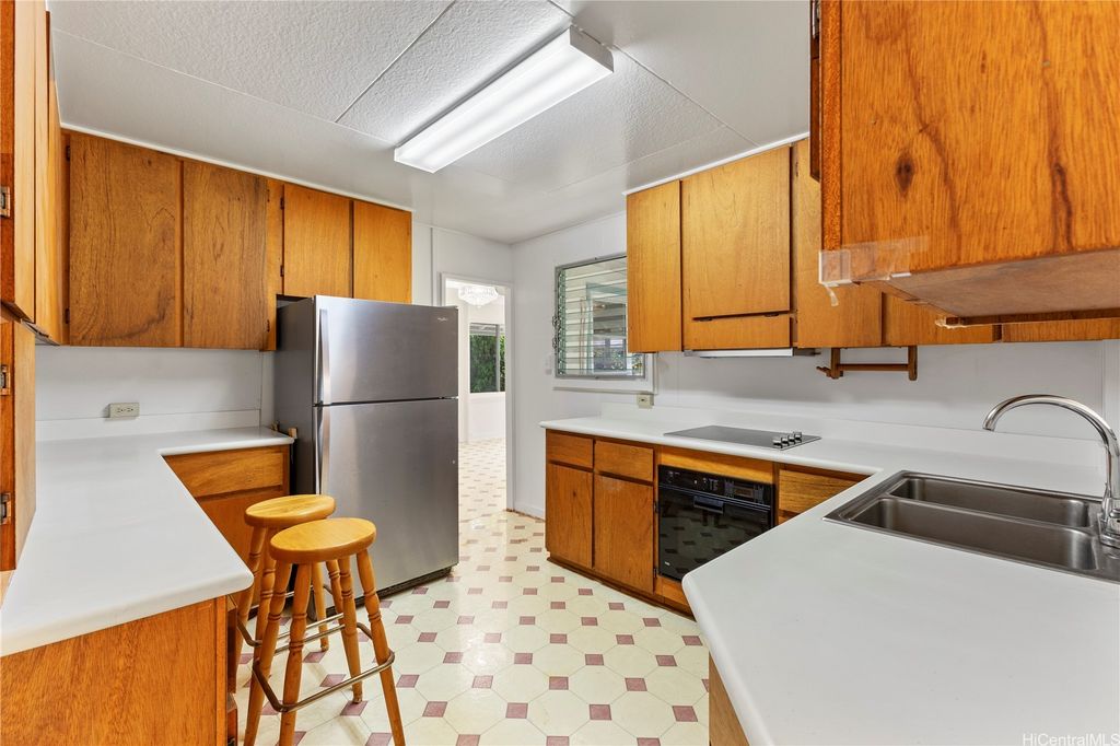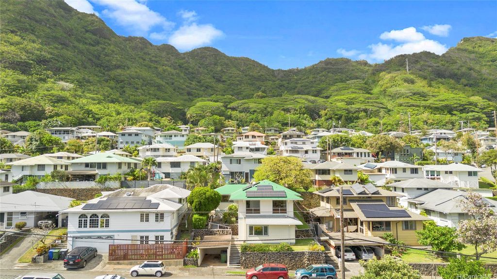 Enjoy the serenity of Palolo Valley, surrounded by the greenery of nearby mountains. This 5 bedroom, 3 bathroom home includes a newly built studio style cottage with separate entrance, underneath the main home. Both units are powered by Tesla's Solar Panel with battery storage, which made electricity bills very minuscule. Recent renovation also includes contemporary Japanese style bathtubs. Car Port is EV Outlet ready. Credit will be offered if Buyer needs to replace flooring. To be sold AS-IS. About an 8 minute drive to Kaimuki shops and H1 freeway entrance, 12 minute drive to Kahala Mall when traffic is light. Bus stop is approximately at 2-minute walking distance, currently being served by TheBus line # 200. Palolo Valley District Park is within walking distance, featuring a swimming pool, tennis courts, volleyball courts, basketball courts and a baseball field.