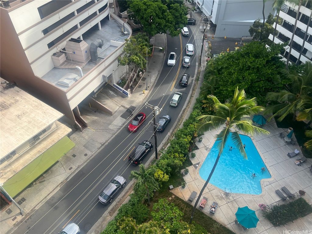Your Waikiki retreat awaits! High-floor unit in the desirable "A" building of Kalia, offering tropical breezes, privacy, and a prime location. This unit is in fair condition and ready for your personal updates. Enclosed lanai with pool and hotel views. Enjoy resort-style amenities including a pool and lush gardens. Just steps from Waikiki Beach and within walking distance to dining, shopping, and entertainment. Perfect for owner-occupants or investors seeking a unit with great potential in the heart of Waikiki. Monthly maintenance: $1,474.40 (includes maintenance, cable TV, lease rent, utilities, and property tax). Kalia Inc. is a peaceful, secure cooperative community.