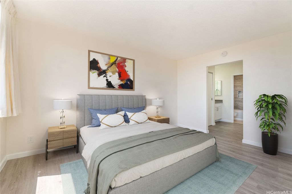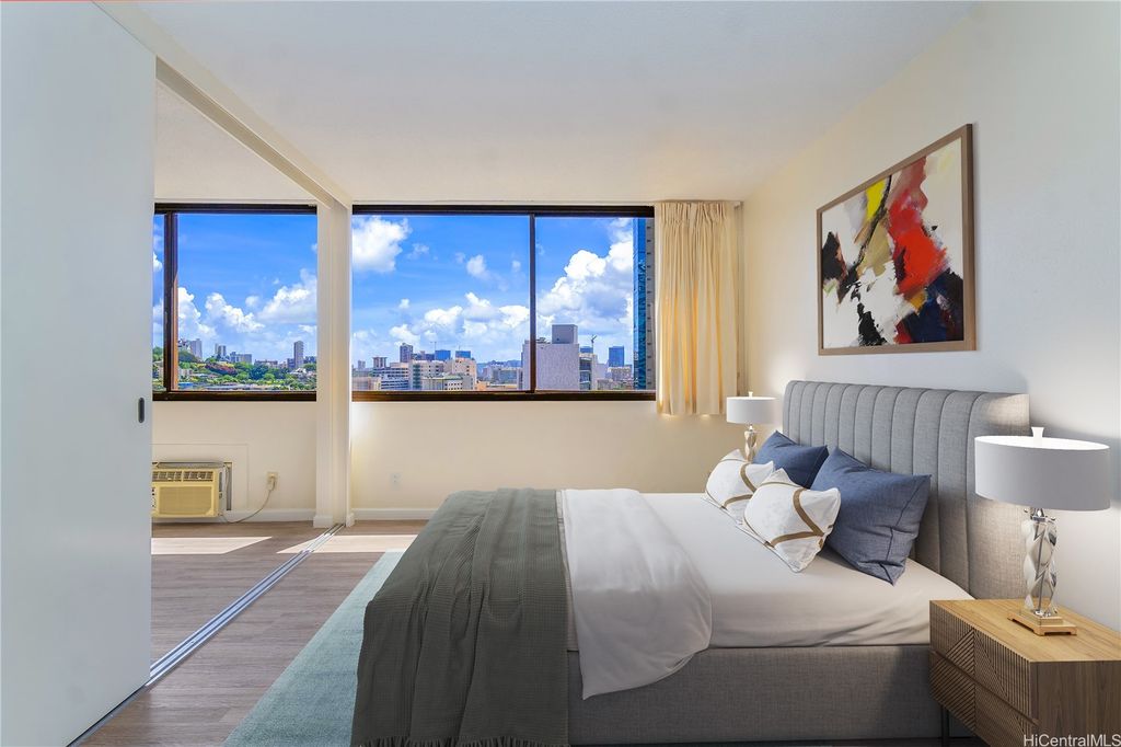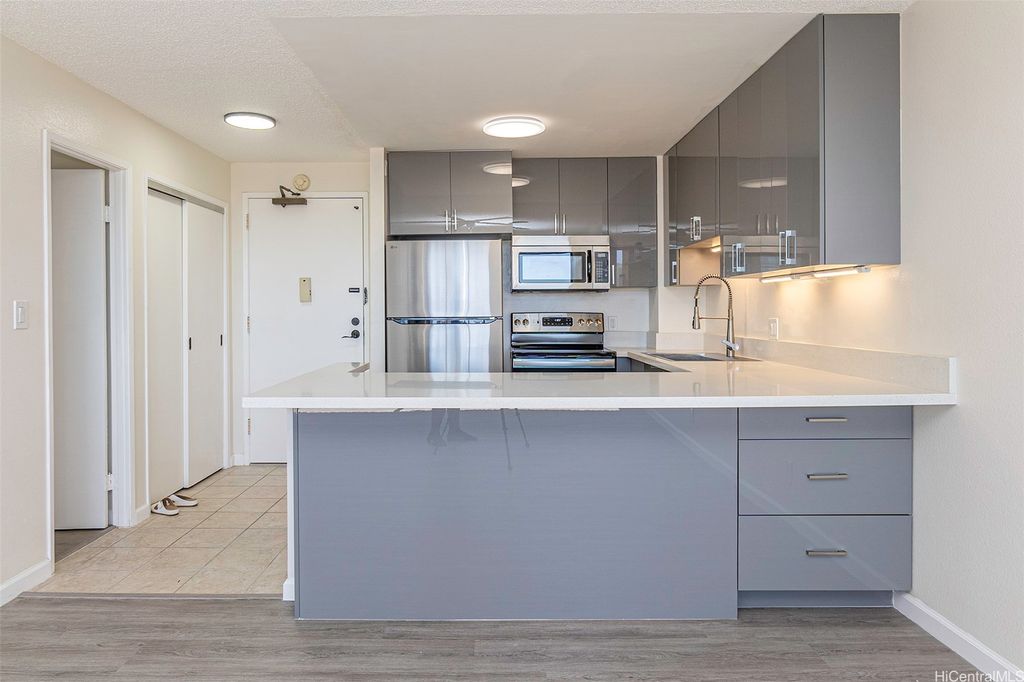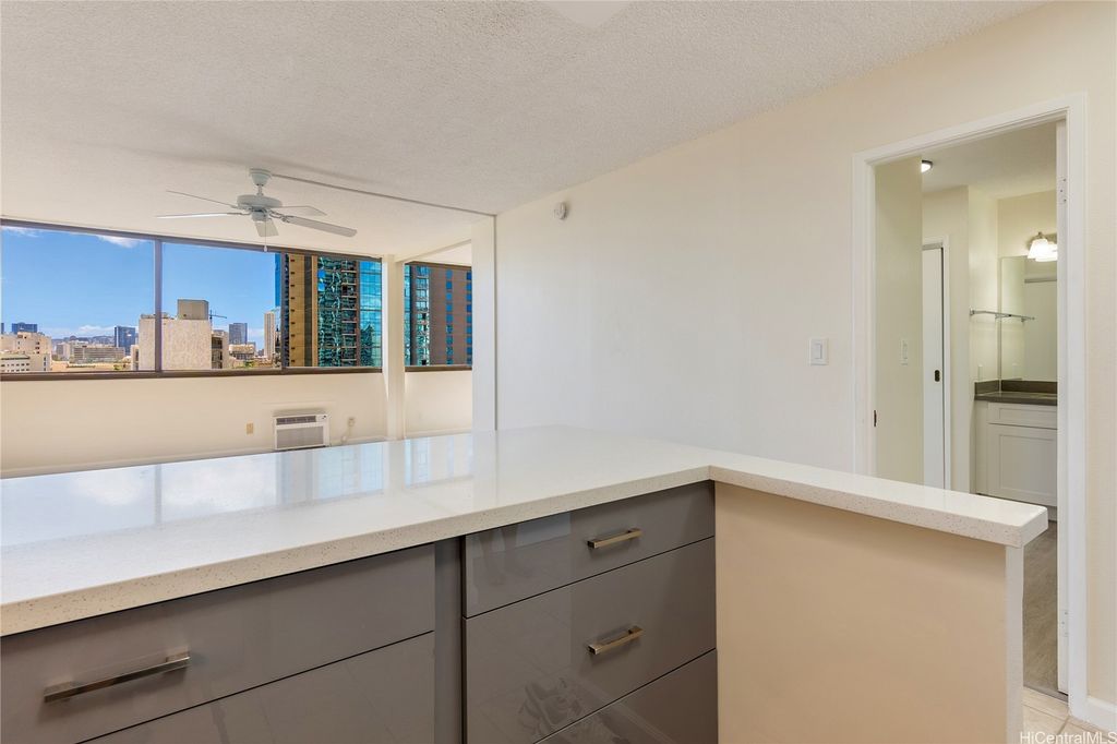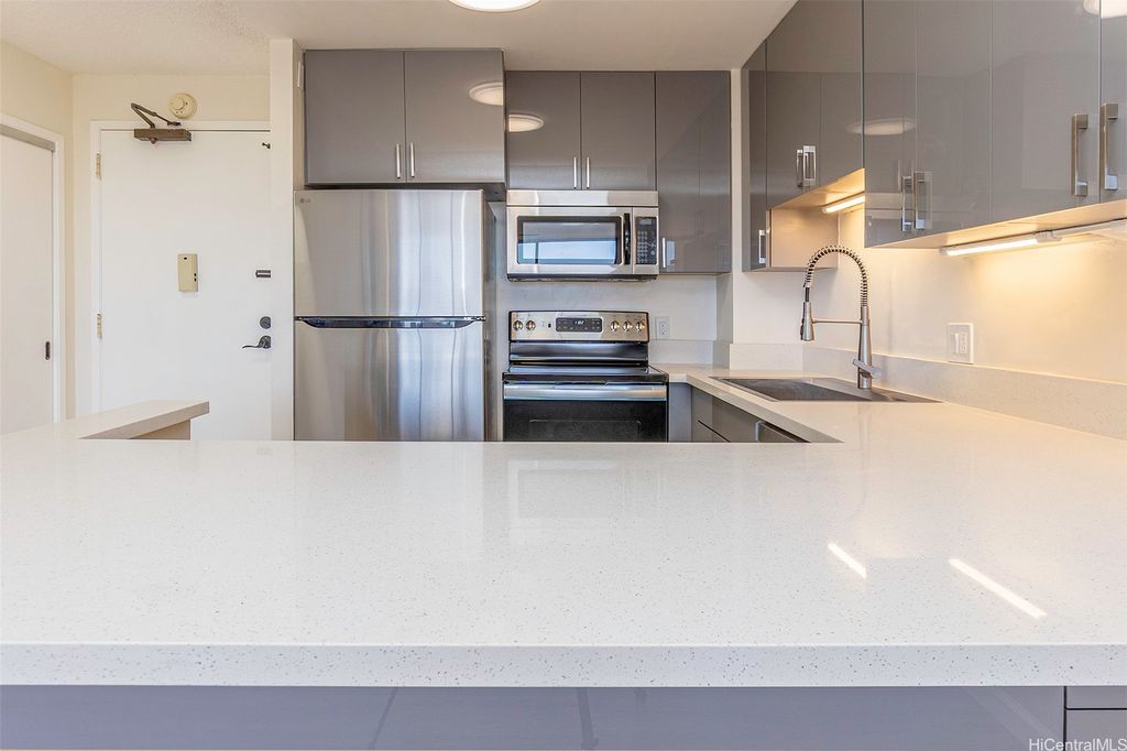 Experience the best of Downtown Honolulu living at Kukui Plaza! This fully renovated 1-bedroom, 1-bathroom condo showcases beautiful mountain and city views and is just steps from restaurants, shopping, offices, bars, and the Hawaii Theatre. The home features a brand-new eat-in kitchen with quartz countertops and stainless steel appliances, new LVP flooring, fresh interior paint, and a stylishly remodeled bathroom with a tiled tub/shower and modern vanity. An assigned covered parking stall is also included. Kukui Plaza offers resort-style amenities including a tranquil private garden, walking paths, fish pond, pool, pergola for gatherings, pantry, and 24-hour security. Don't miss this opportunity to own a piece of paradise in the heart of Honolulu!