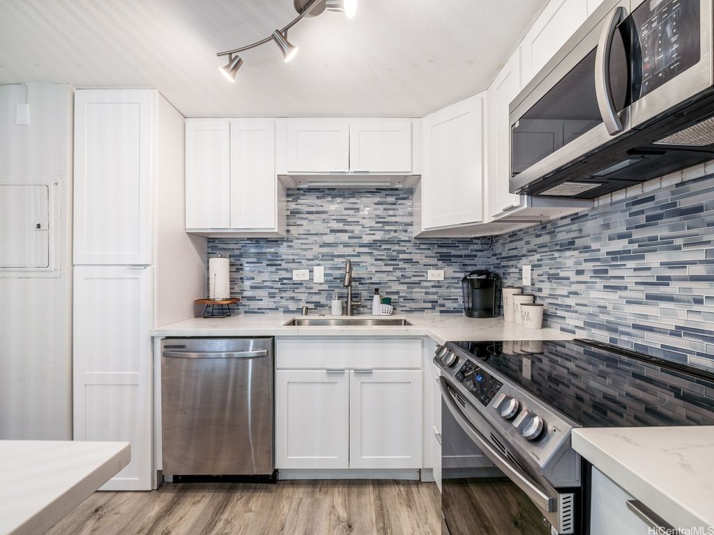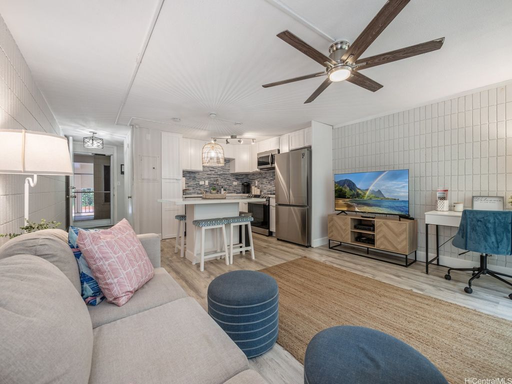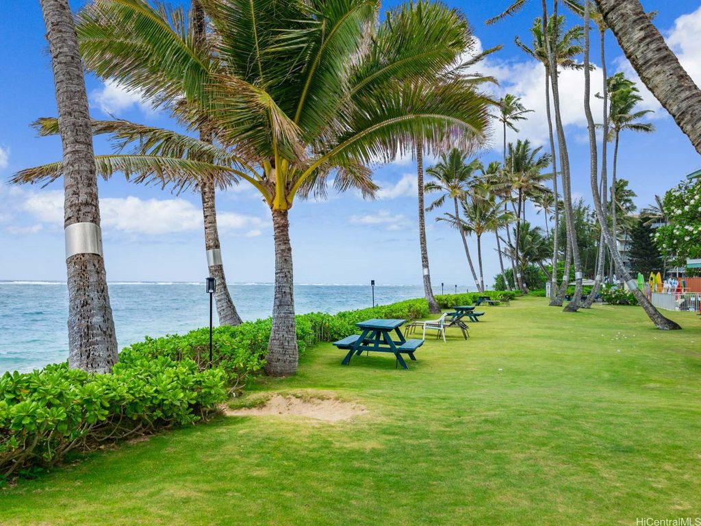 PRICED TO SELL! Own your piece of paradise at this ocean front complex on Oahu's Windward Coast. Fully renovated from floor to ceiling with quartz counters, soft close cabinets, new LVP flooring, fixtures and equipped with a full size dishwasher and interior washer & dryer. The cozy private home can also come fully furnished, you just need to bring a toothbrush! The best part is the sun-soaked tropical location that will ensure a lifestyle balance with; a gym looking over the ocean, beachfront pool, BBQ area to cook your dinner or have friends over, relax or look for shells in the sandy beach front, snorkel & paddle board in your backyard. It's just a short drive to Kahana Bay, a sought after area for camping, fishing, boat launching and more. Plus you have the Crouching Lion Restaurant and bar that recently re-opened and cafe. This secured building recently went through structural and cosmetic upgrades and renovations, has 100% hurricane insurance and is VA approved.