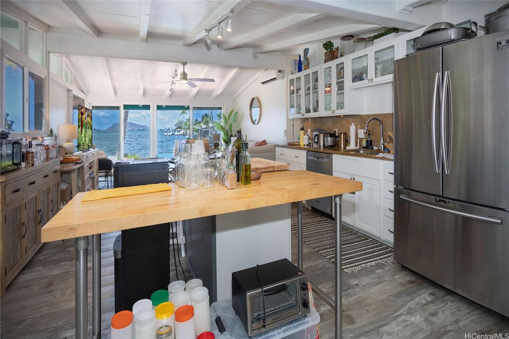Experience the elegance of bayfront living with these two impeccably remodeled residences on Kaneohe Bay. Each home is separately metered and offers 2 bedrooms, 1 bath, expansive lanais, and captivating views of the bay. Modern split AC systems in every room ensure year-round comfort and style. The lower residence is a private sanctuary at the water's edge, where an open-concept design and a chef-inspired kitchen island create the perfect setting for both entertaining and everyday living. Its tranquil setting delivers an unmatched sense of serenity. The upper residence is framed by a lush garden and manicured lawn, welcoming you into a bright and airy interior. From the moment you enter, panoramic views of the vibrant blue waters and passing sailboats set the tone for refined island living. The primary suite showcases an unforgettable view, blending comfort and sophistication in a thoughtfully designed space. Both homes radiate charm, balance, and modern elegance"”an exceptional opportunity to embrace the very best of Hawaii's waterfront lifestyle. More photos to follow and tax records differ.