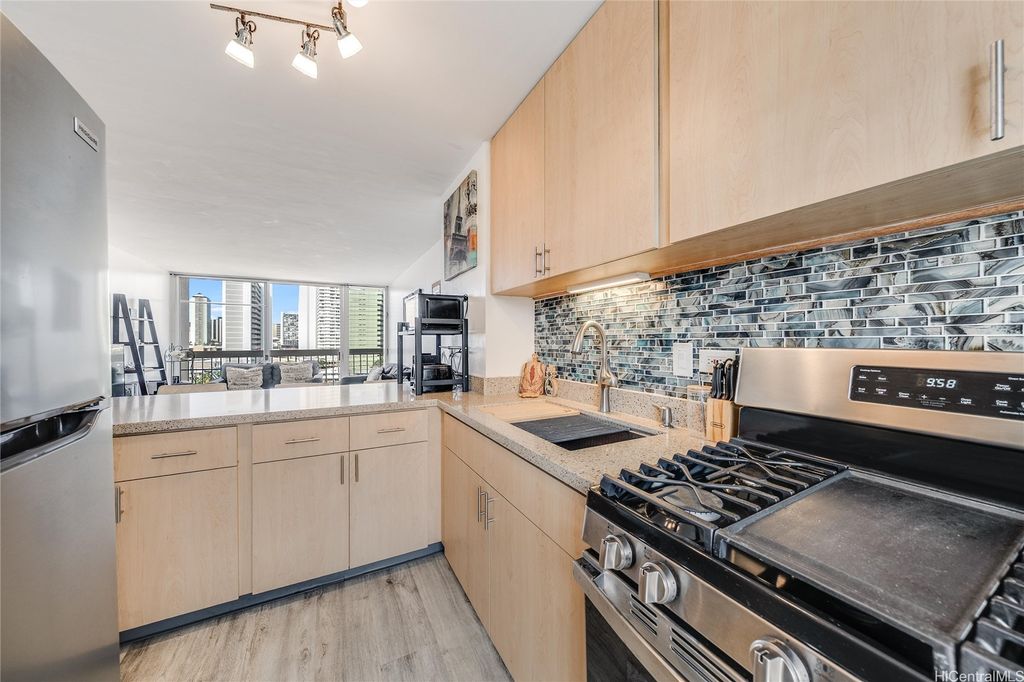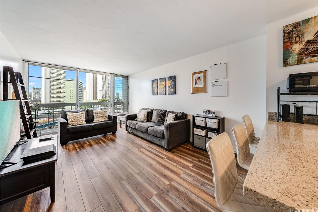 Located at 2630 Kapiolani Boulevard, Unit 802, this two-bedroom, one-bath condo offers convenient city living on the eighth floor with plenty of natural light and refreshing cross breezes. The functional layout features a comfortable living area that connects seamlessly to the kitchen and dining space. The popcorn ceiling has been removed, creating a cleaner and more modern look. Practical amenities include community laundry located in the lobby and a covered parking stall conveniently situated near the lobby entrance. Maintenance fees cover water, sewer, trash, and common expenses, making day-to-day living simple and stress-free. This secure building is close to schools, shopping, dining, and bus lines, with Waikiki and Ala Moana just minutes away. Perfect for first-time buyers, investors, or anyone seeking a low-maintenance home in Honolulu.