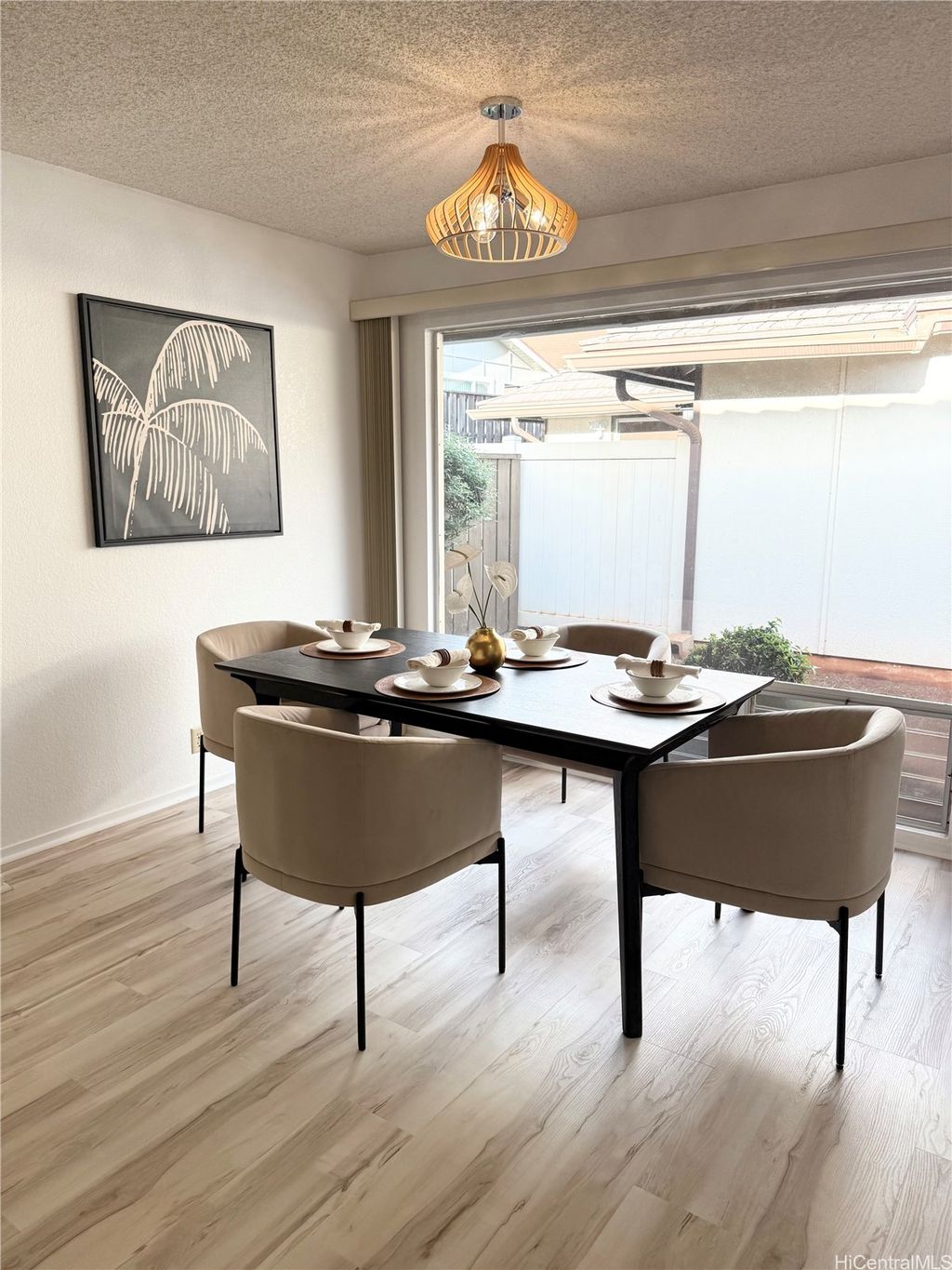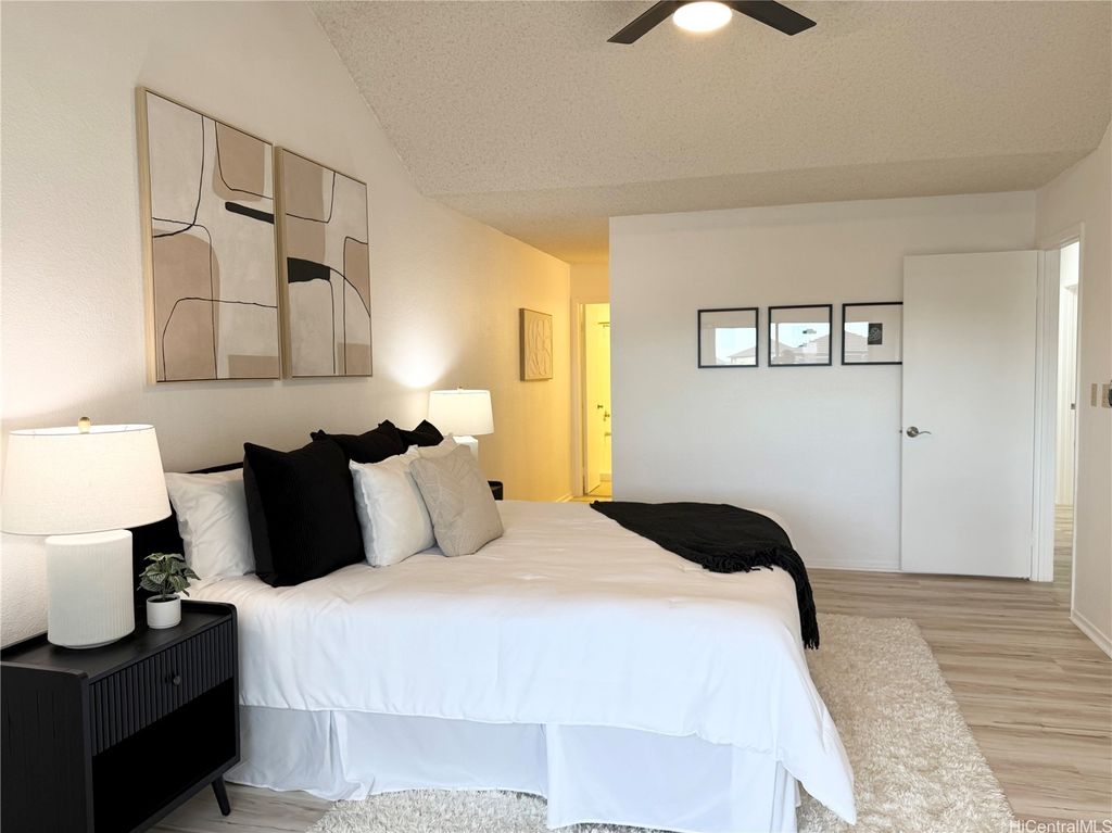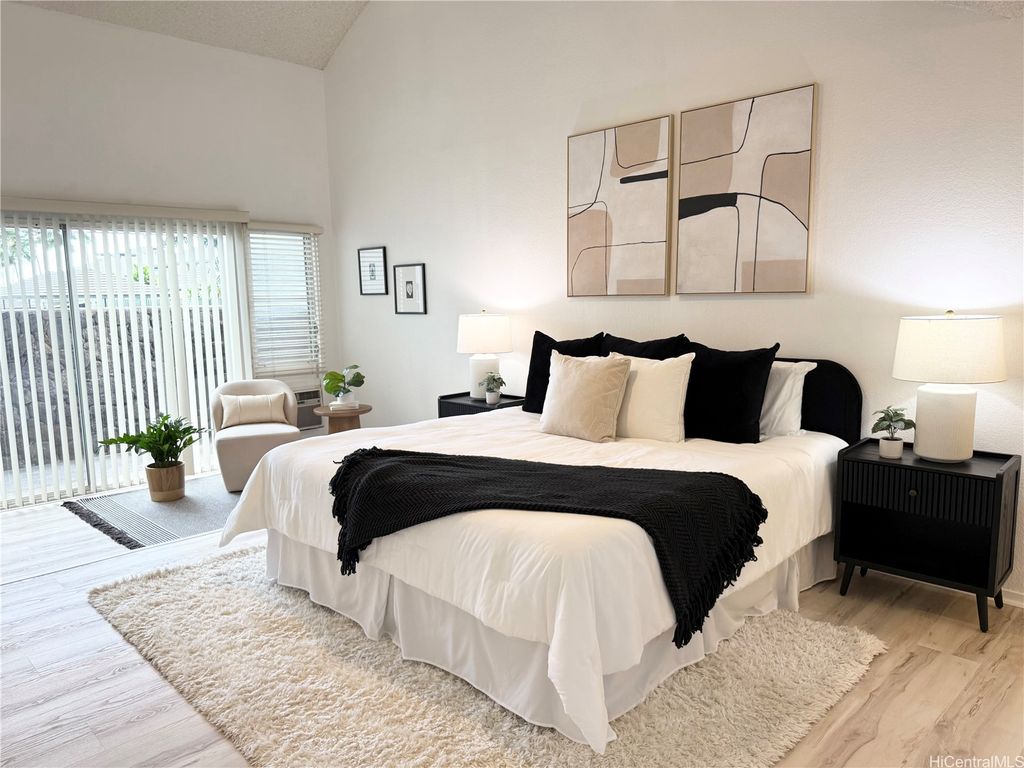 Welcome home to single family living in the highly desirable Waipio Gentry neighborhood. Move in ready with a brand new roof, interior paint and laminate flooring. The spacious layout with covered patio and enclosed backyard is perfect for entertaining. Enjoy the generous sized primary bedroom with vaulted ceilings and sitting area, private enclosed lanai and walk in shower. Window ACs in all bedrooms and living room area. Easy freeway access and in close proximity to Costco, Waikele Premium Outlets and many shopping and dining options.
