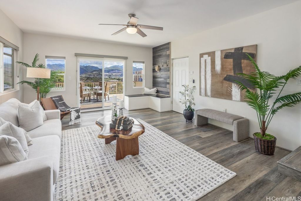 Gorgeous views can be enjoyed from every corner of this 4-bedroom, 2-bath Salt Lake home. The living room opens to an impressive, spacious deck, allowing wonderful indoor-outdoor living. Additional upgrades include new flooring, a remodeled kitchen, updated windows (farewell jalousies), an expanded living area, popcorn ceiling removal, and more. It also has a designated indoor laundry area and a workroom adjacent to the garage. This home is move-in ready! Situated on a 10,000 SF lot in a quiet cul-de-sac with R-5 zoning, the property offers both privacy and potential. Don't let the posted home square footage fool you. It lives way bigger, so come and see for yourself! The location is extremely convenient: just 0.3 miles to Salt Lake Shopping Center, 1.8 miles to Daniel K. Inouye International Airport, 2.9 miles to Tripler Medical Center, and 6 miles to Downtown Honolulu. This home combines modern updates, outdoor space, and a location that makes daily life easier.
