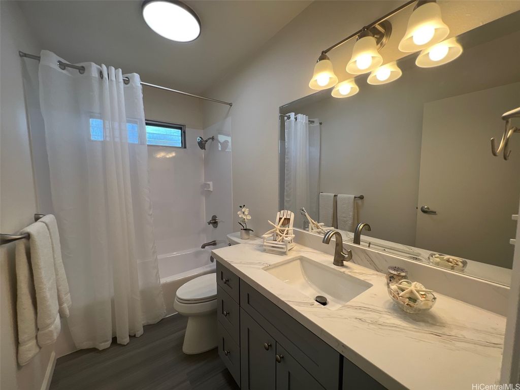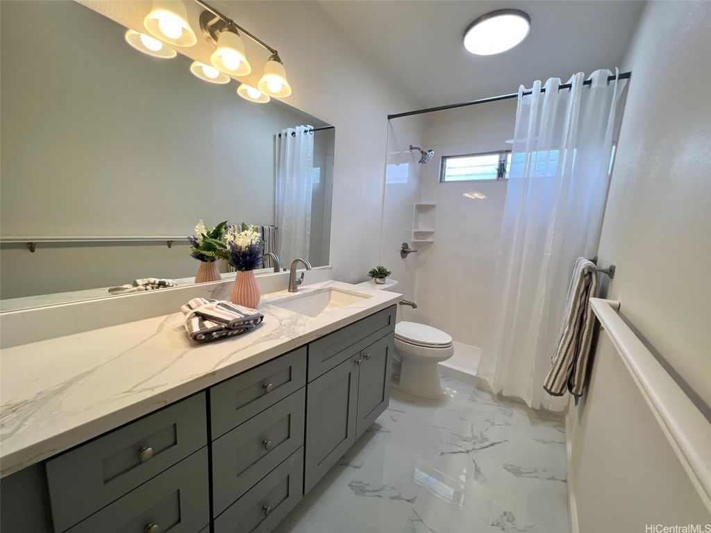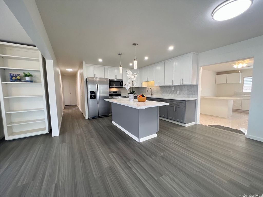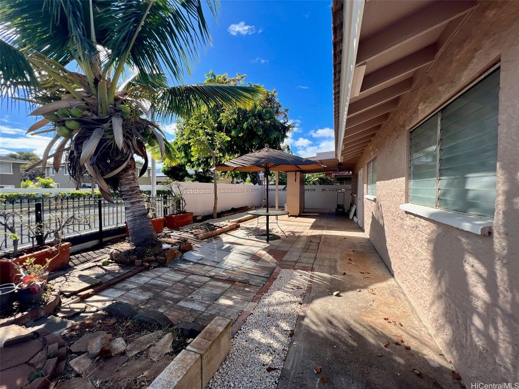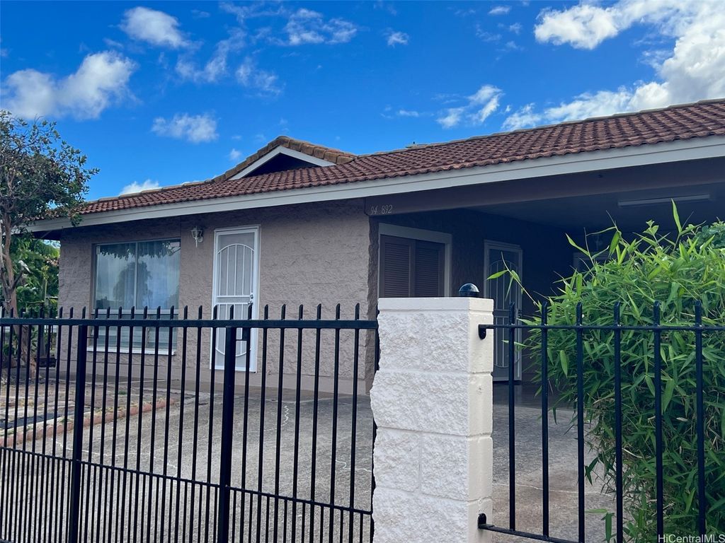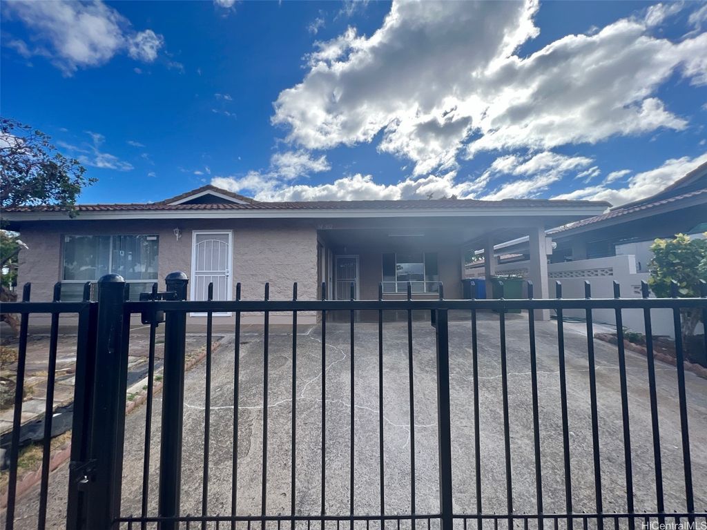 Welcome to Waipahu Estates, where versatility meets modern comfort in this beautifully renovated single-story gem. This spacious 5-bedroom, 3-bath home features a flexible layout with a 3BR/2BA main residence and a 2BR/1BA attached extension complete with its own private entrance and kitchenette"”ideal for extended family, rental income, or foster care possibilities. Recent upgrades include a sleek new kitchen with quartz countertops and stainless steel appliances, luxury vinyl and ceramic tile flooring, stylishly updated bathrooms, and fresh interior and exterior paint. The home also boasts a durable tile roof, outdoor area for gardening and entertaining and a gated, wrap-around fenced yard for added privacy and security. Whether you're seeking a multi-generational haven or a smart investment opportunity, this move-in-ready property offers endless potential in a prime location.