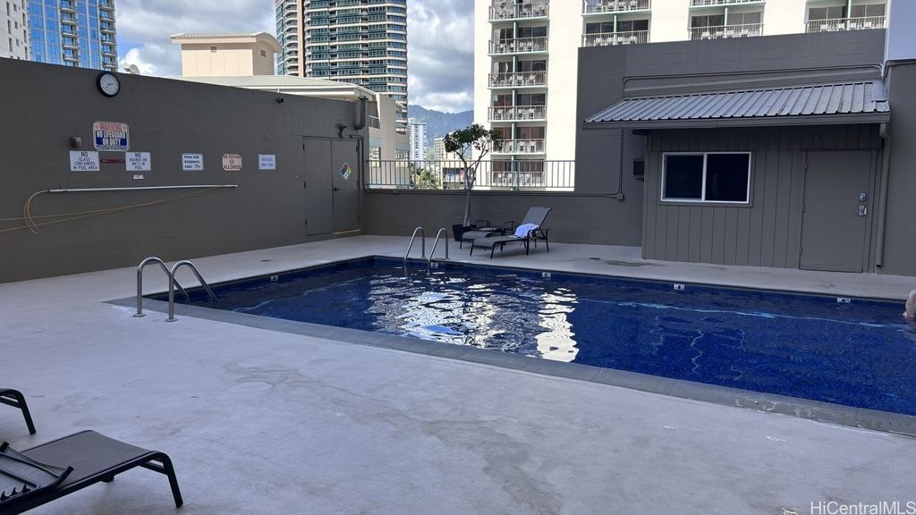 LEGAL SHORT TERM RENTAL in convenient and active Waikiki. Across the street from the beach. Pool on Property, Storage, UPSCALE and artistic remodel High end RENOVATION with expanded shower and bath, double door closet, sleek granite and cherry cabinets with built in range, refrigerator and exquisite hand made shelving. UNIQUE LIGHTING makes it feel like natural light even in the evening. The bathroom has a glass brick window allowing for natural light TO FILTER THROUGH FROM THE APT. PARKING is not deeded but there is a waiting list for parking for rent. There are also commercial and guest parking spaces and more options. Just a few doors away are new restaurants. This property is well priced, convenient and a wonderful investment as an airbnb ,college dorm, office, pied a terre or starter apt for anyone. FULLY FURNISHED AND APPOINTED. YOU REALLY HAVE TO VISIT TO APPRECIATE ALL THAT HAS GONE INTO MAKING THIS APT A VERY SPECIAL HOME.
