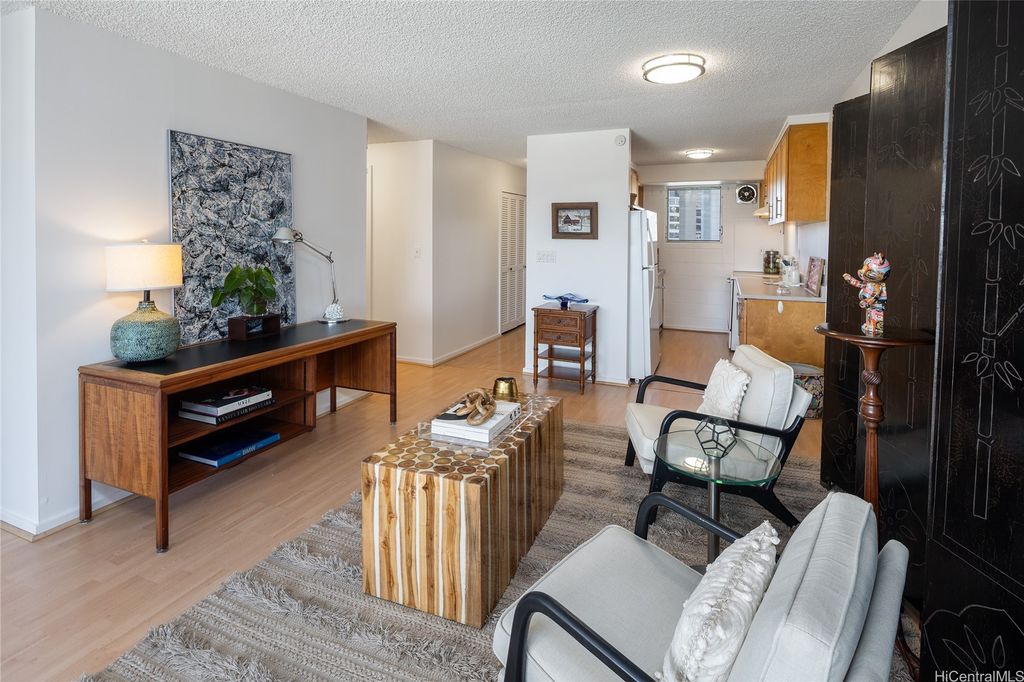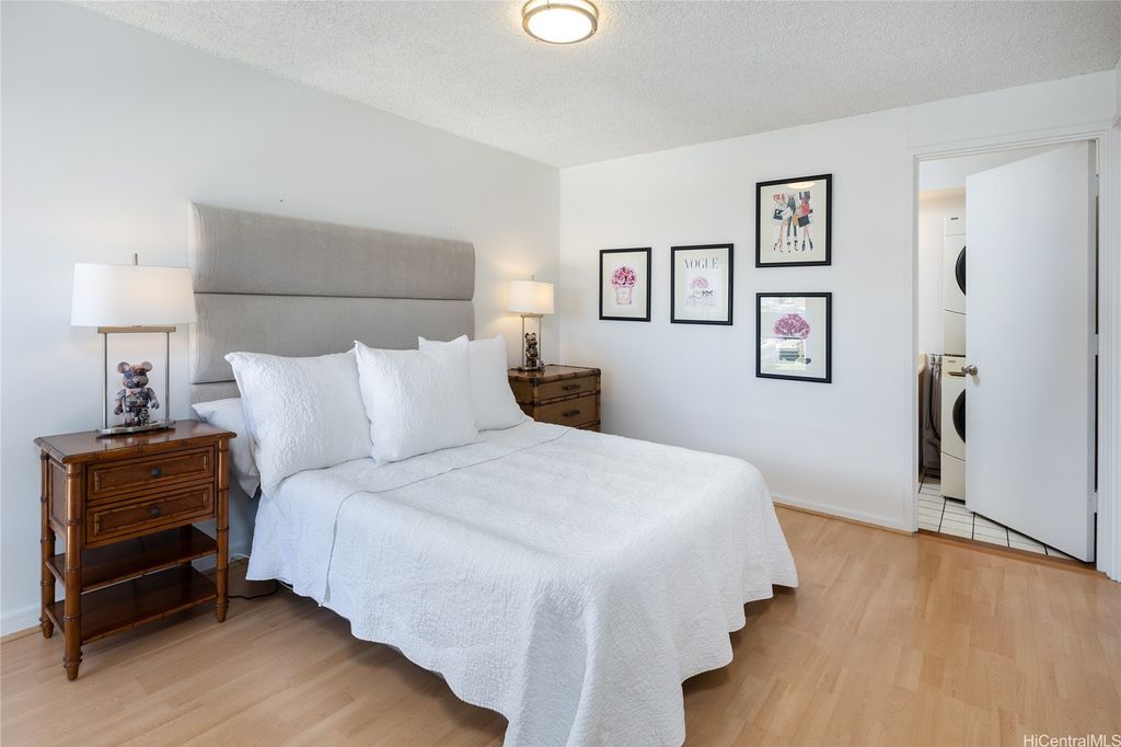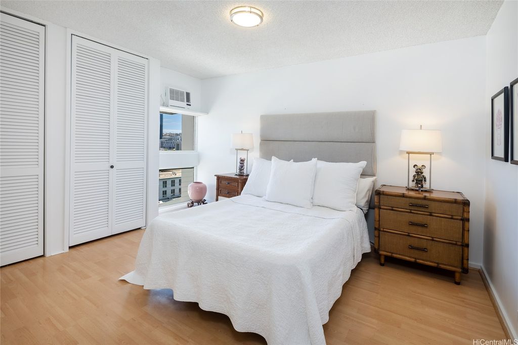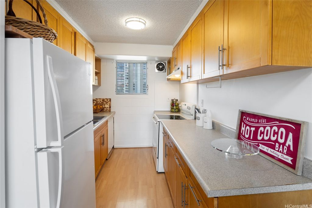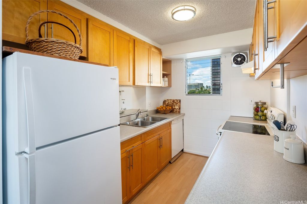 Rarely offered for sale, Fee Simple, Two Bedroom, Two Bath, Two Parking in a well maintained building with upgraded elevator and low maintenance fees ($742/mo). Conveniently located, a few blocks to the Post Office, central bus lines, Kaiser Hospital (Kapiolani and Queens as well), schools, restaurants, shops (including Safeway, Walgreens and CVS), Honolulu Museum of Art. Also located just minutes away from The University of Hawaii, Ala Moana Shopping Center, Kakaako, Ala Moana/Waikiki Beaches and Downtown Honolulu. This newly painted two bedroom unit has all new light fixtures, great cross breezes, AC in the Primary Bedroom, two LARGE bedrooms and private baths with a generous living/dining area, kitchen and lanai overlooking Makiki and out to Kakaako views. Low maintenance fees and taxes make this an incredible opportunity as either an investment or home. Sold AS-IS.